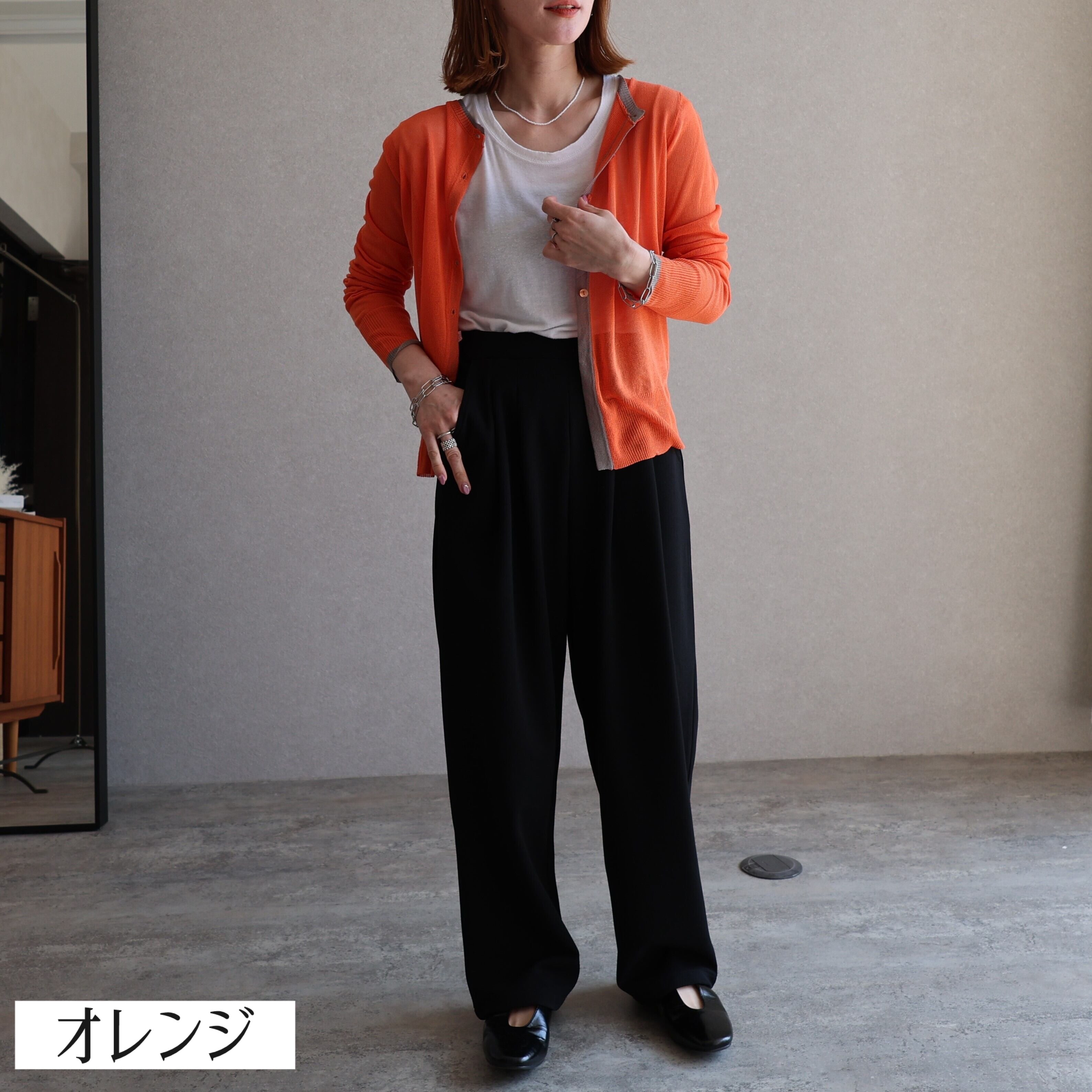キャミソールやタンクトップの上にさらっと羽織るのはもちろん、ボタンを閉めてきれいめスラックスなどと合わせれば通勤スタイルにも◎