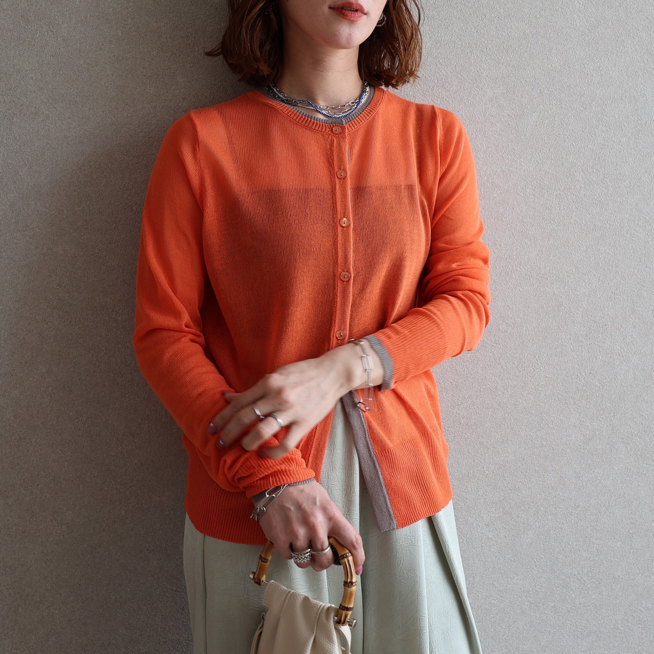 軽やかに差がつく♡清涼感のあるリネンタッチシアー配色カーディガン★