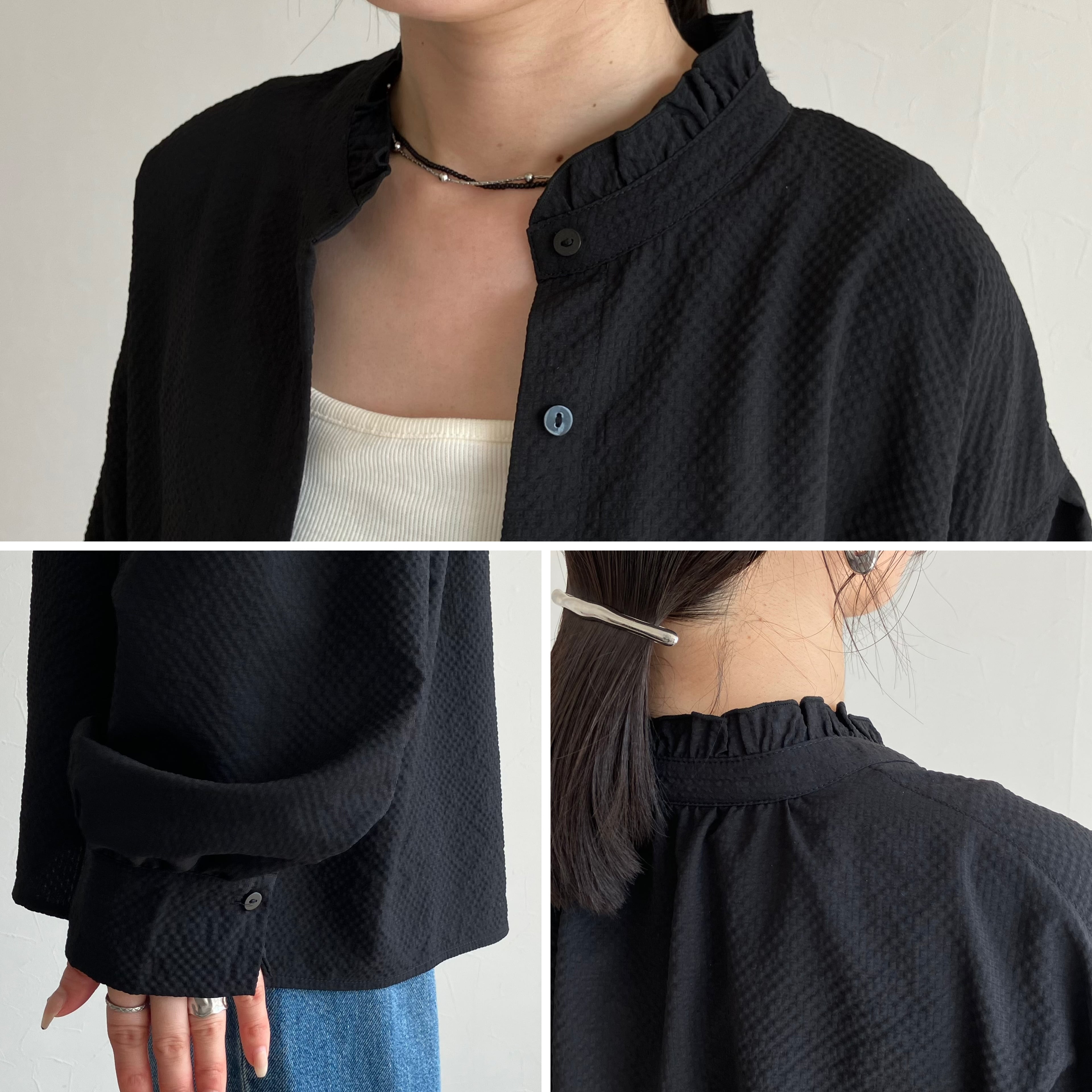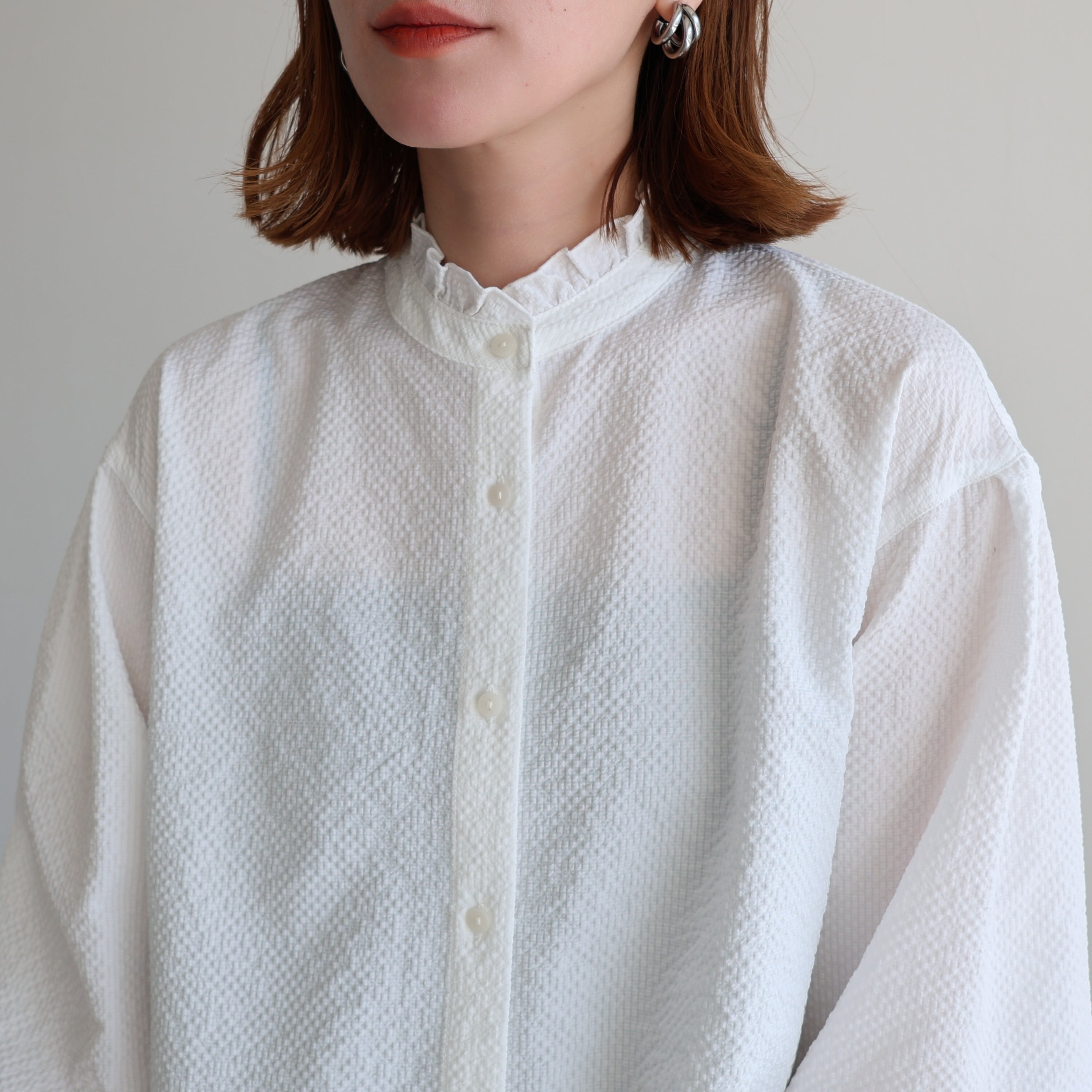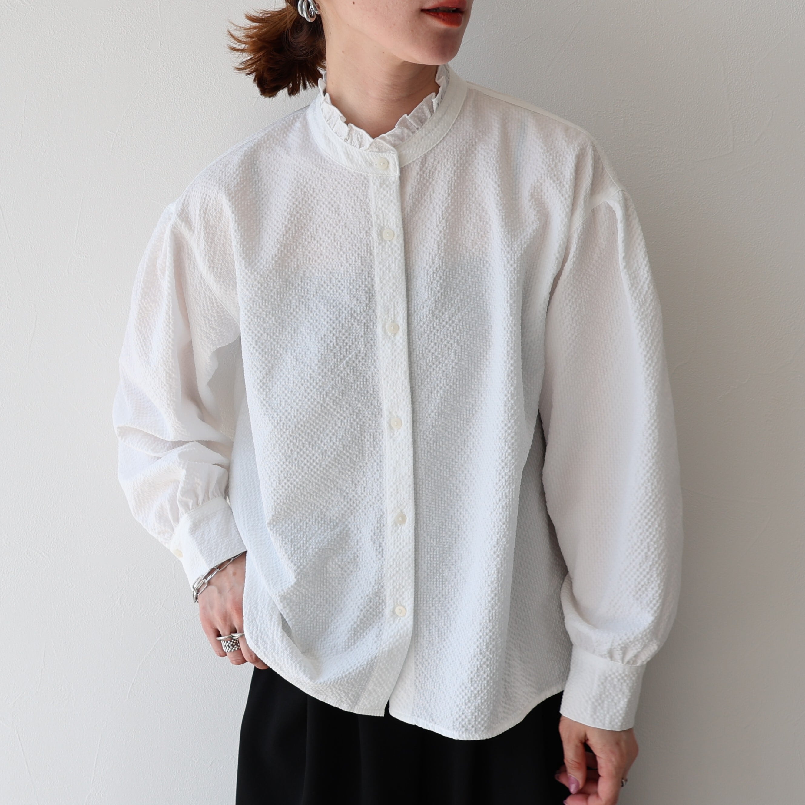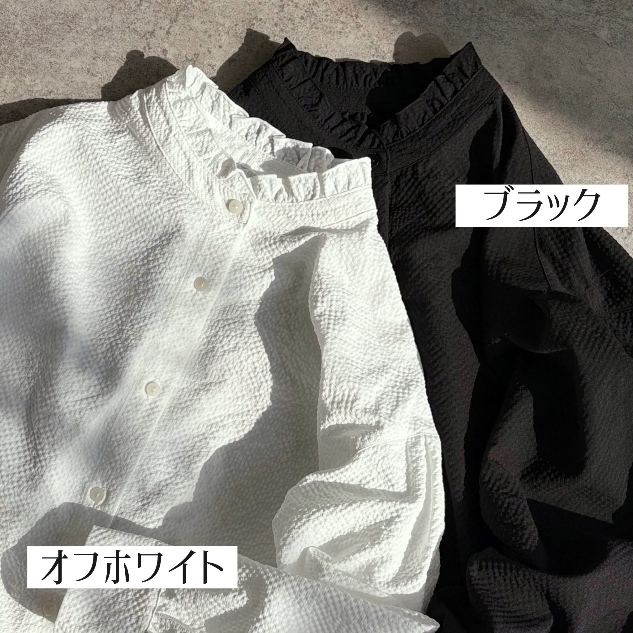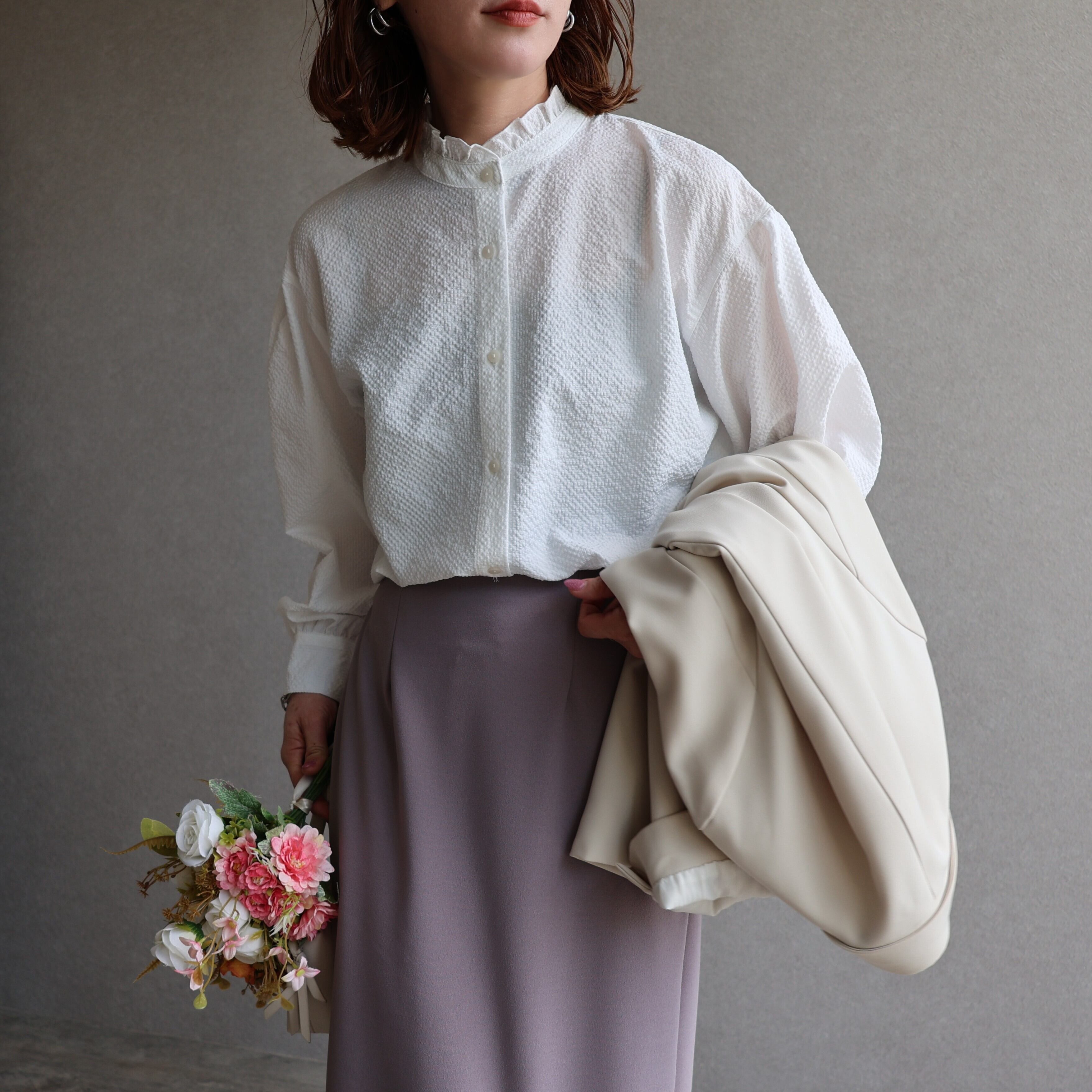顔周りを女性らしく演出してくれるフリルネックのシャツブラウス♡
