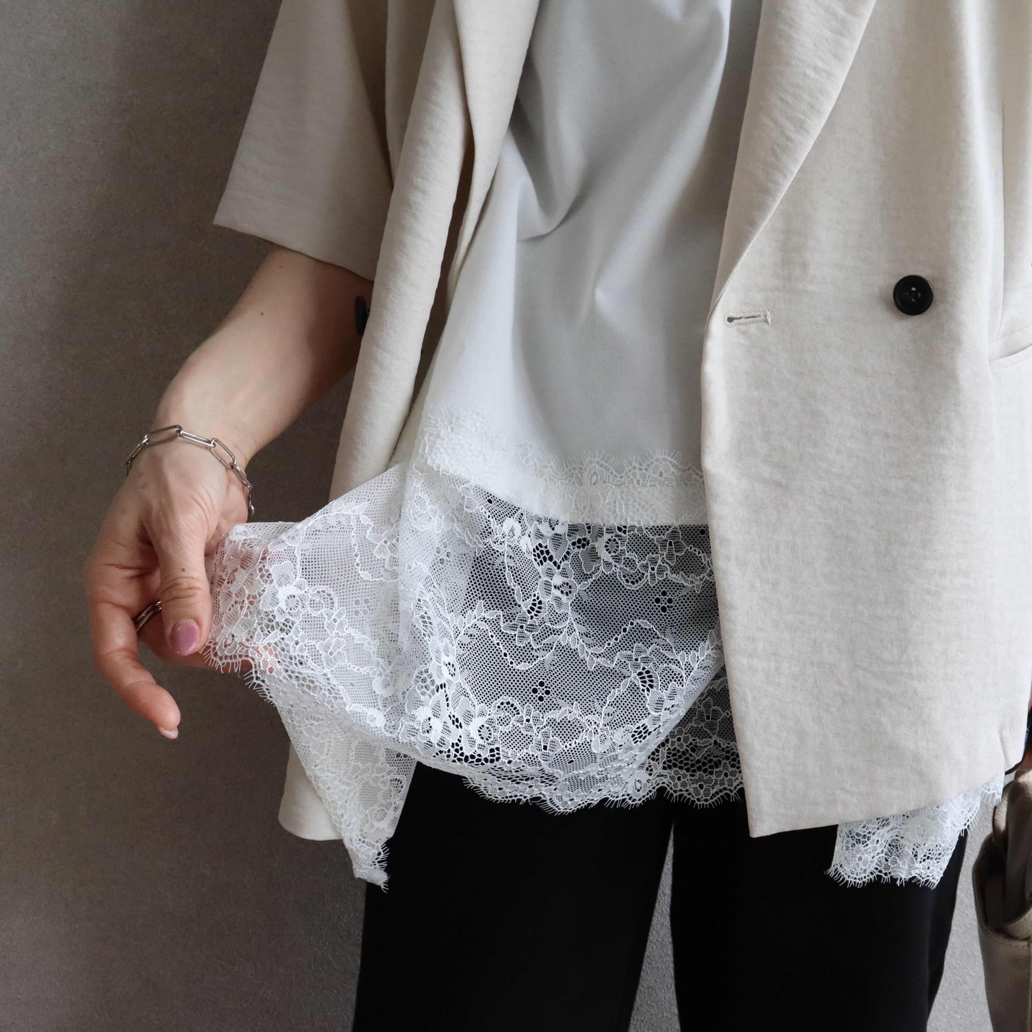 繊細なデザインのレースが動きのある軽やかな印象をプラスします◎