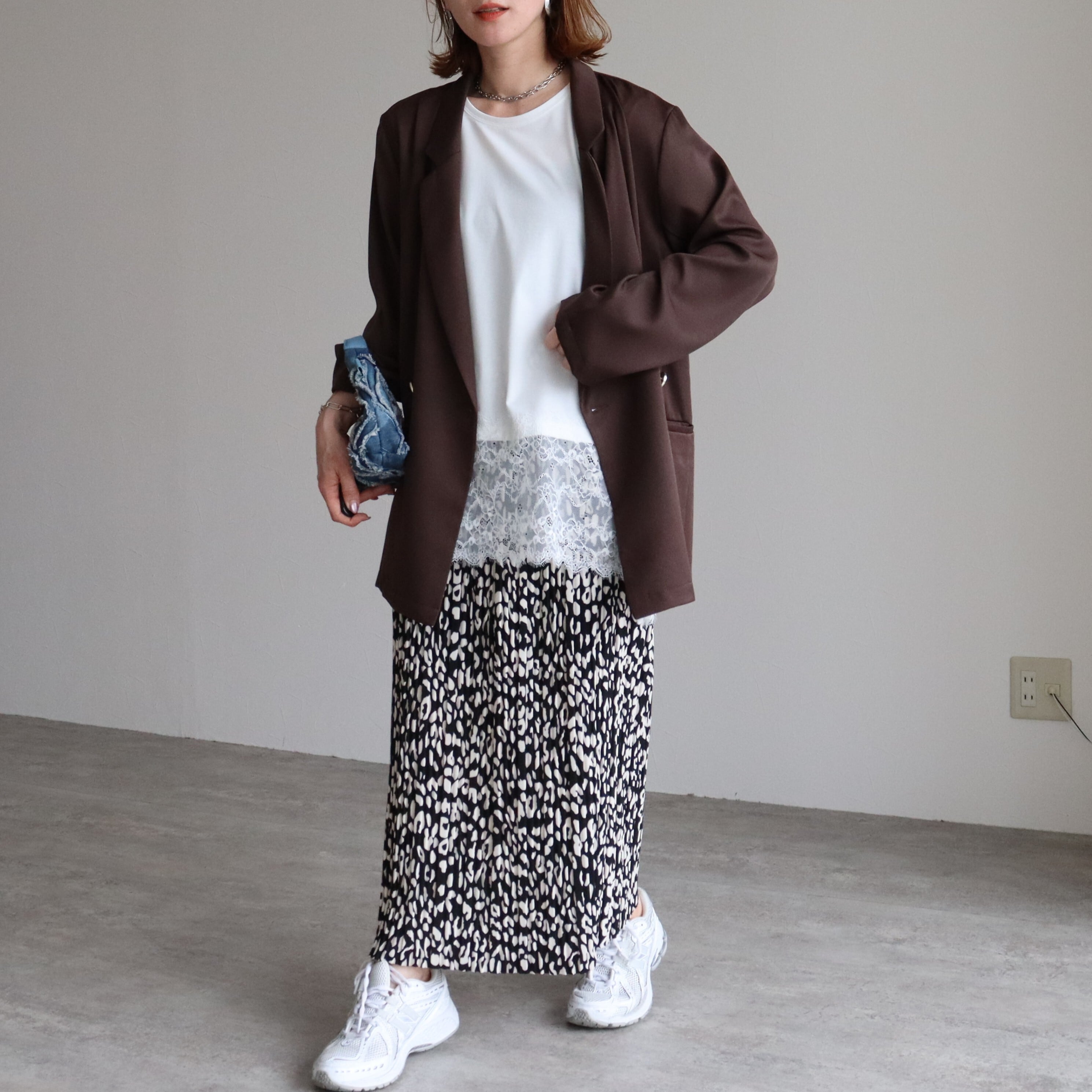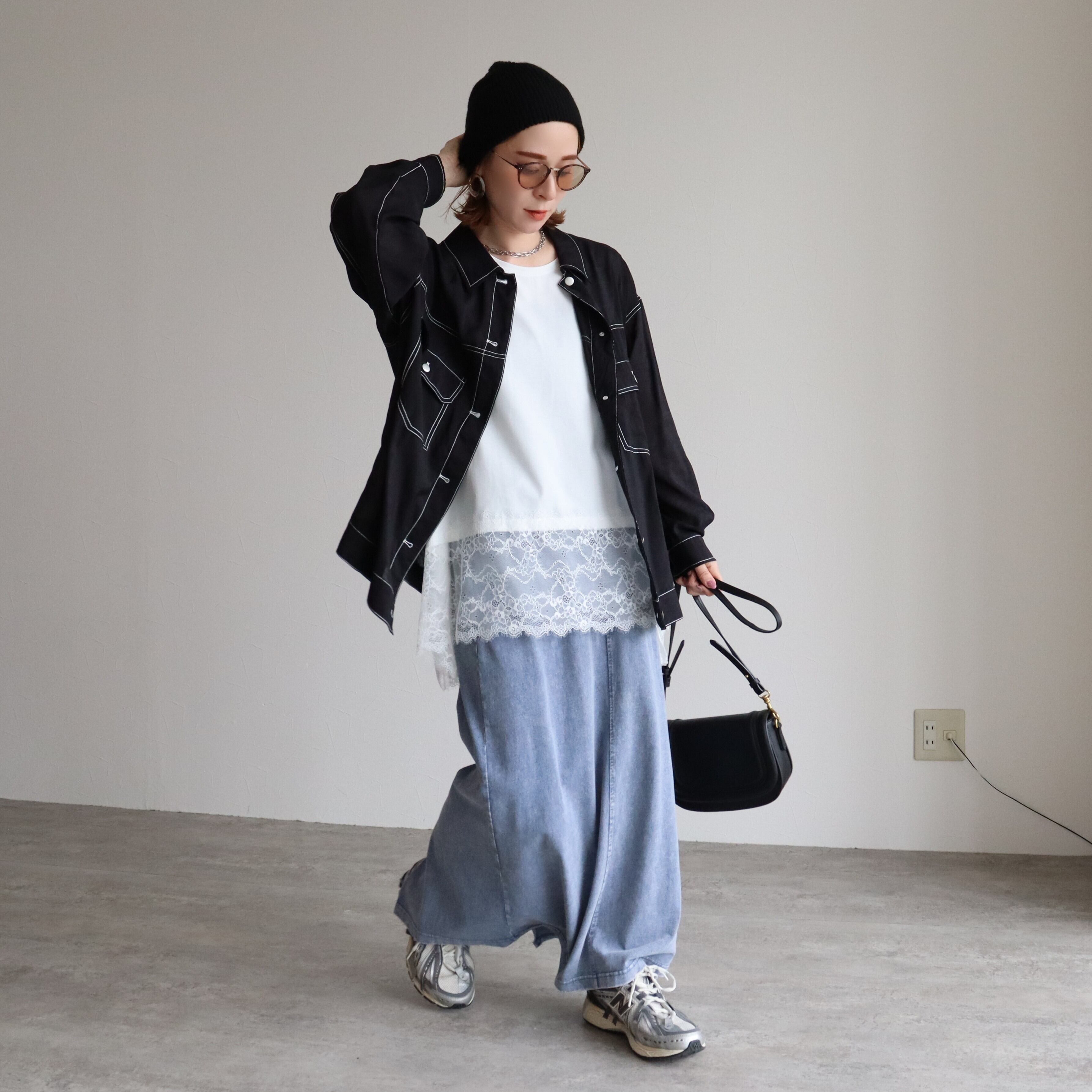 デニムやワイドパンツと合わせるだけでシンプルながらこなれたスタイリングが完成。