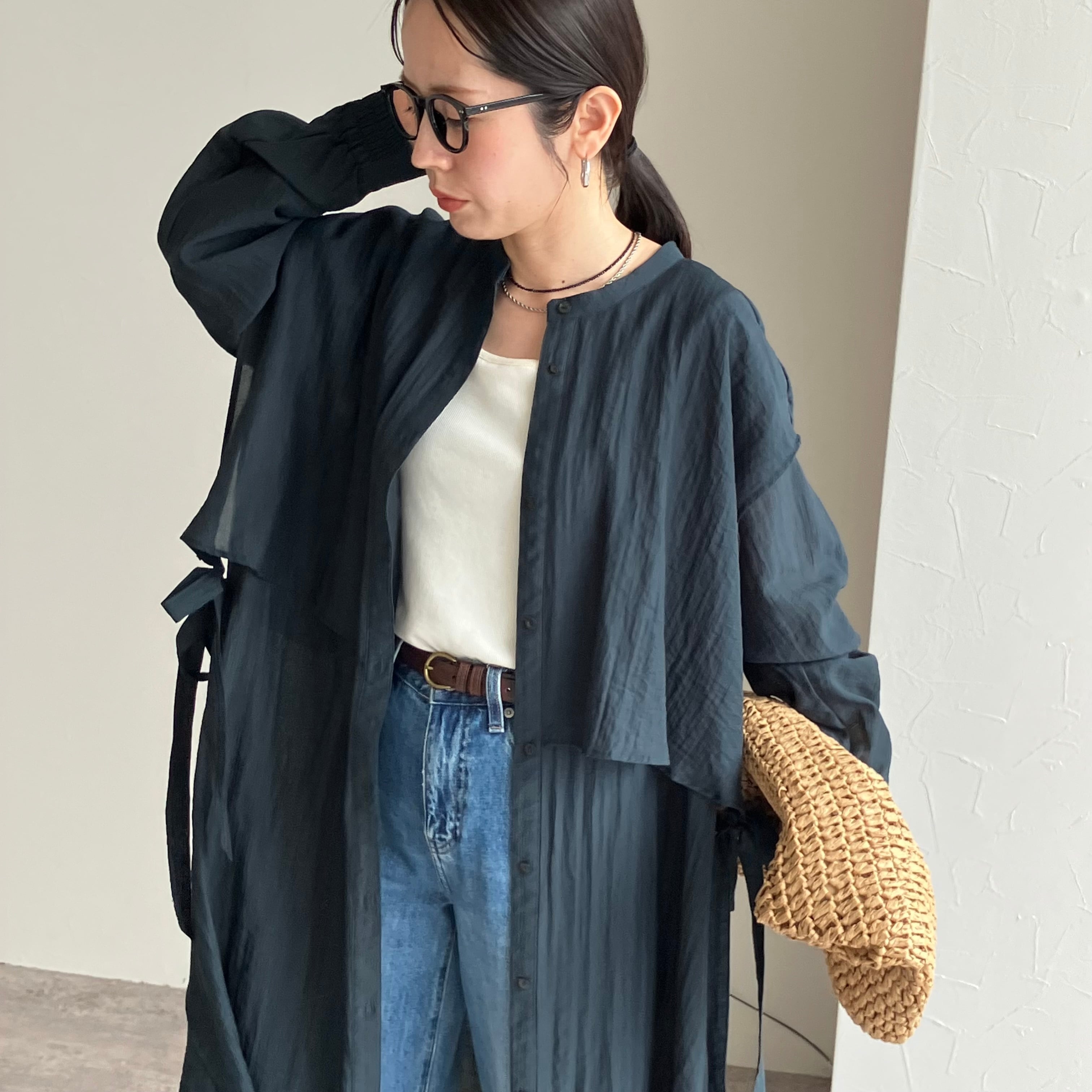 動く度ふんわりと風を纏う!シアー感のあるサイドリボンシャツワンピース❤