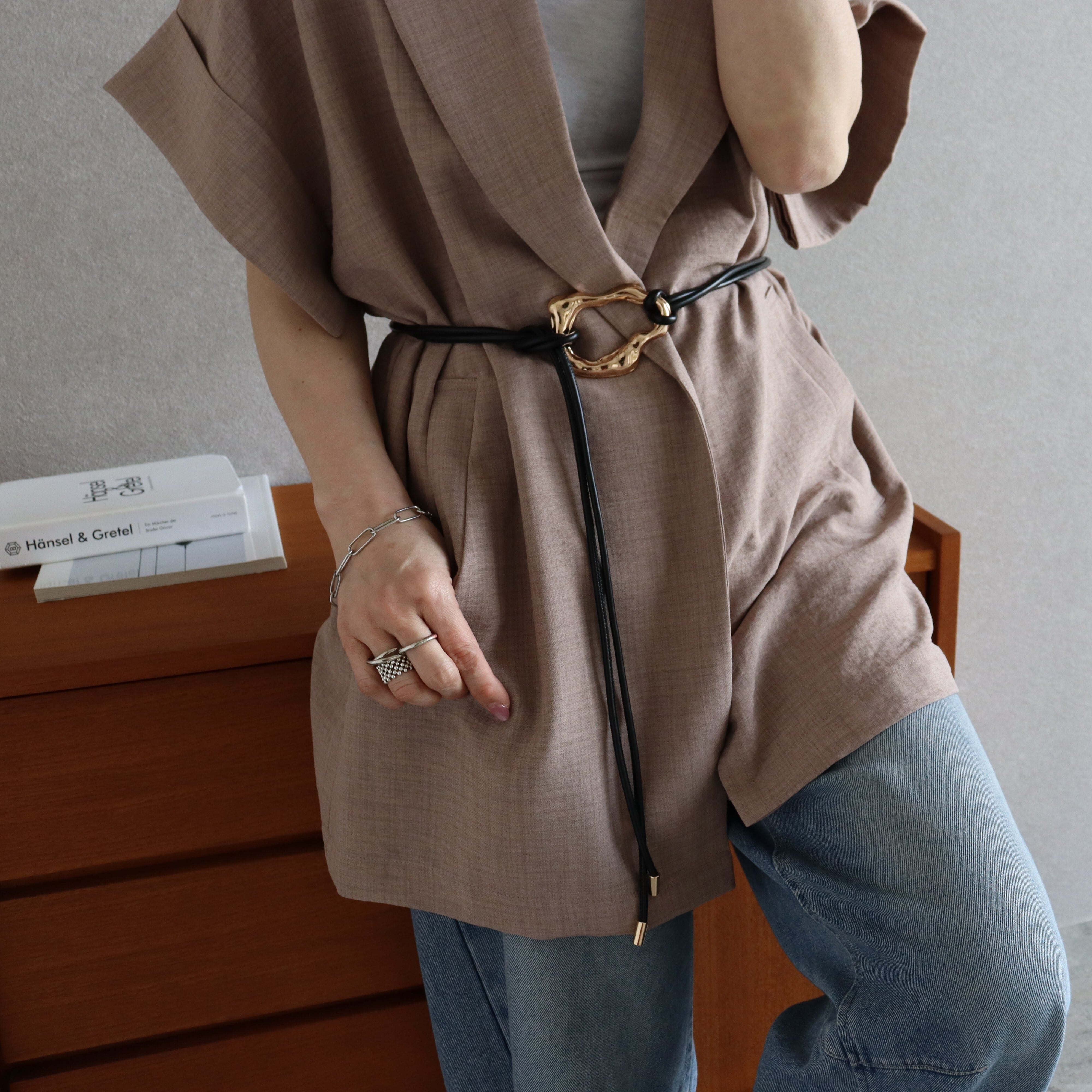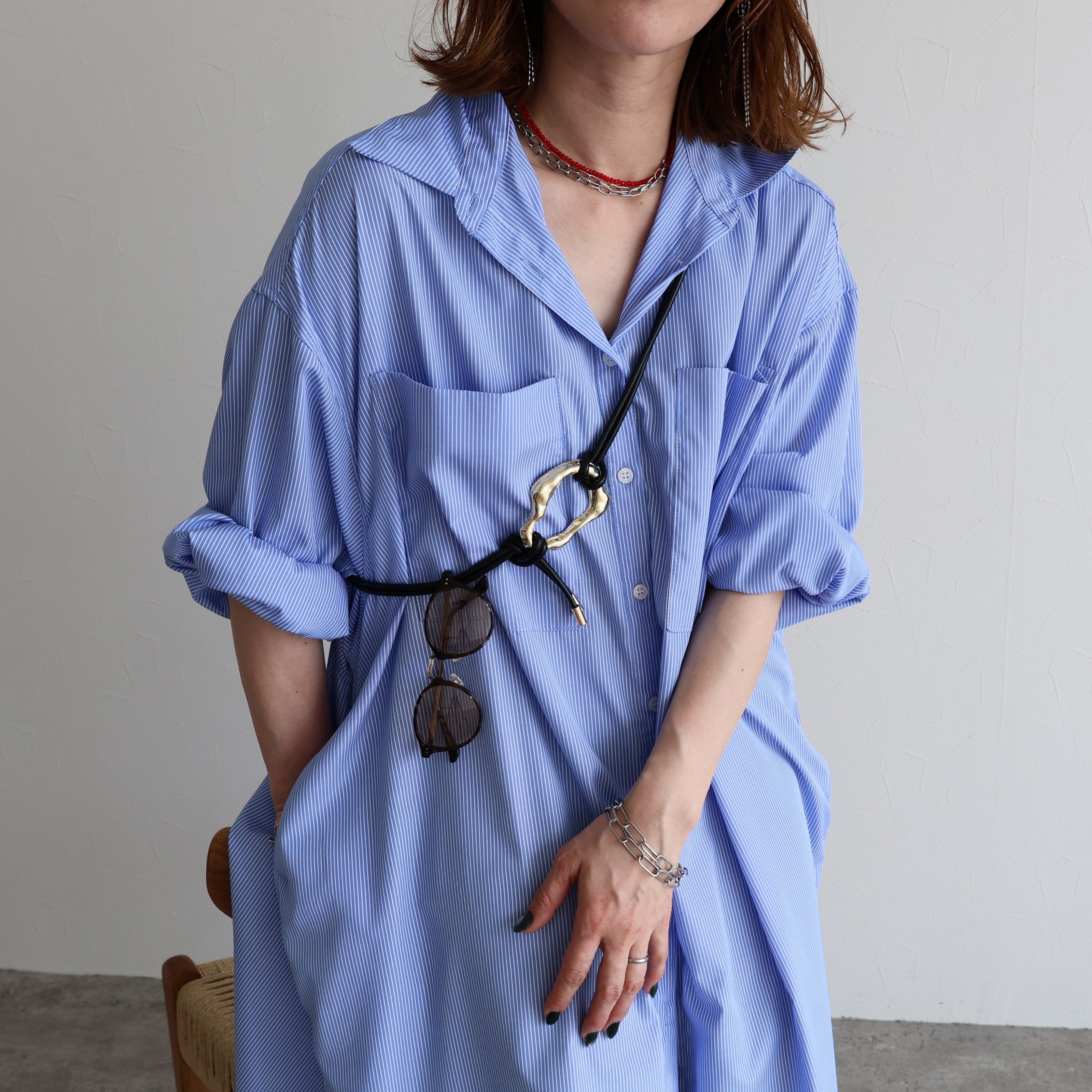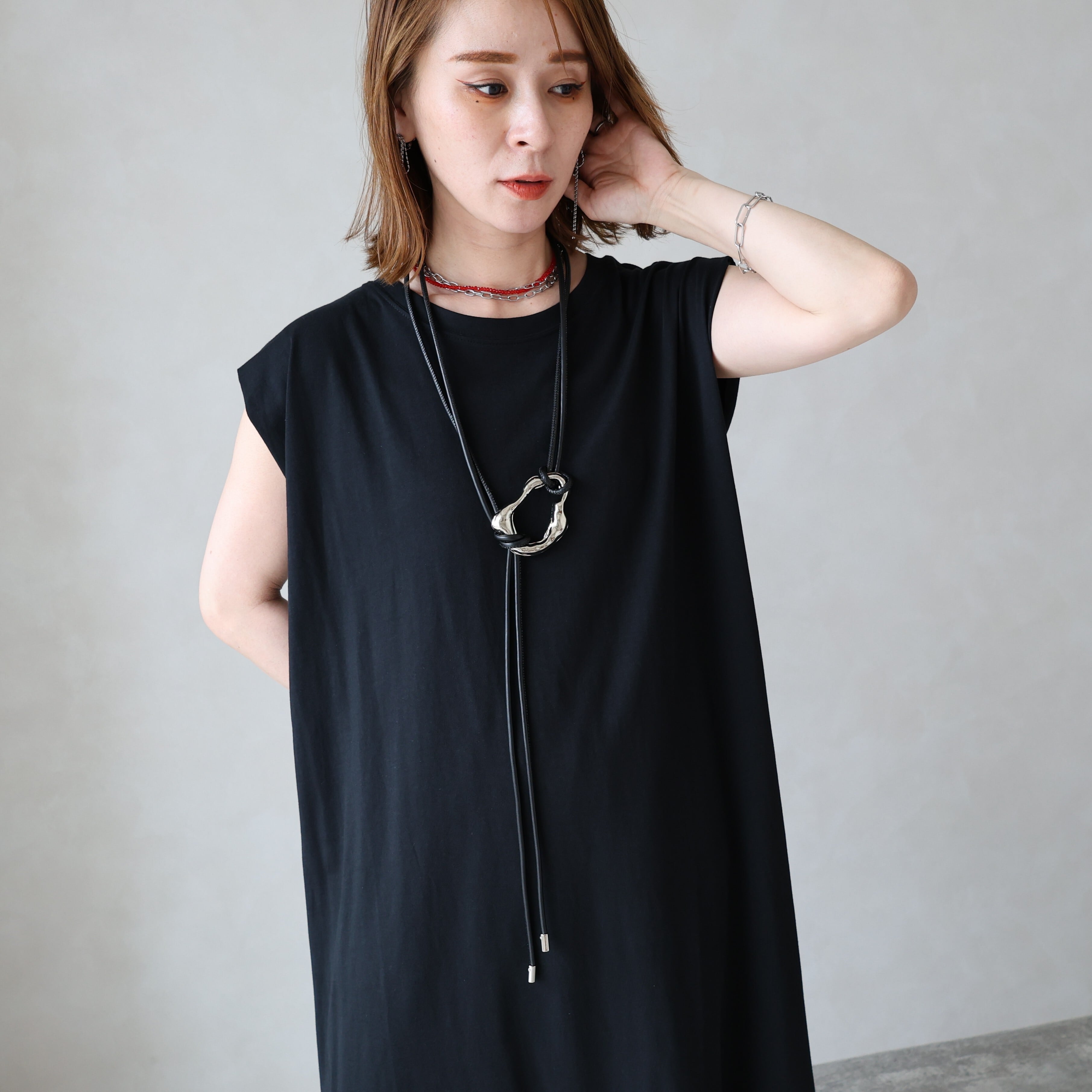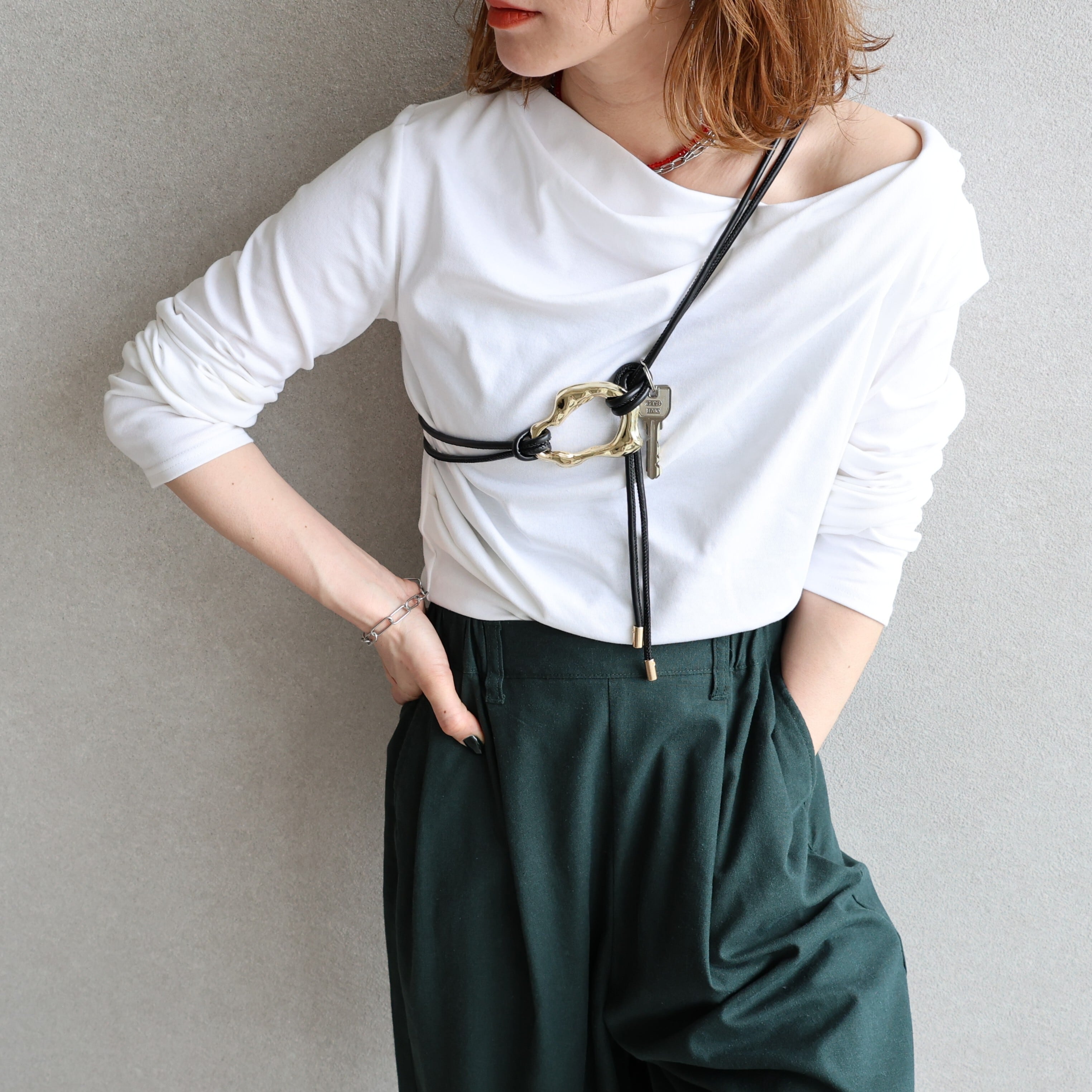 長めのロープでワンピースやシャツはもちろん、ニット・アウターの上からも巻けるのでロングシーズンお使いいただけます♩