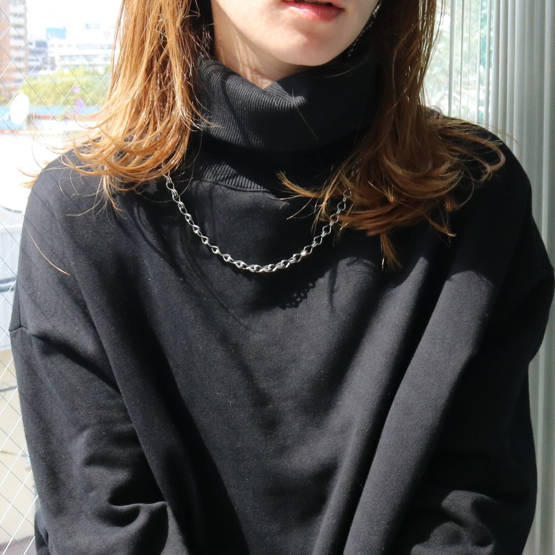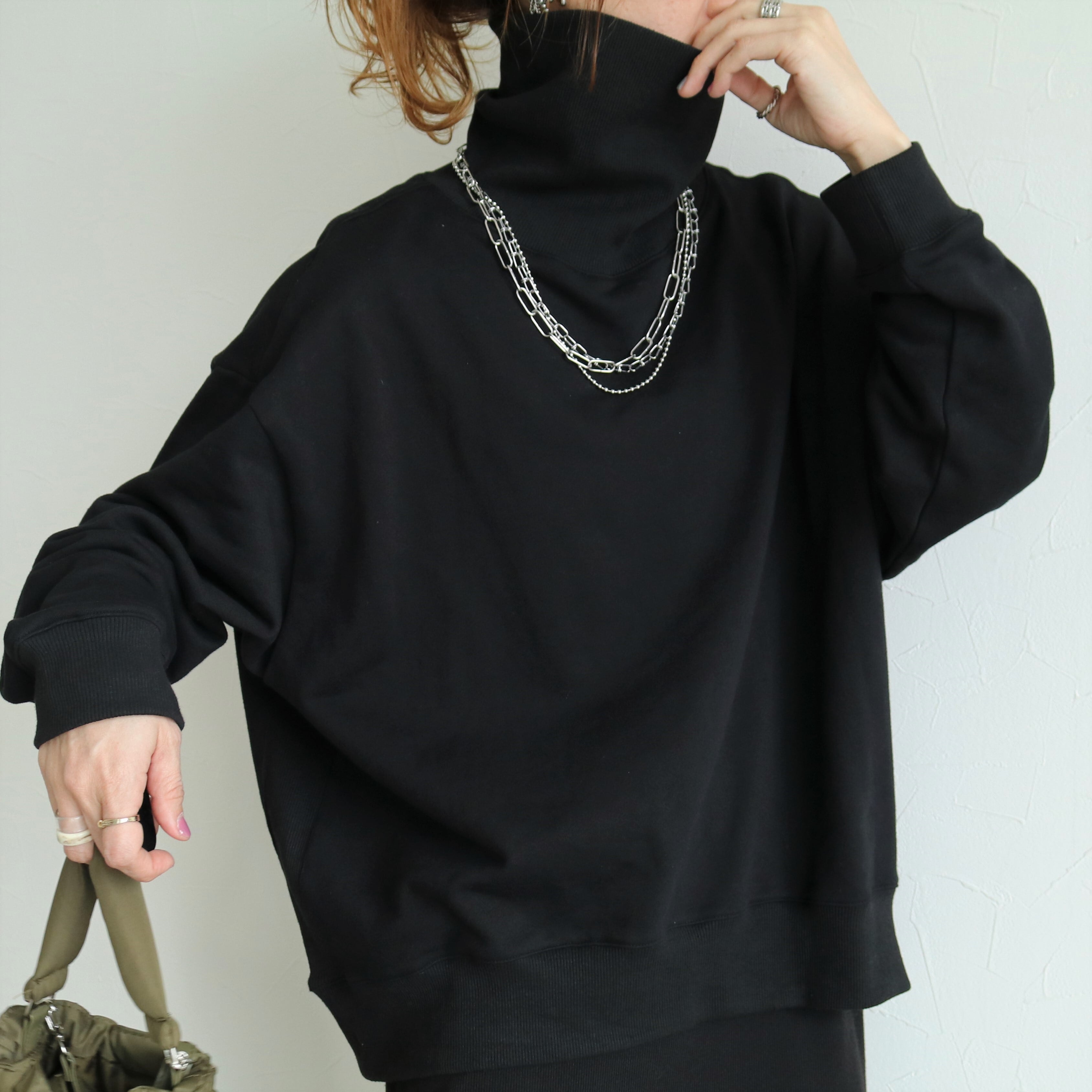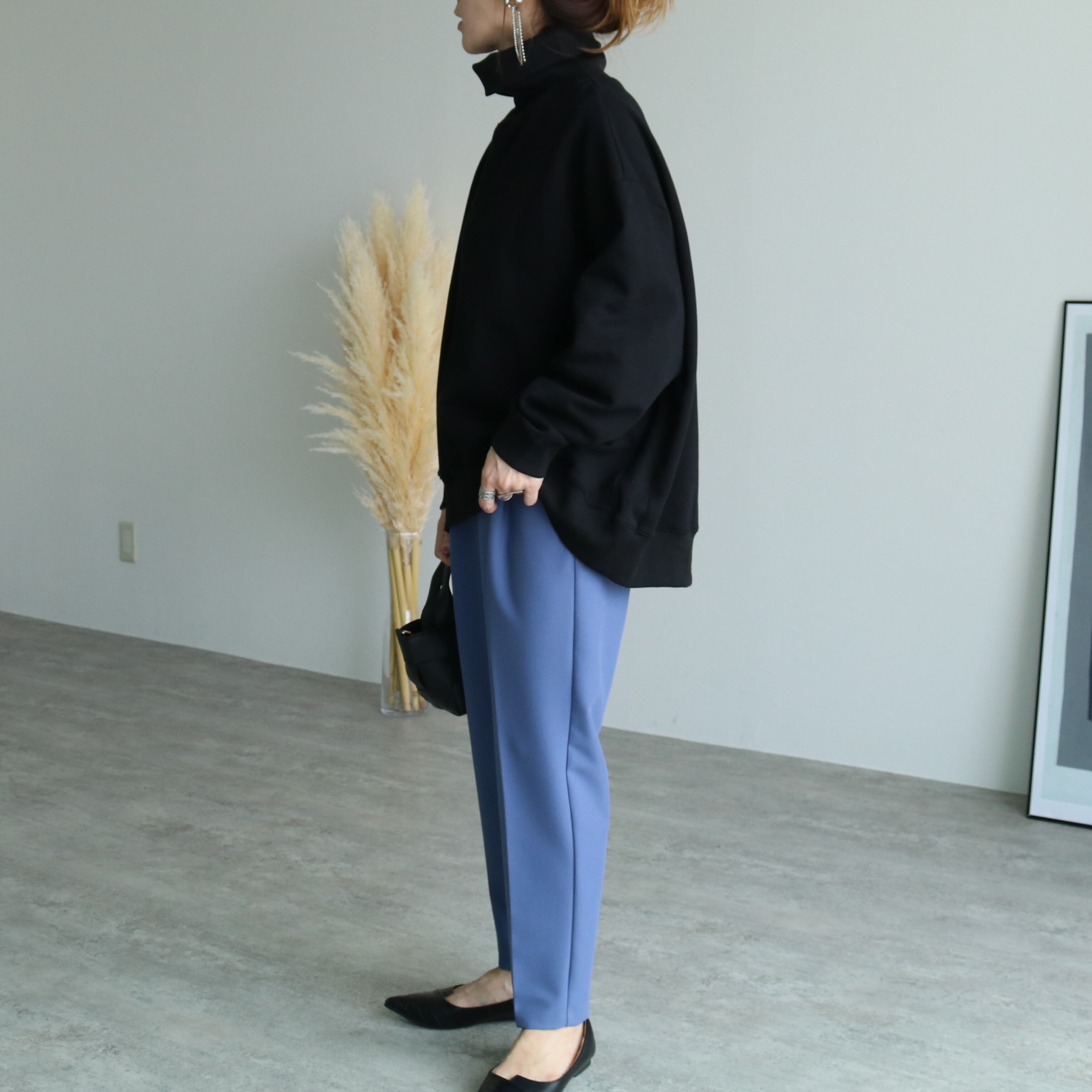 ハイネックのリブがスウェットなのにグッと大人っぽい印象に◎