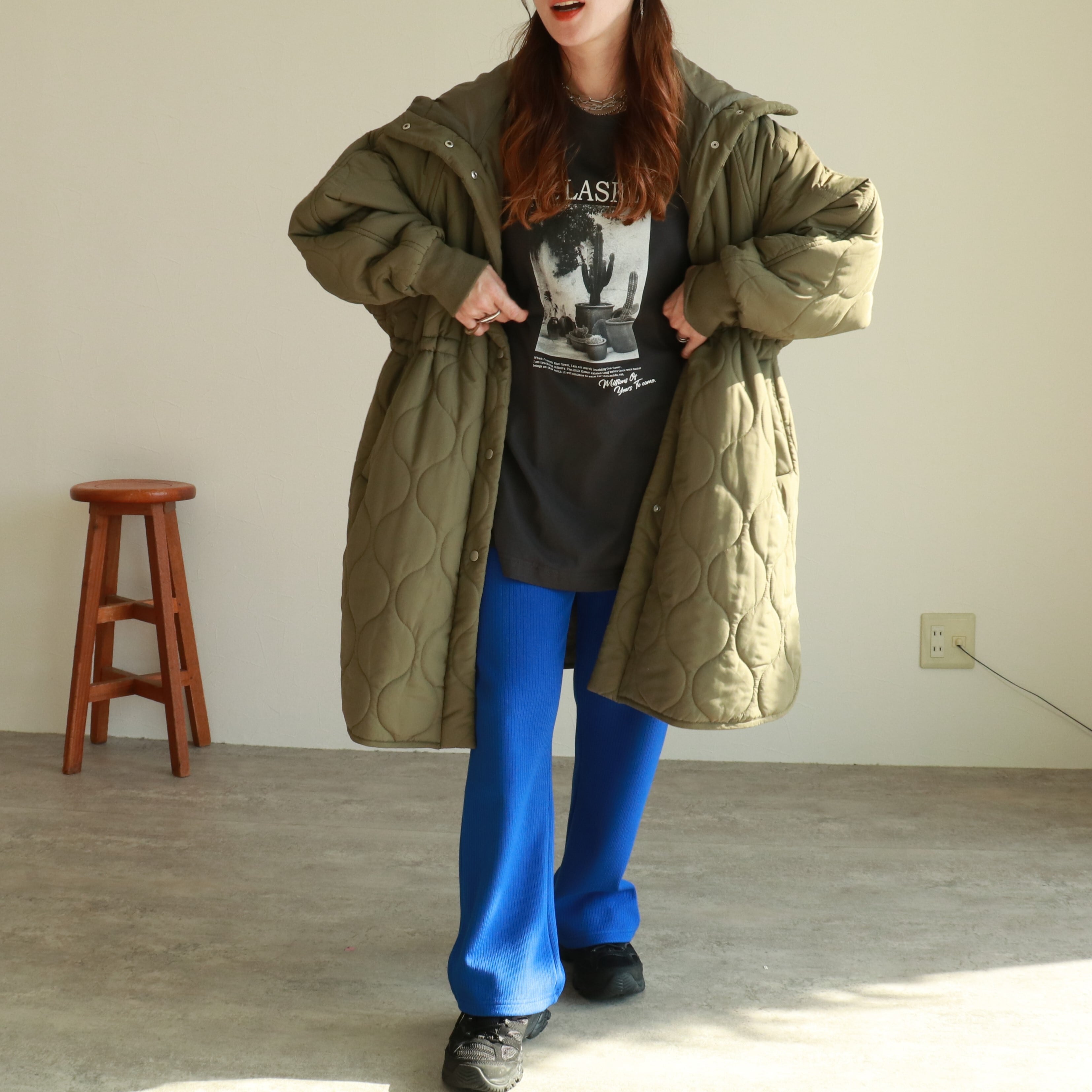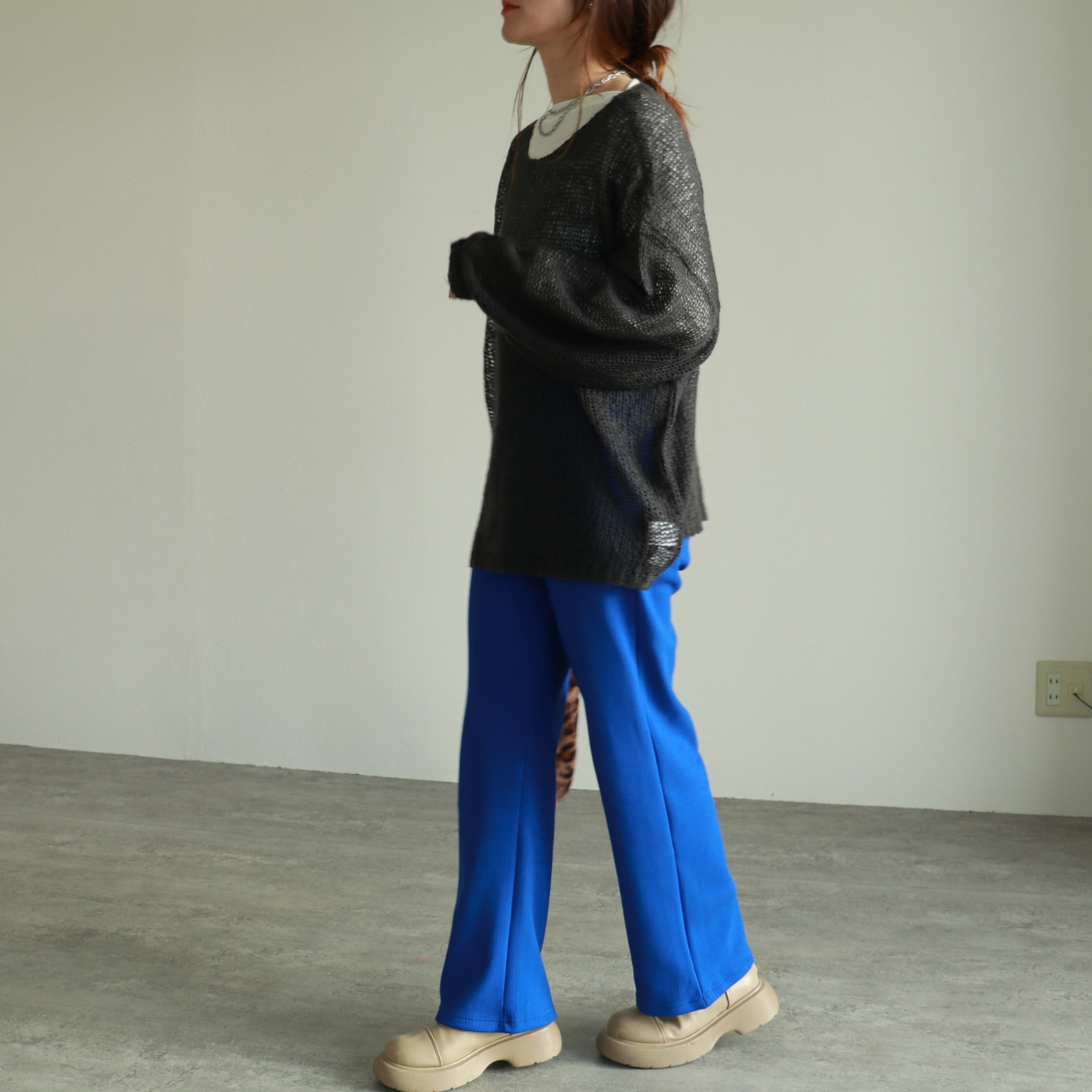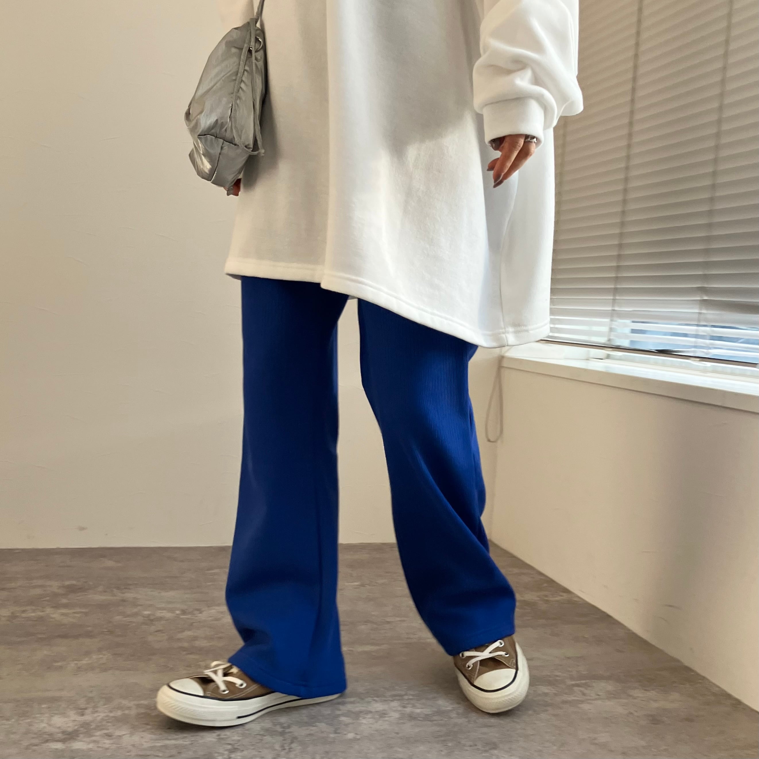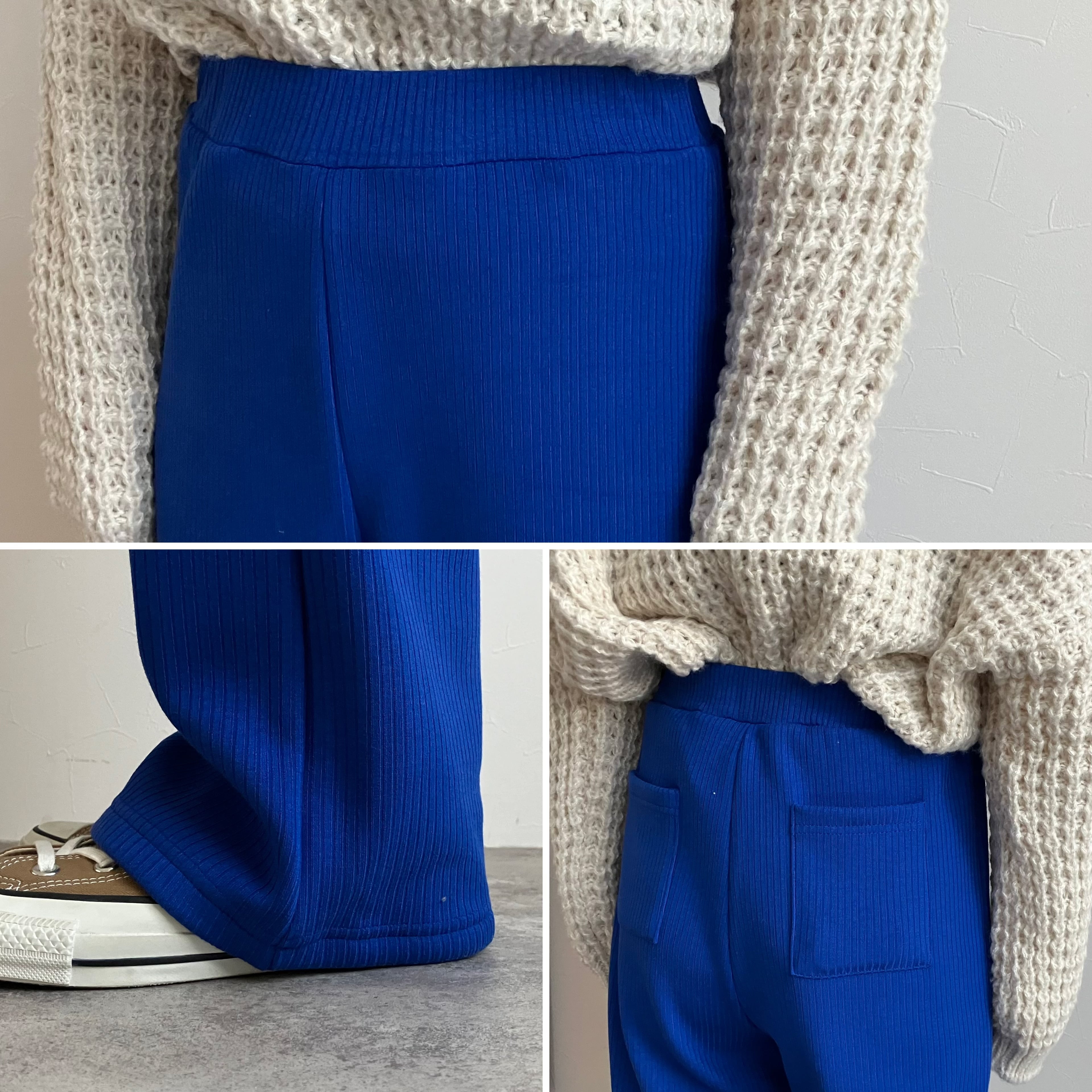 リブが入っているので、縦のラインがスッキリとしたリラックスパンツ。