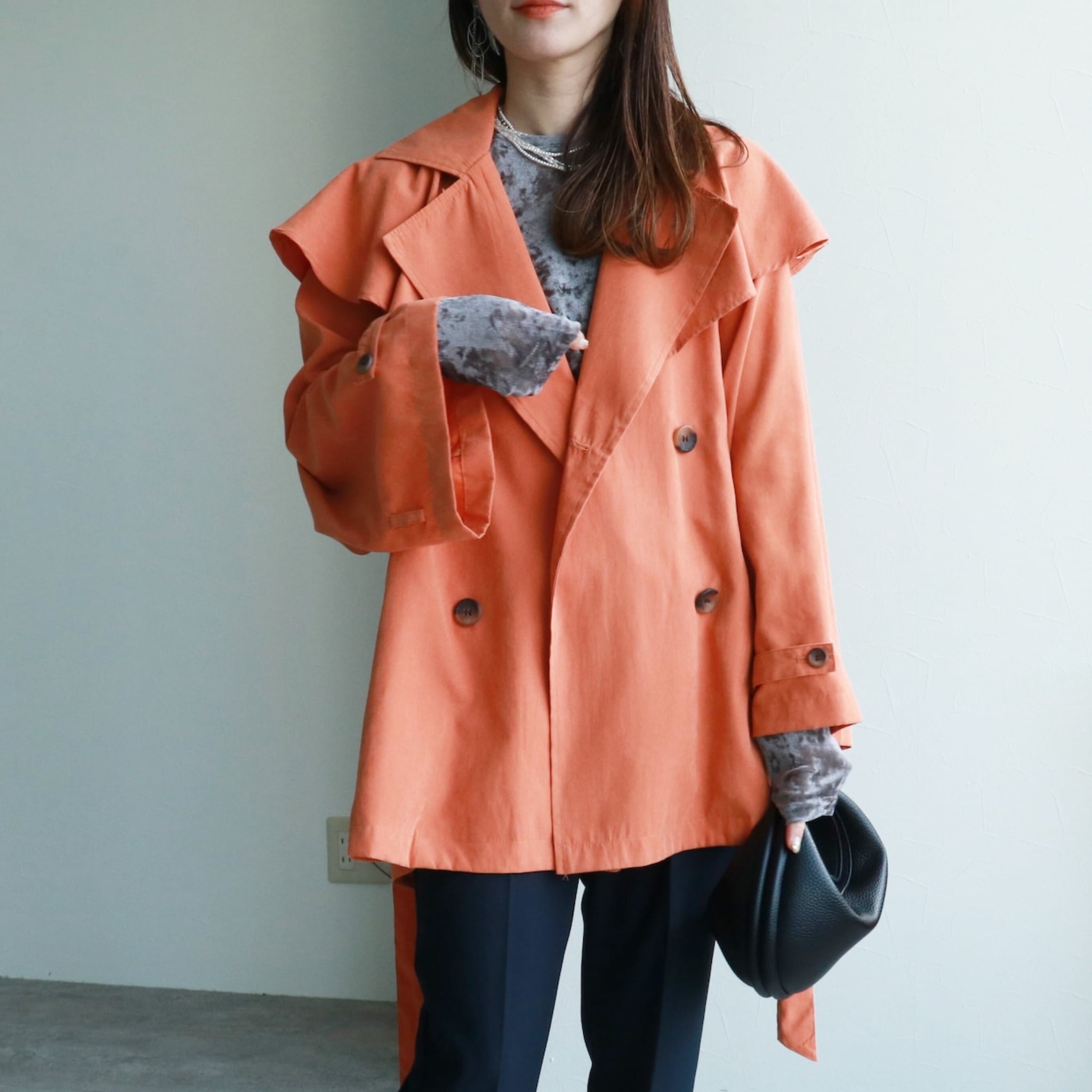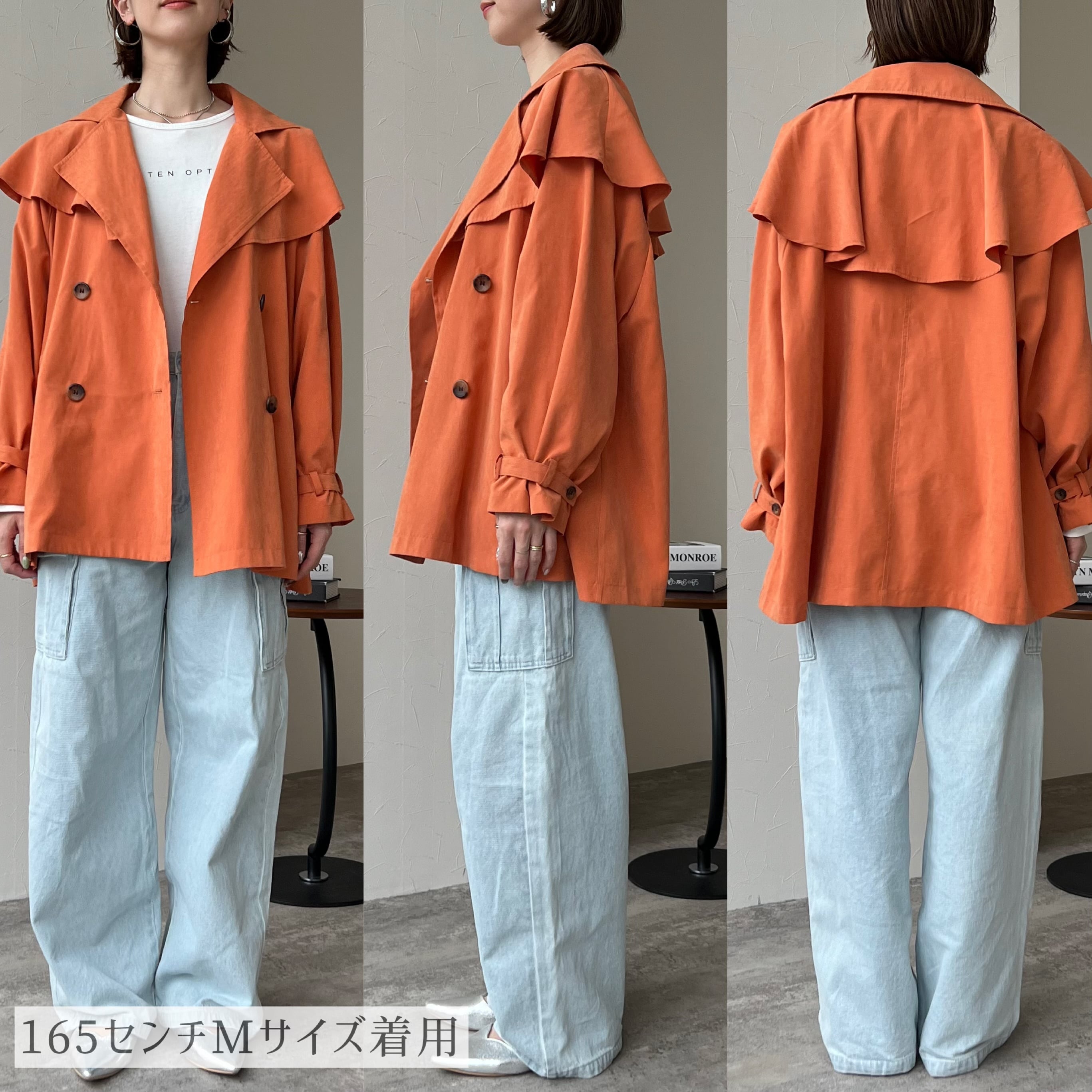 ショート丈のポンチョ風トレンチデザインは簡単にコーディネートの主役に◎