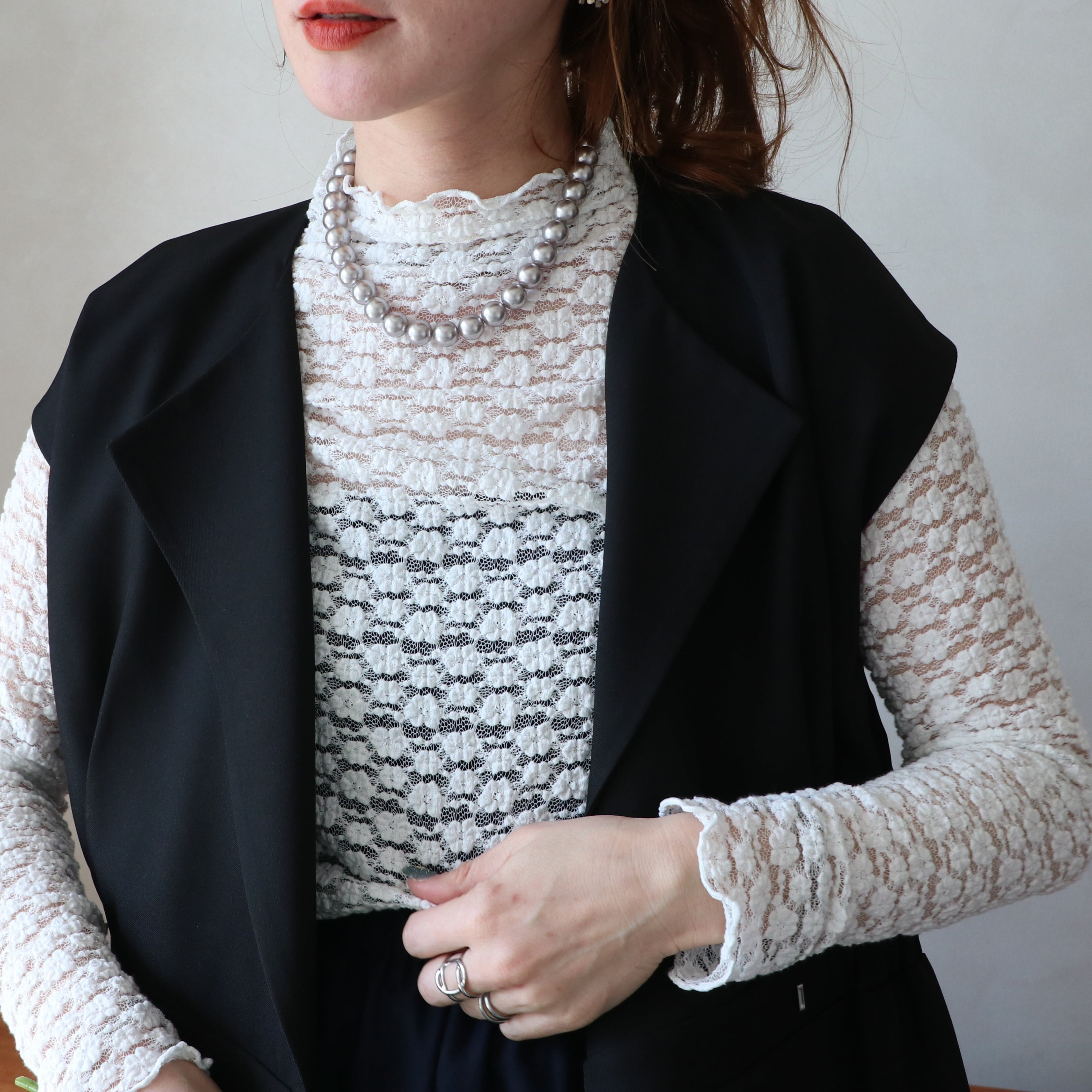 大人が着られる甘すぎないデザインでジャケットなどのインナー使いにぴったりです。