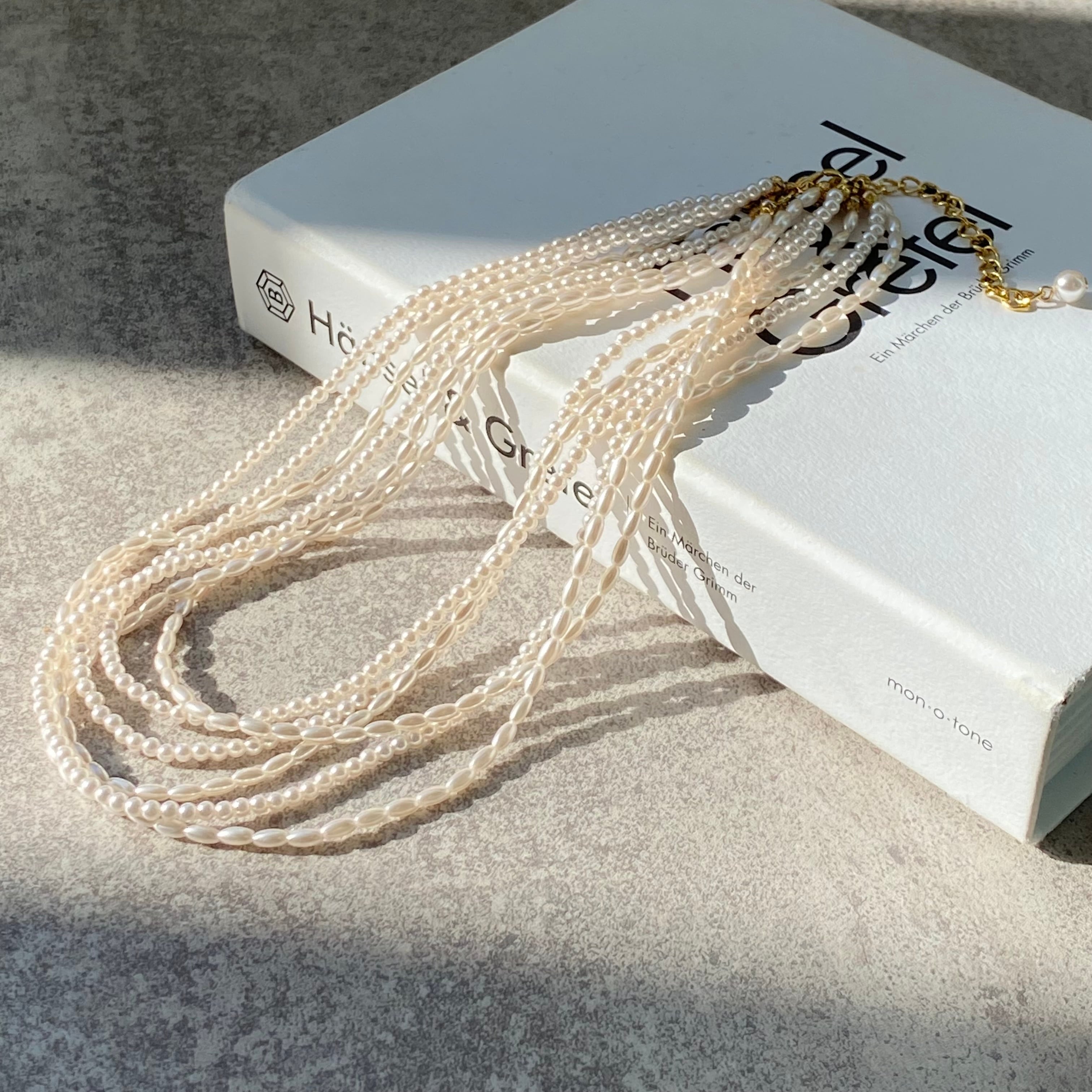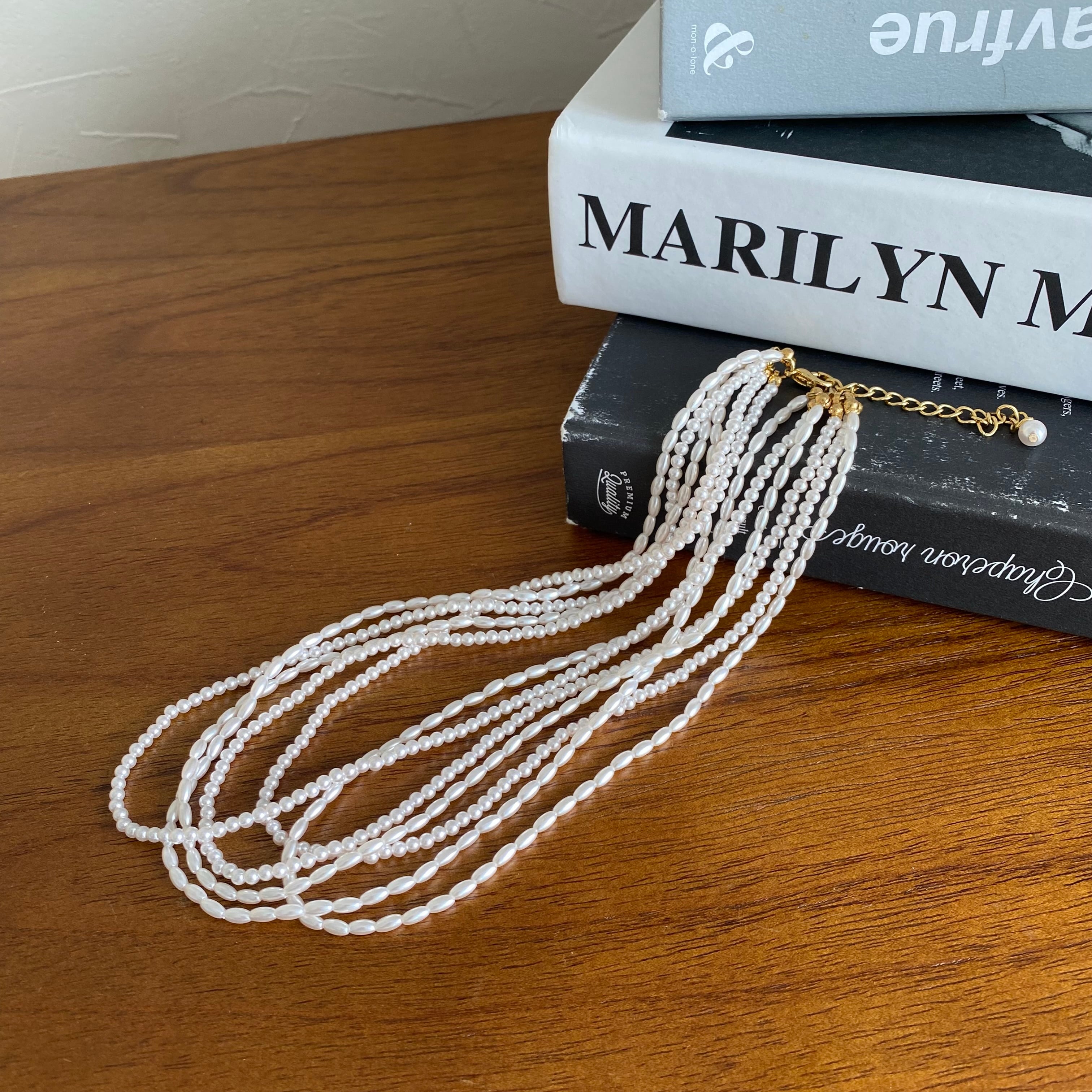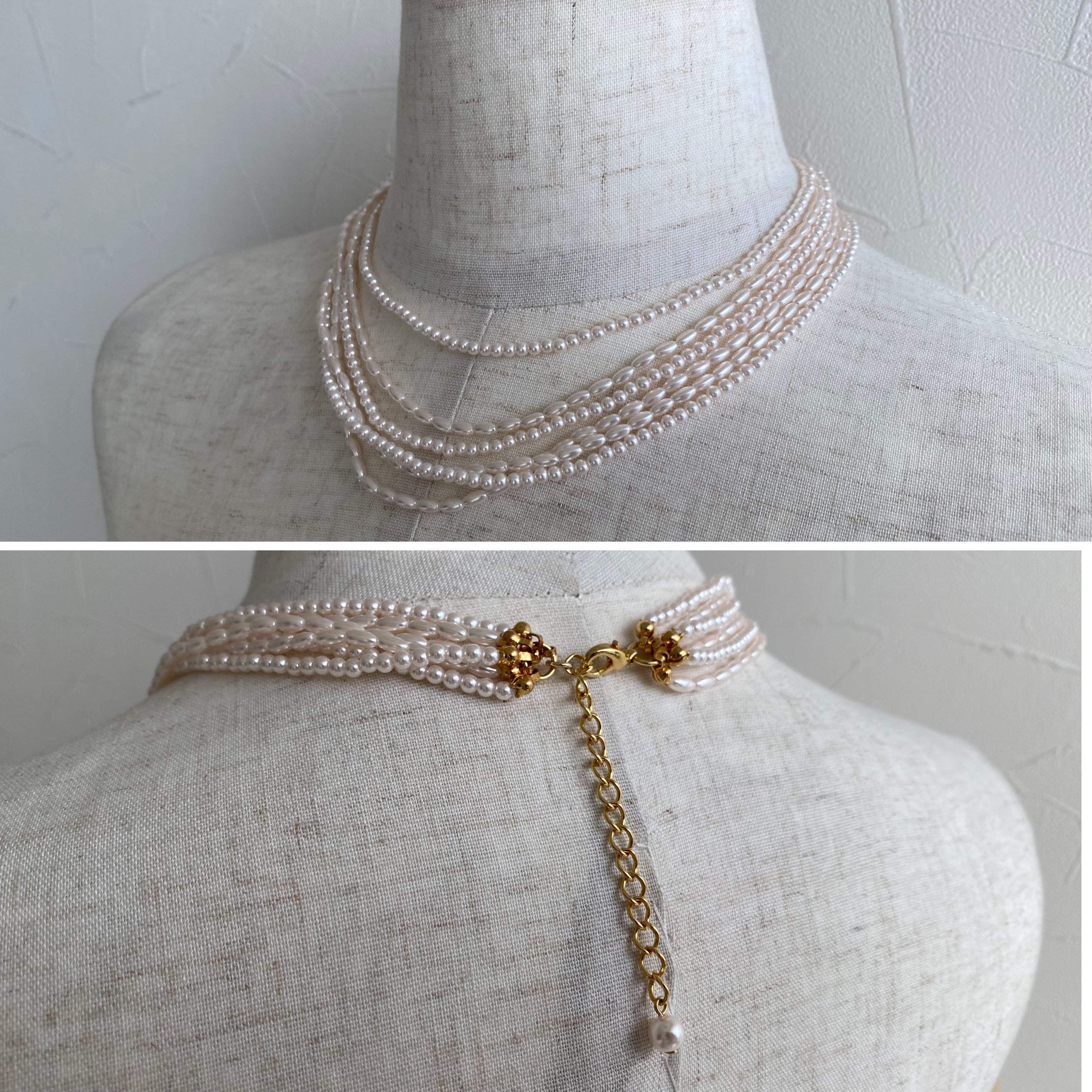 視線を集める存在感が可愛い★シンプルな6連パールネックレス。