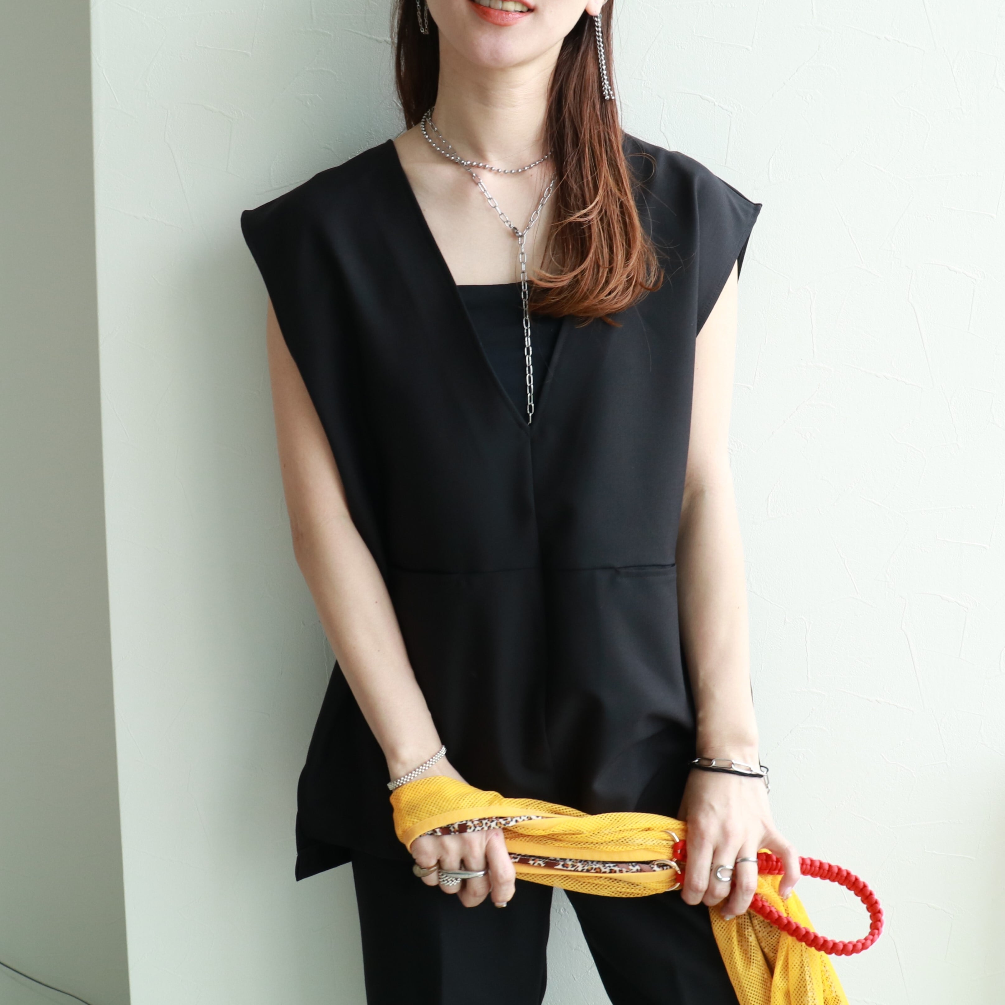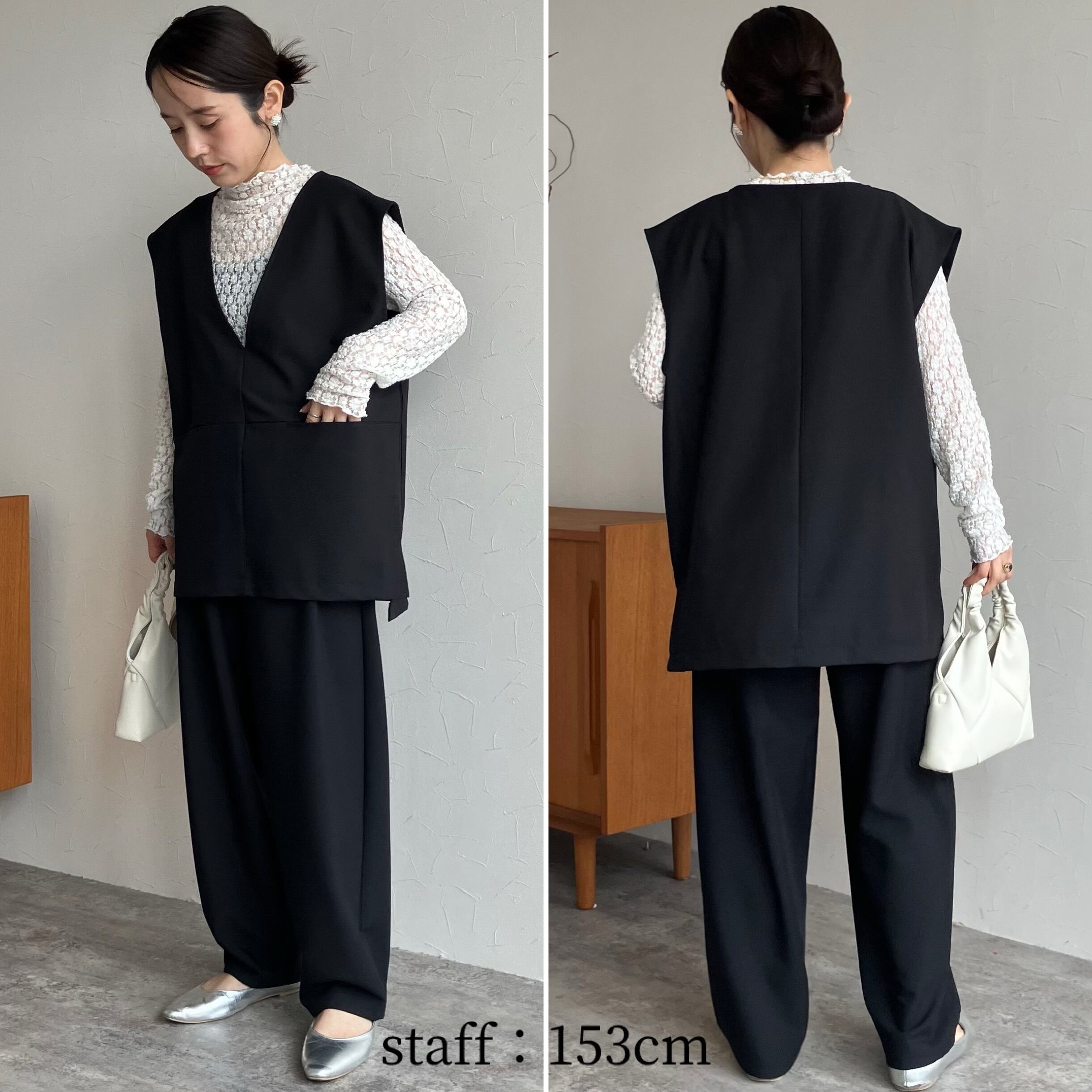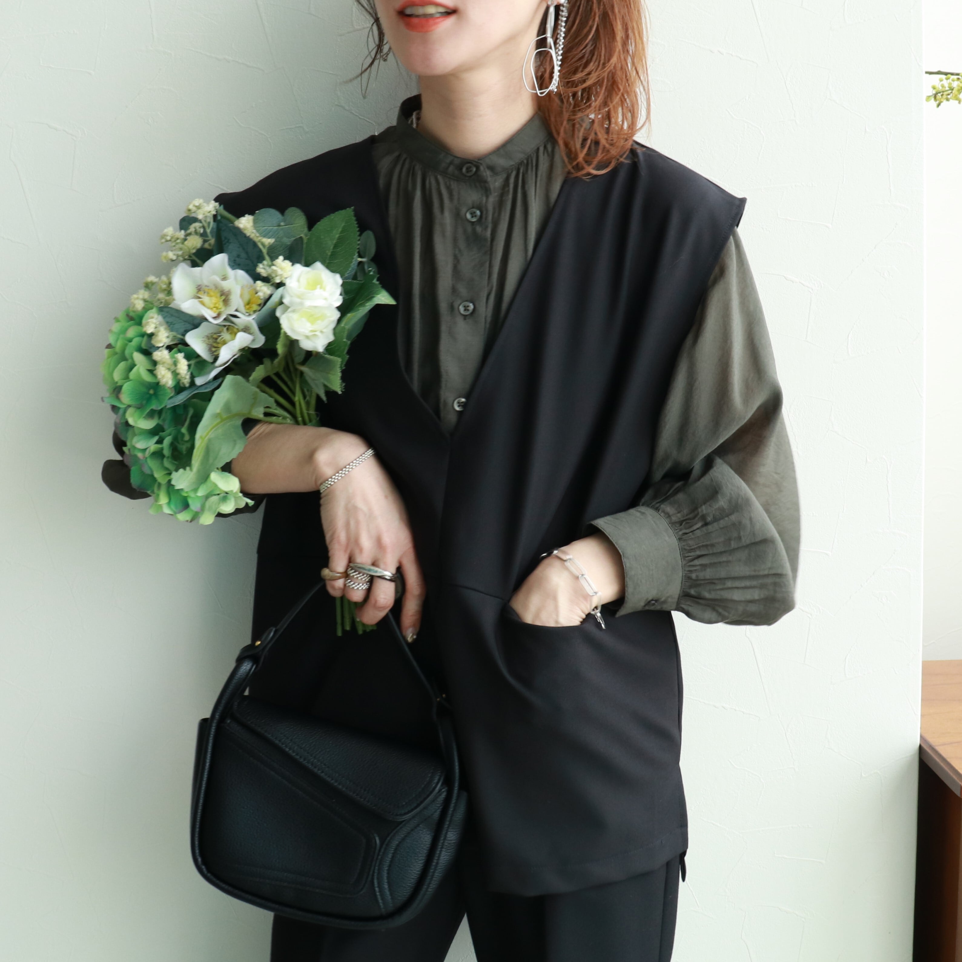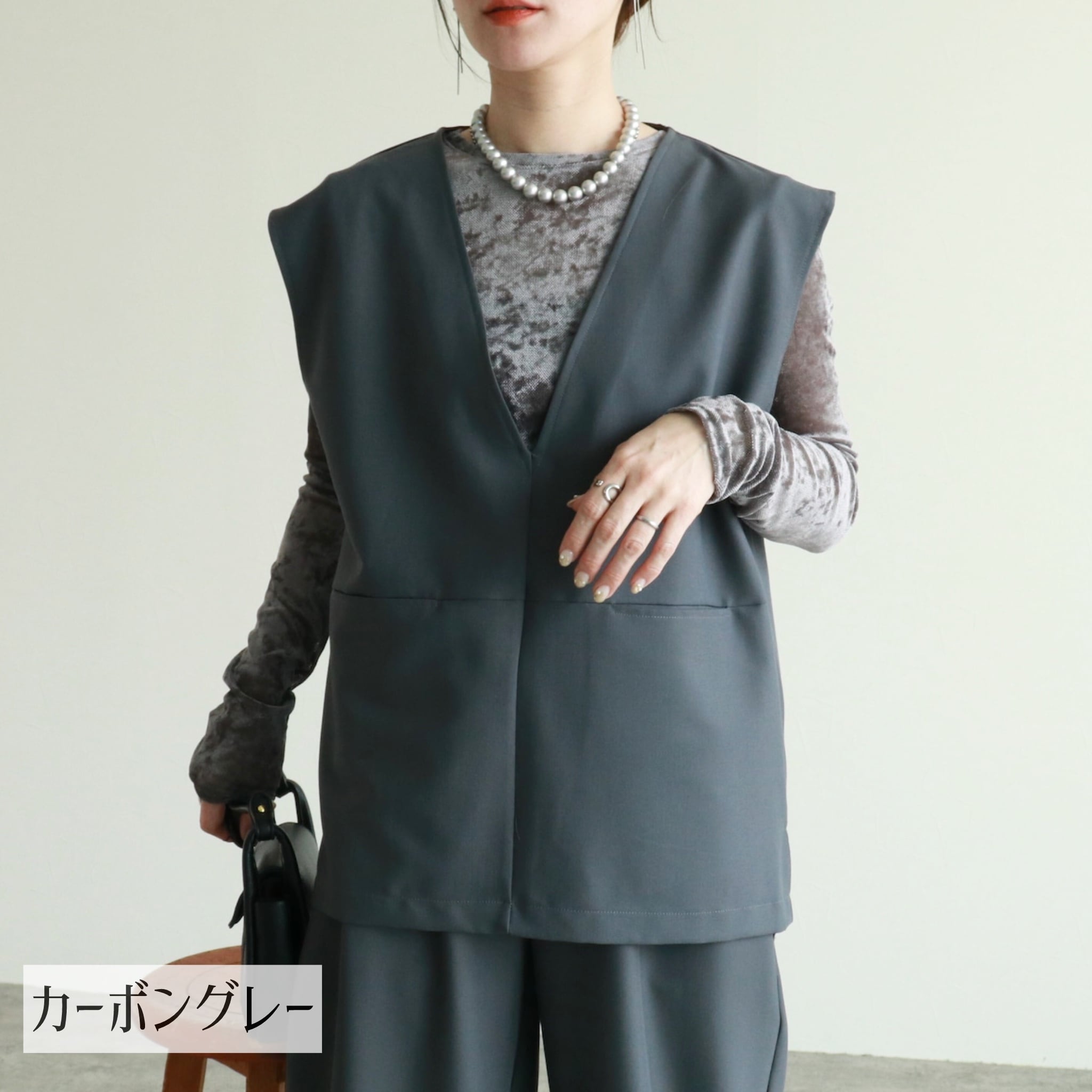 顔周りがスッキリ見せできる深Vネックのベスト◎