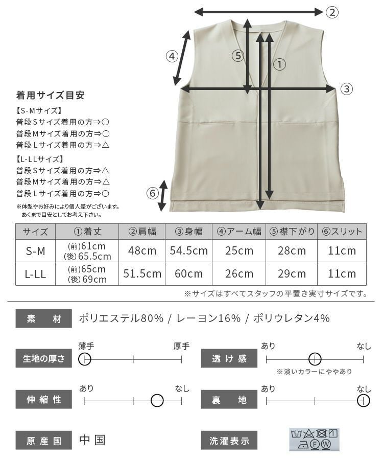 S-Mサイズ:着丈(前)61cm(後)65.5cm/肩幅48cm/身幅54.5cm/アーム幅25cm/襟下がり28cm/スリット11cm
