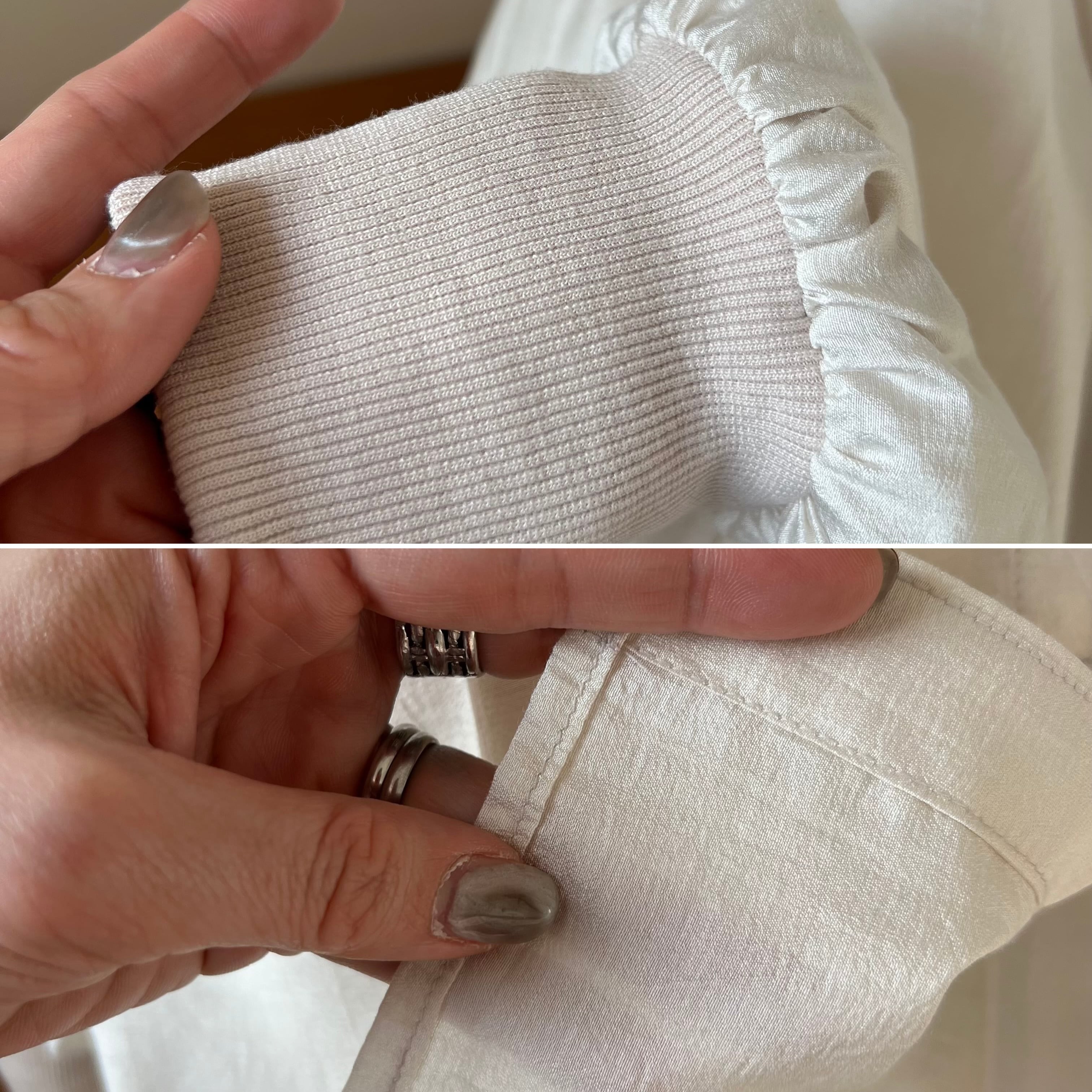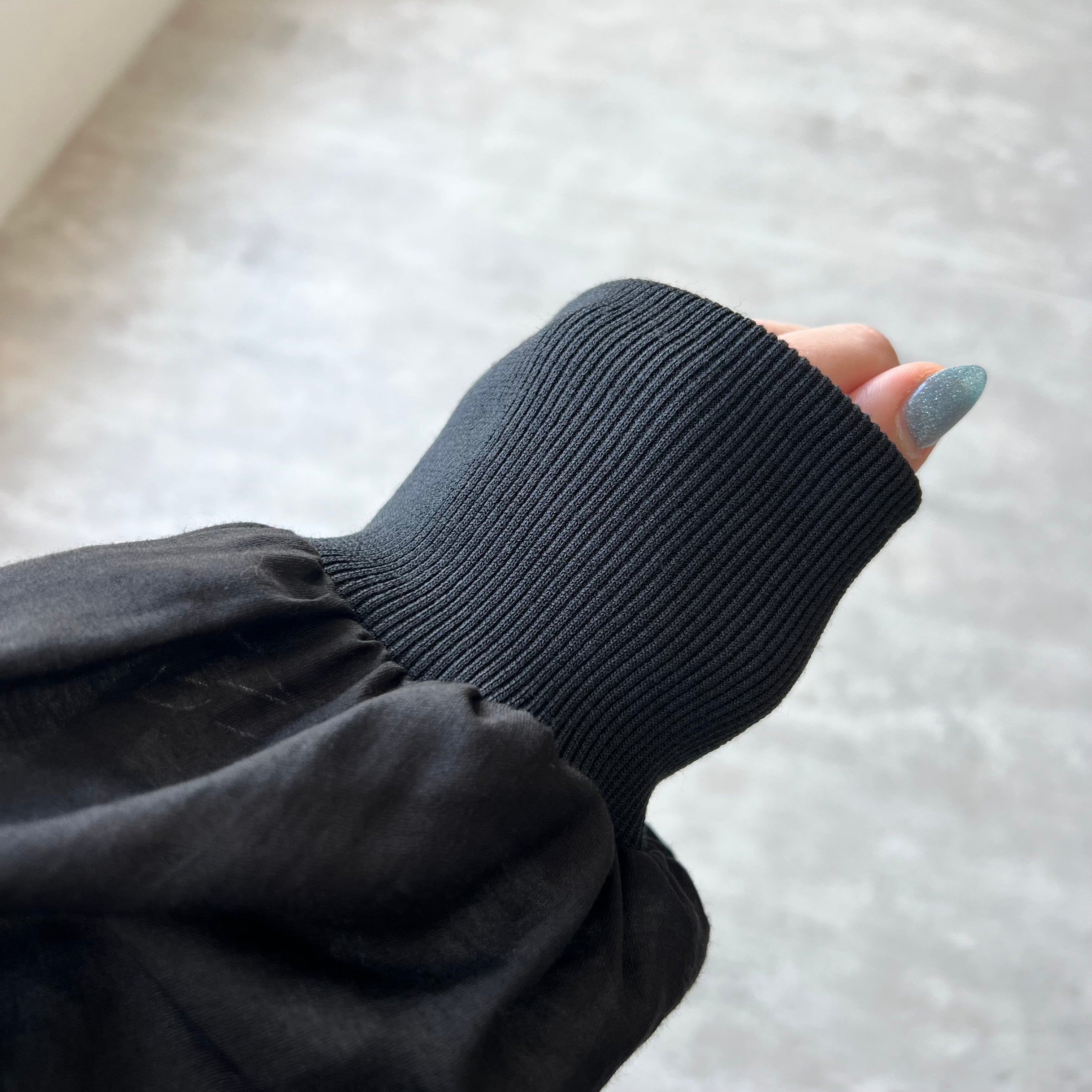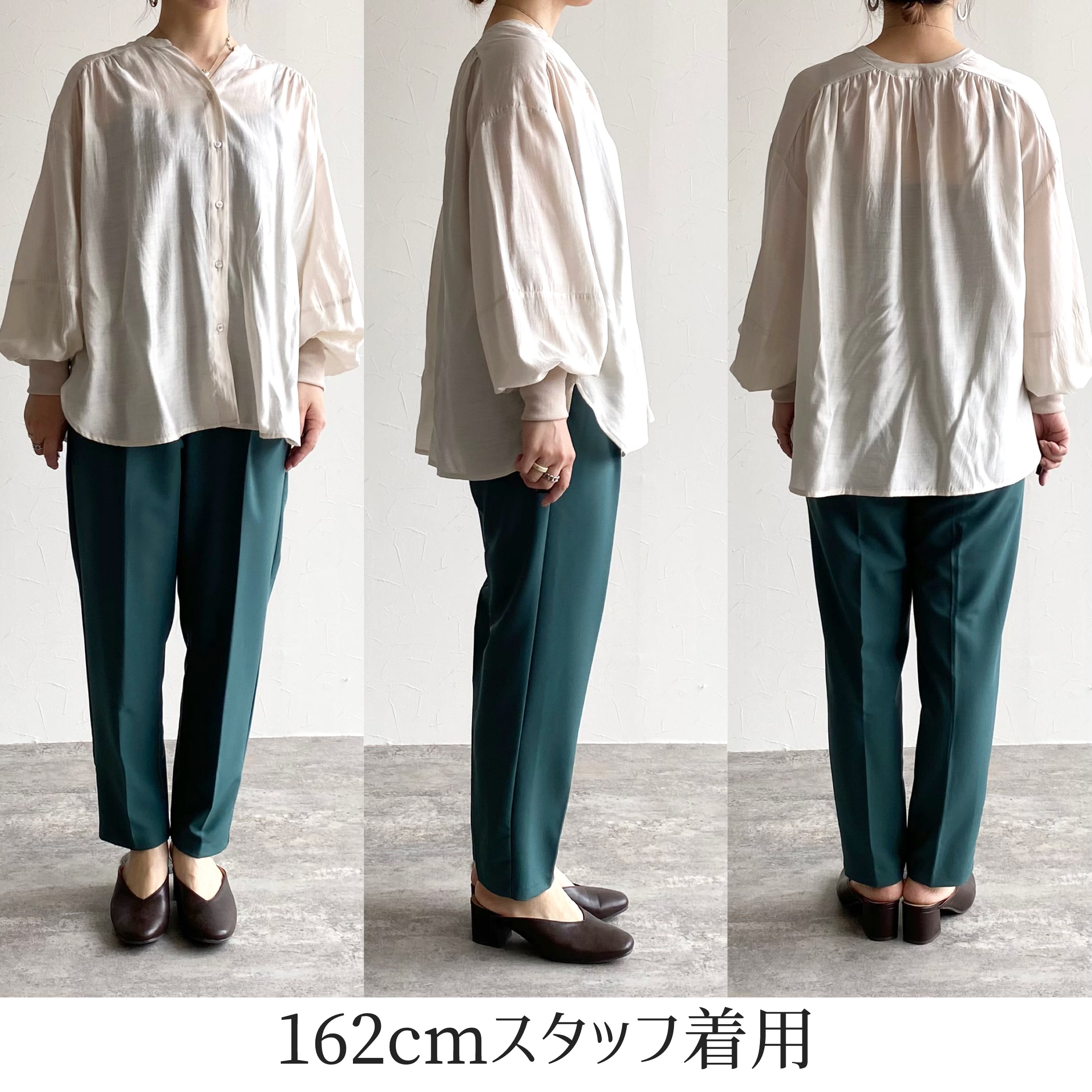 袖口はリブ仕様に仕上げ、さっと楽に着て決まりやすい大人ブラウス。