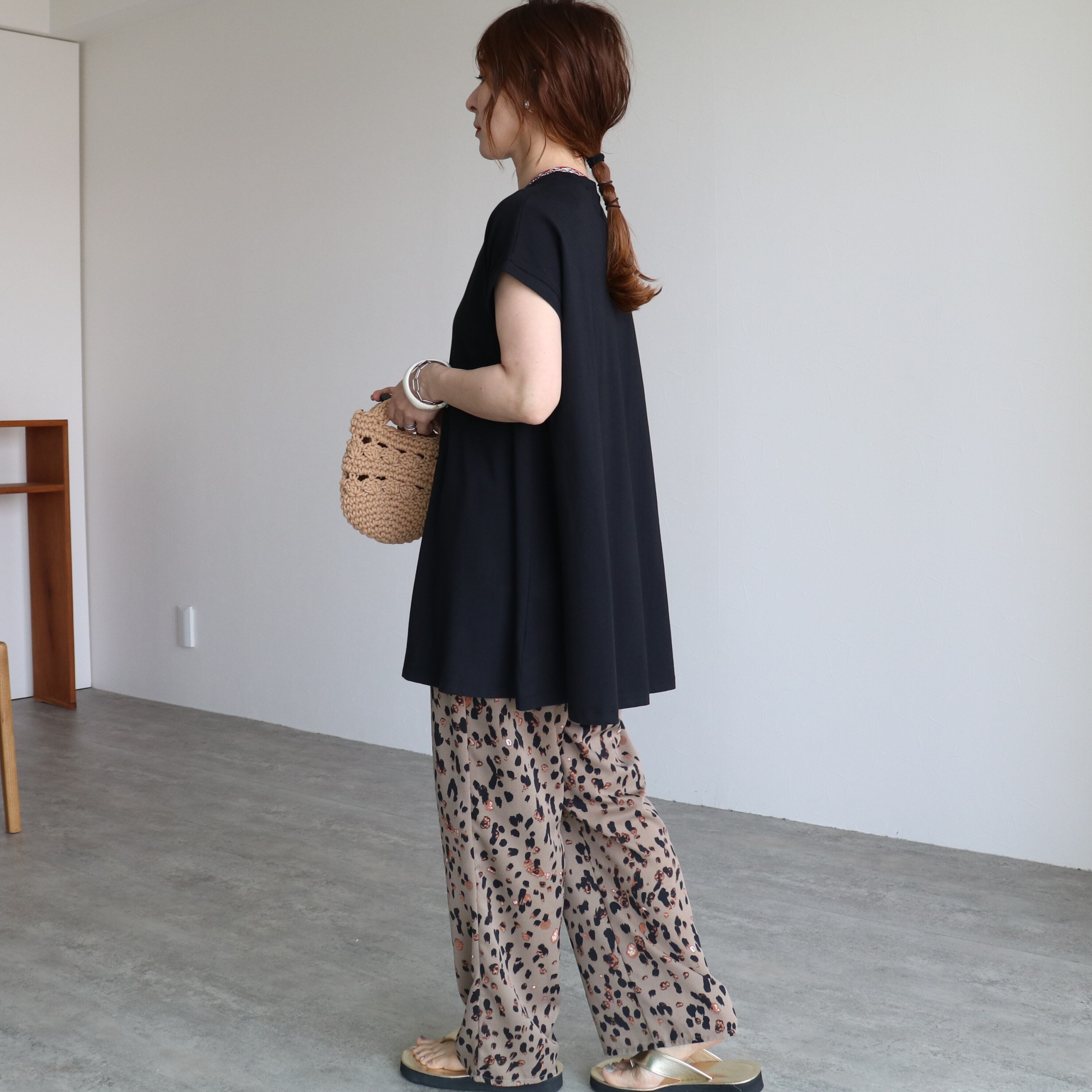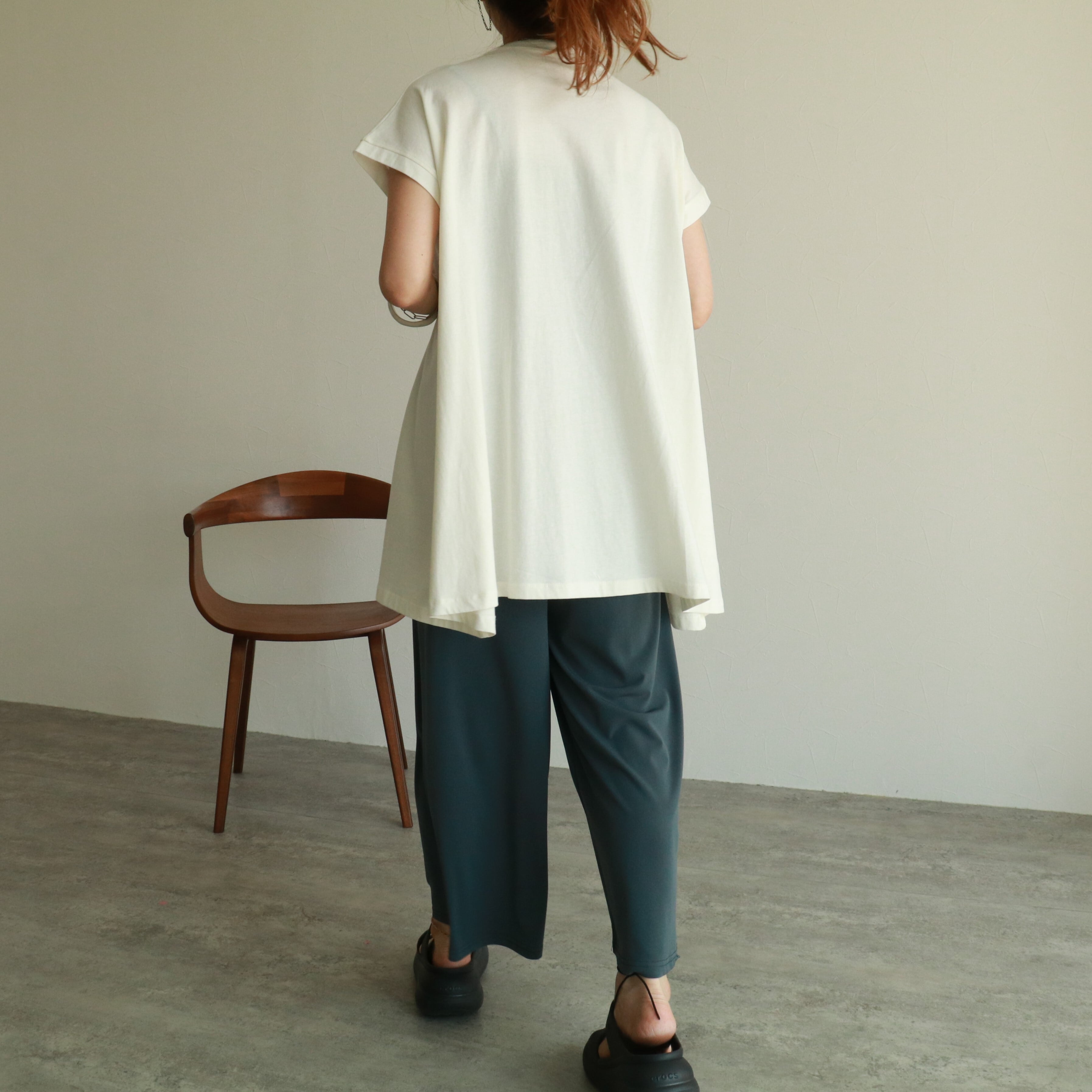 プリントパンツや柄のあるボトムスとも相性抜群です。