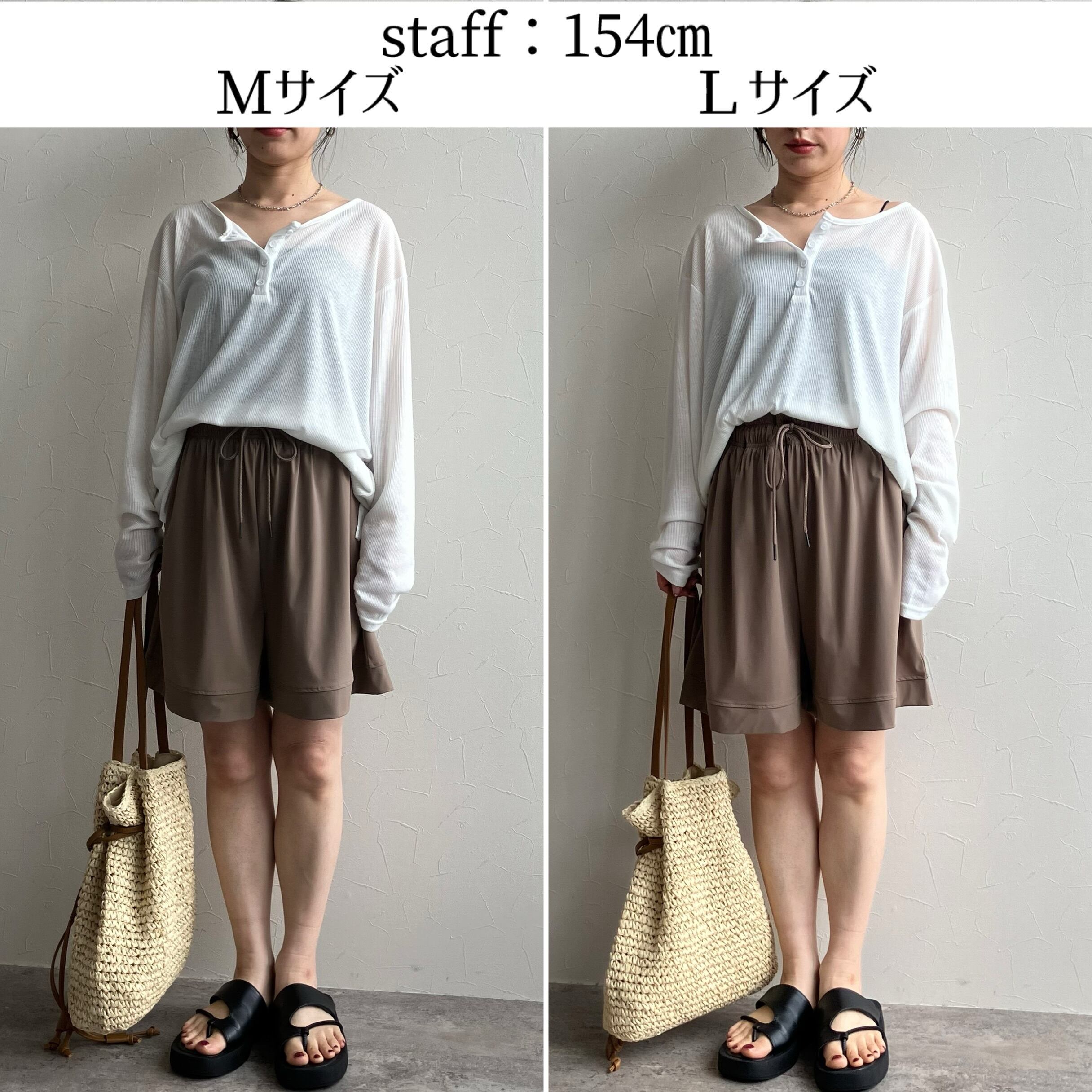 Lサイズ:ウエスト(ゴム仕様)72~108㎝/ヒップ124㎝/股上37㎝/股下11.5㎝/もも回り78㎝/裾回り78㎝