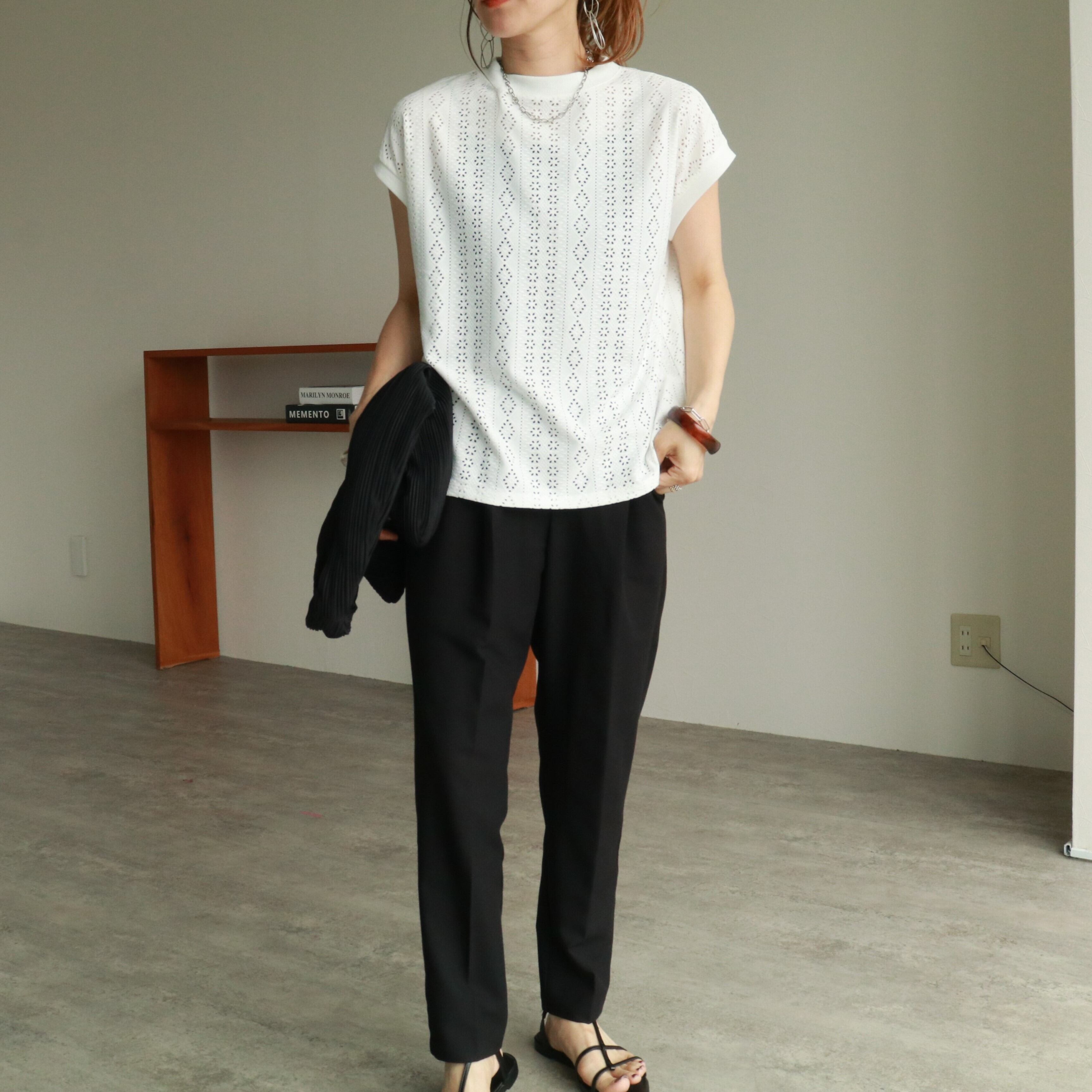 身頃のレース生地の透け感が軽やかな雰囲気を演出し、見た目にも涼し気!
