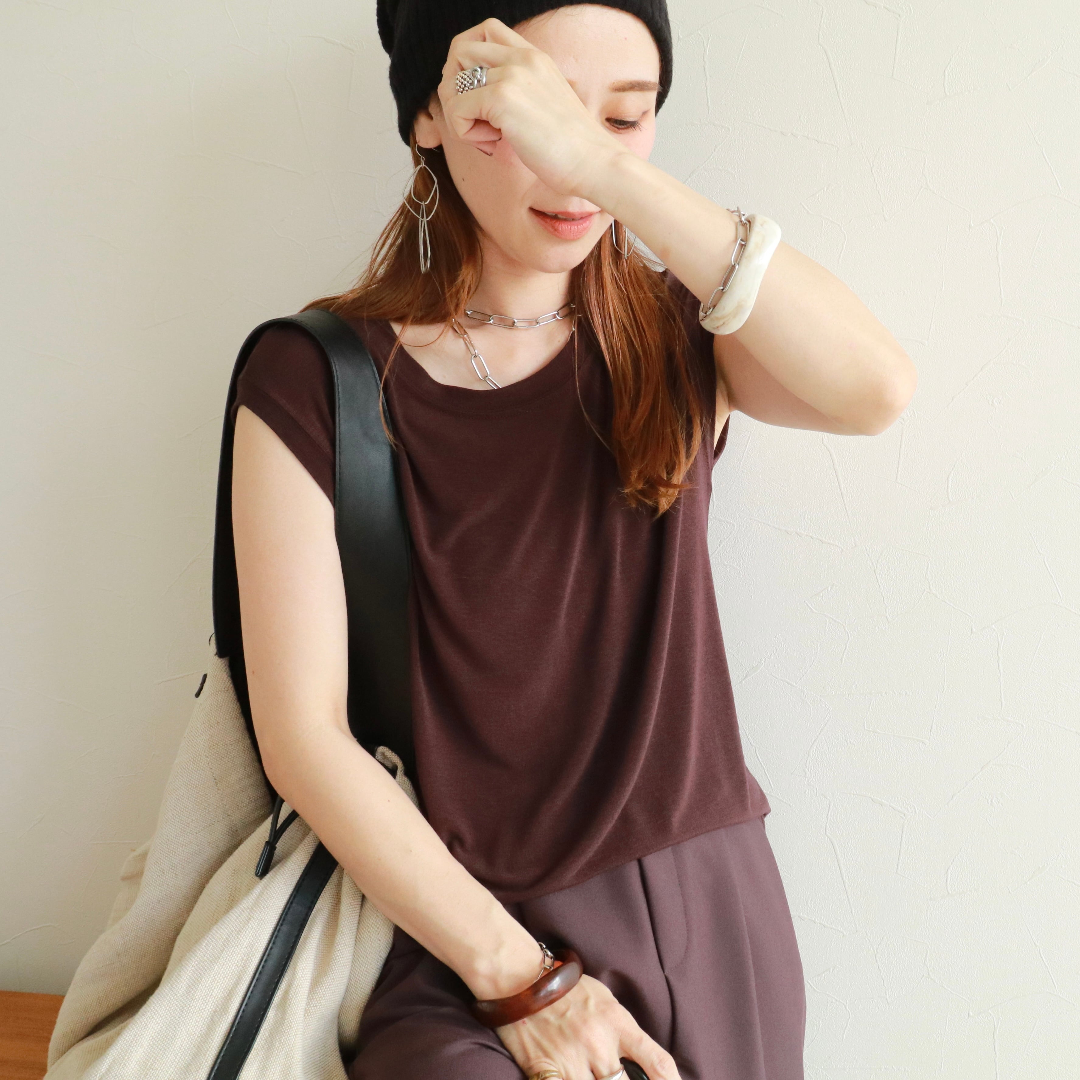 絶妙なネックラインや程よく二の腕が隠れる袖口ラインで、着るだけでこなれ感を演出!