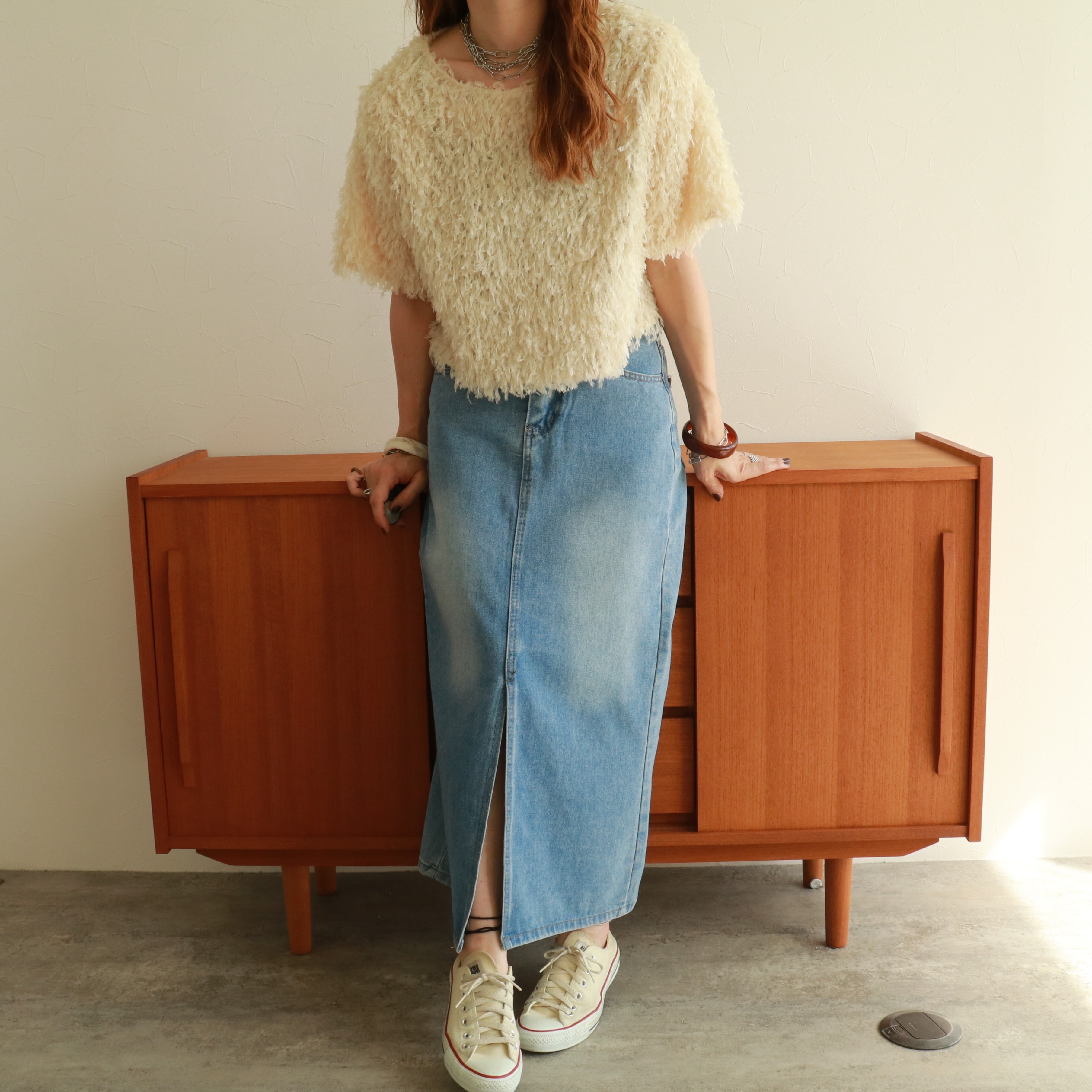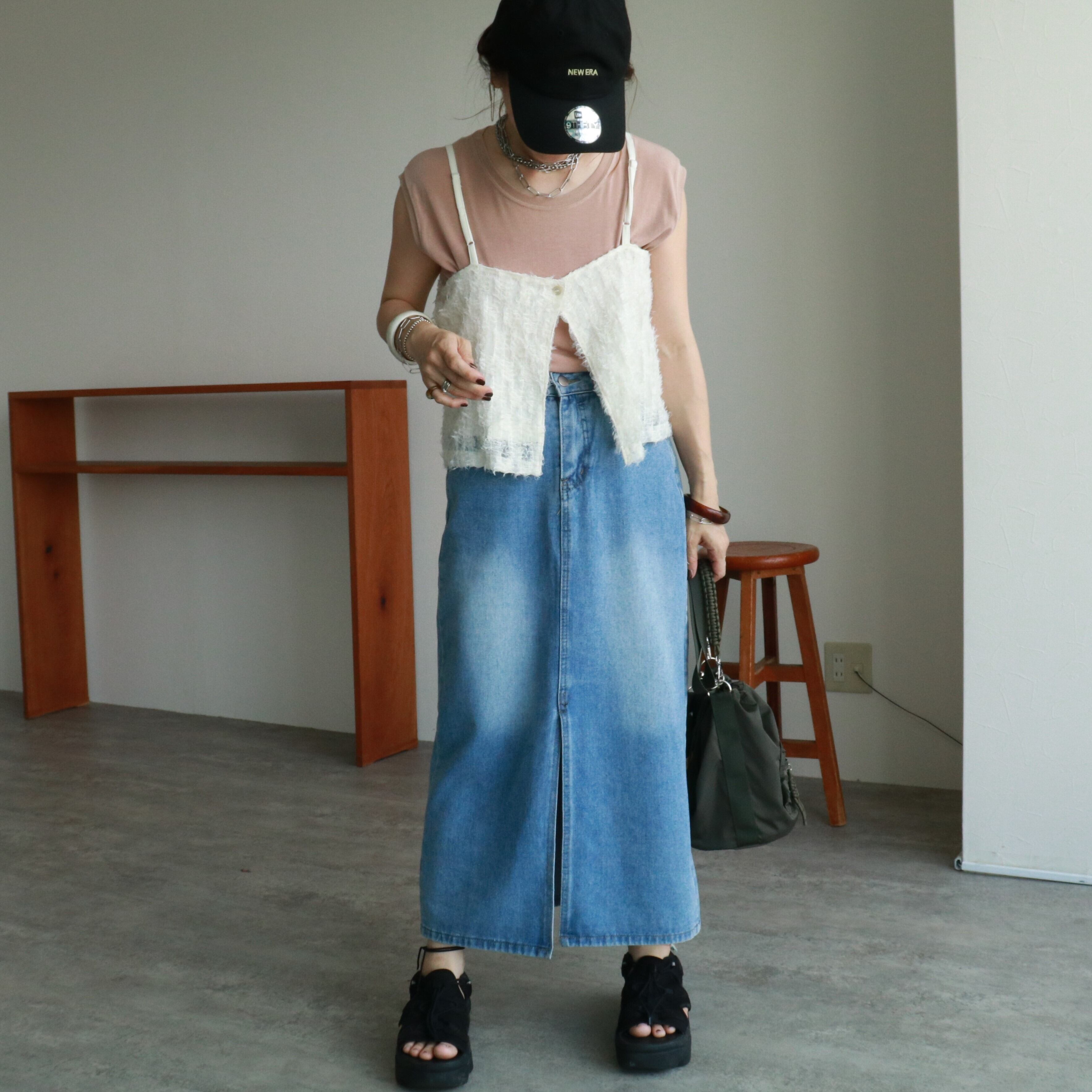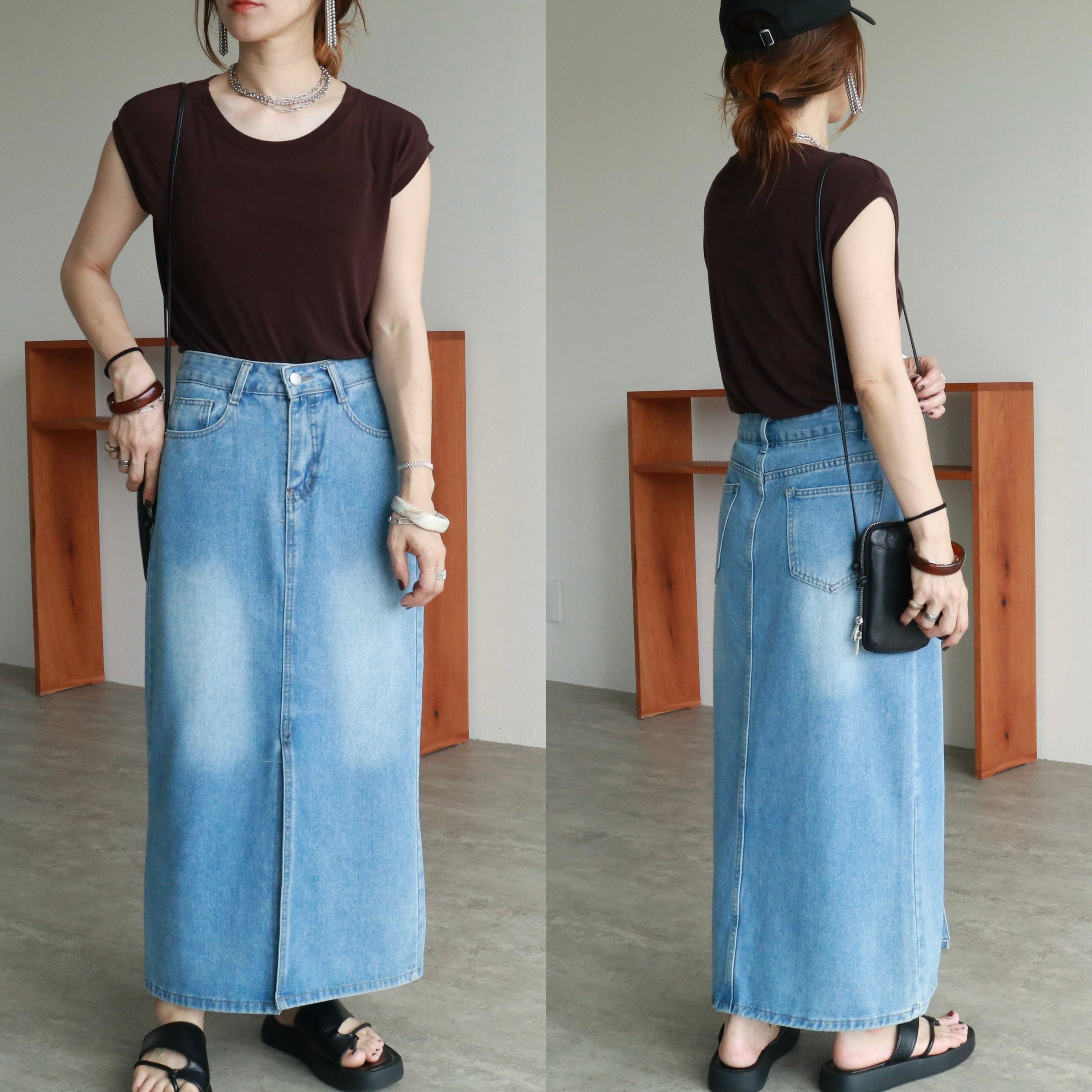 フロントスリットシンプルデニムスカート【240510】メール便送料無料/ネコポス発送10
