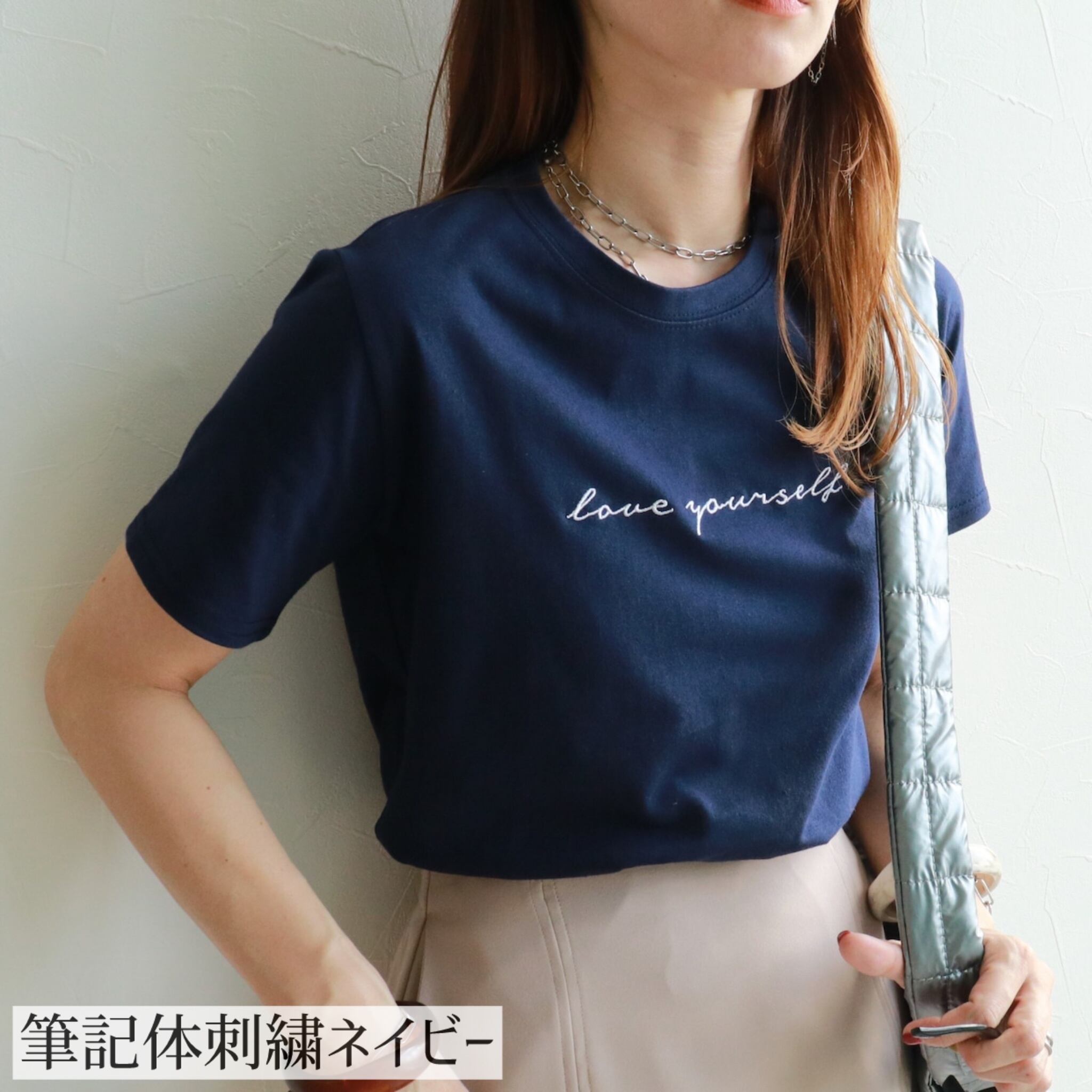 筆記体刺繍:大人っぽい印象でキレイめのスタイリングに使いやすい。