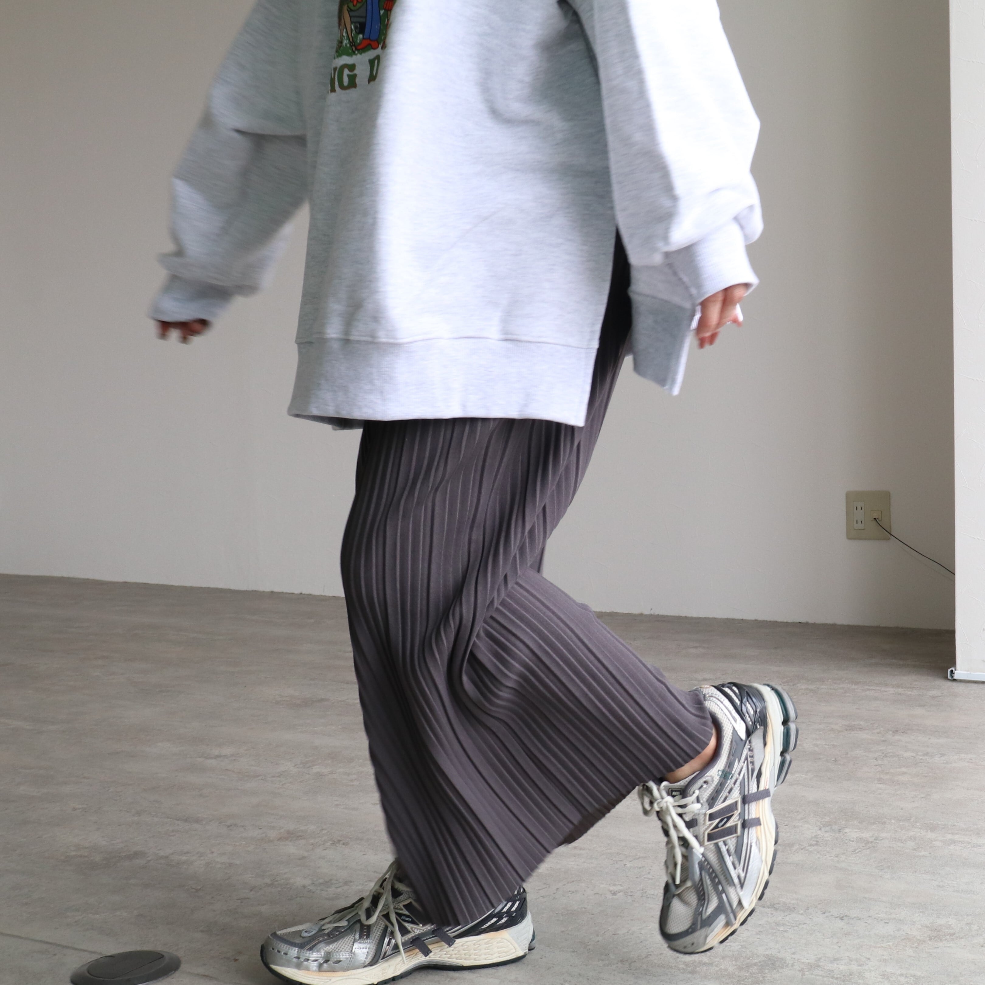 プリーツ加工がシルエットを拾わないので、美脚ラインの強い味方です。