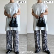 Mサイズ:ウエスト(ゴム仕様)64~110㎝/ヒップ88~120㎝/股上32㎝/股下66.5㎝//もも回り54~75㎝/裾回り51㎝