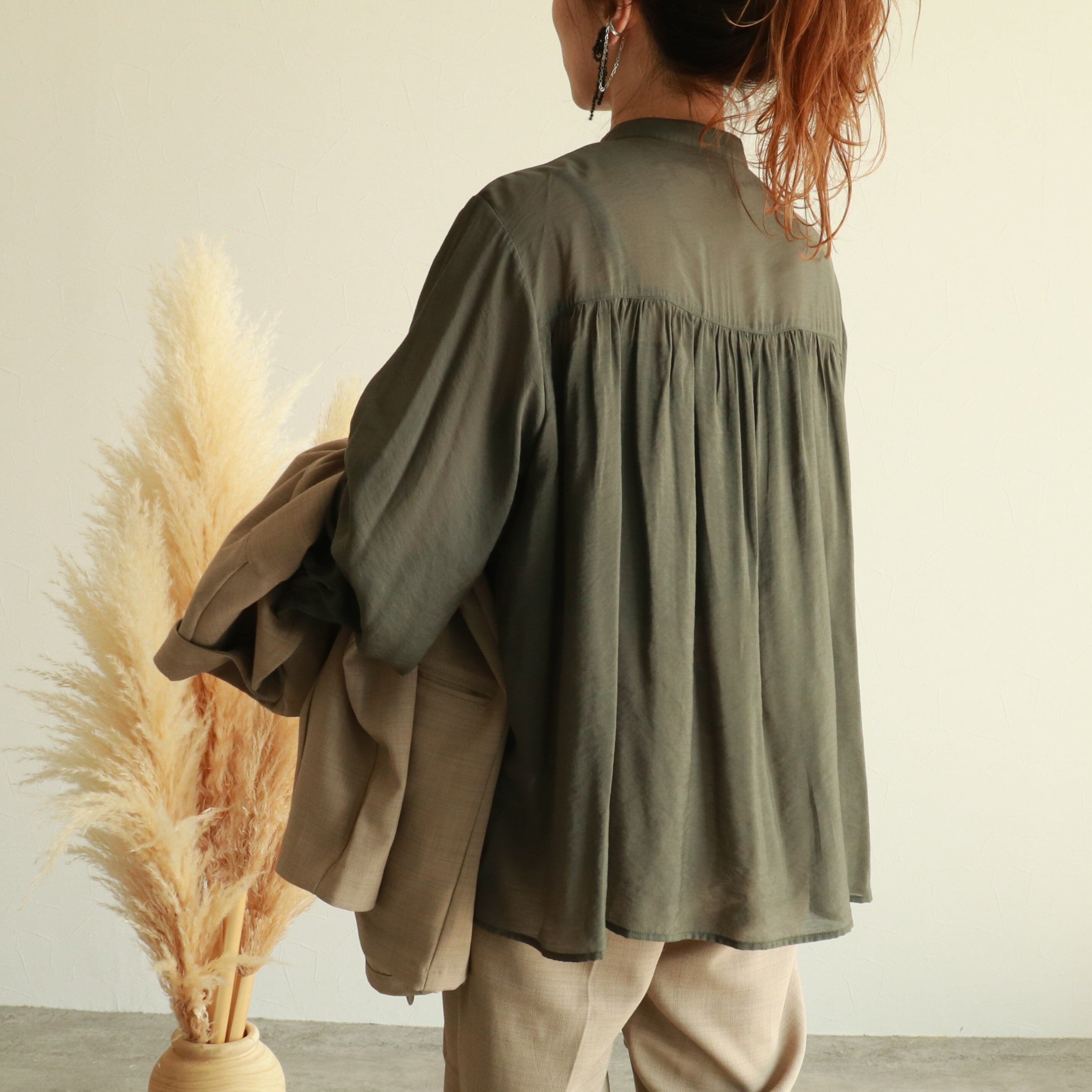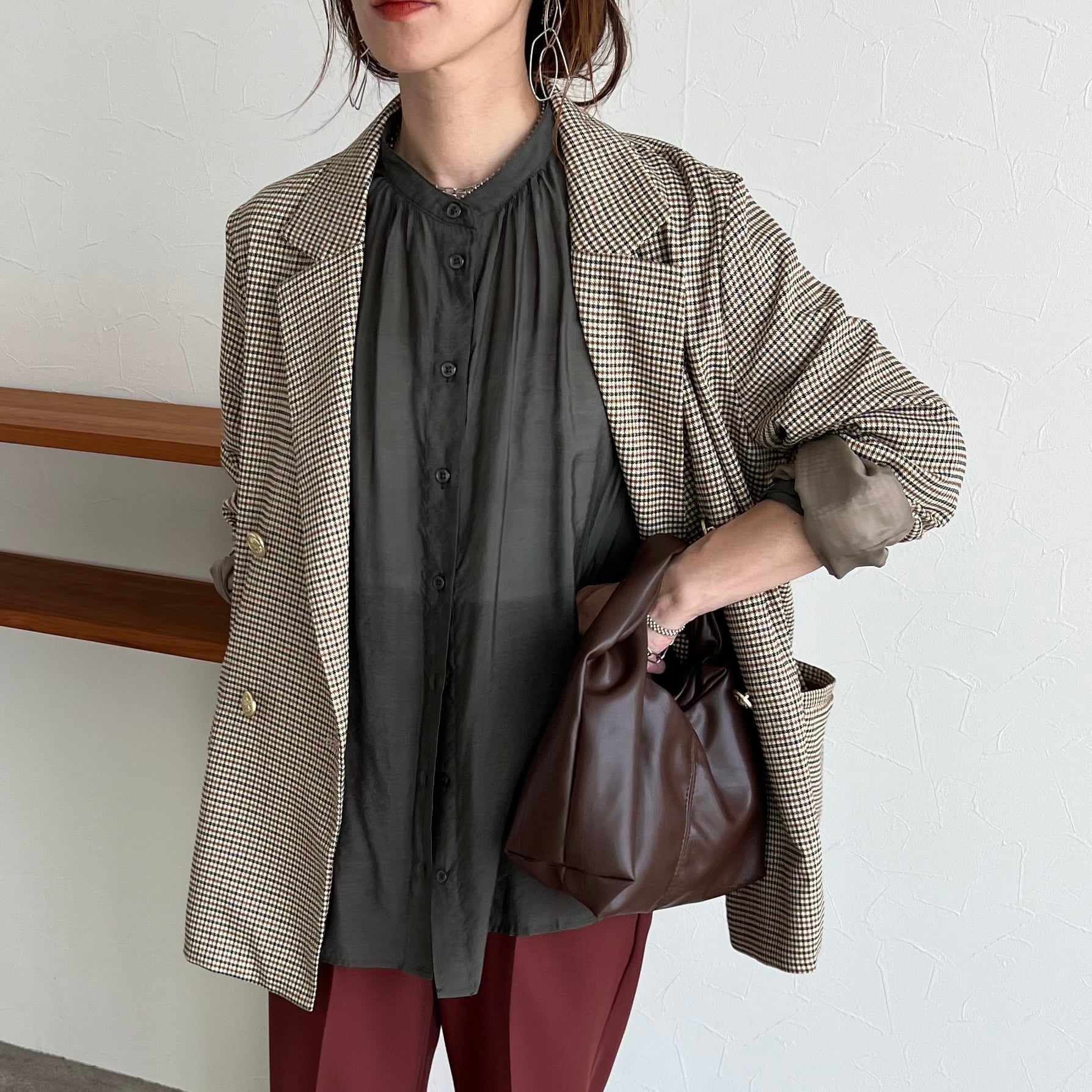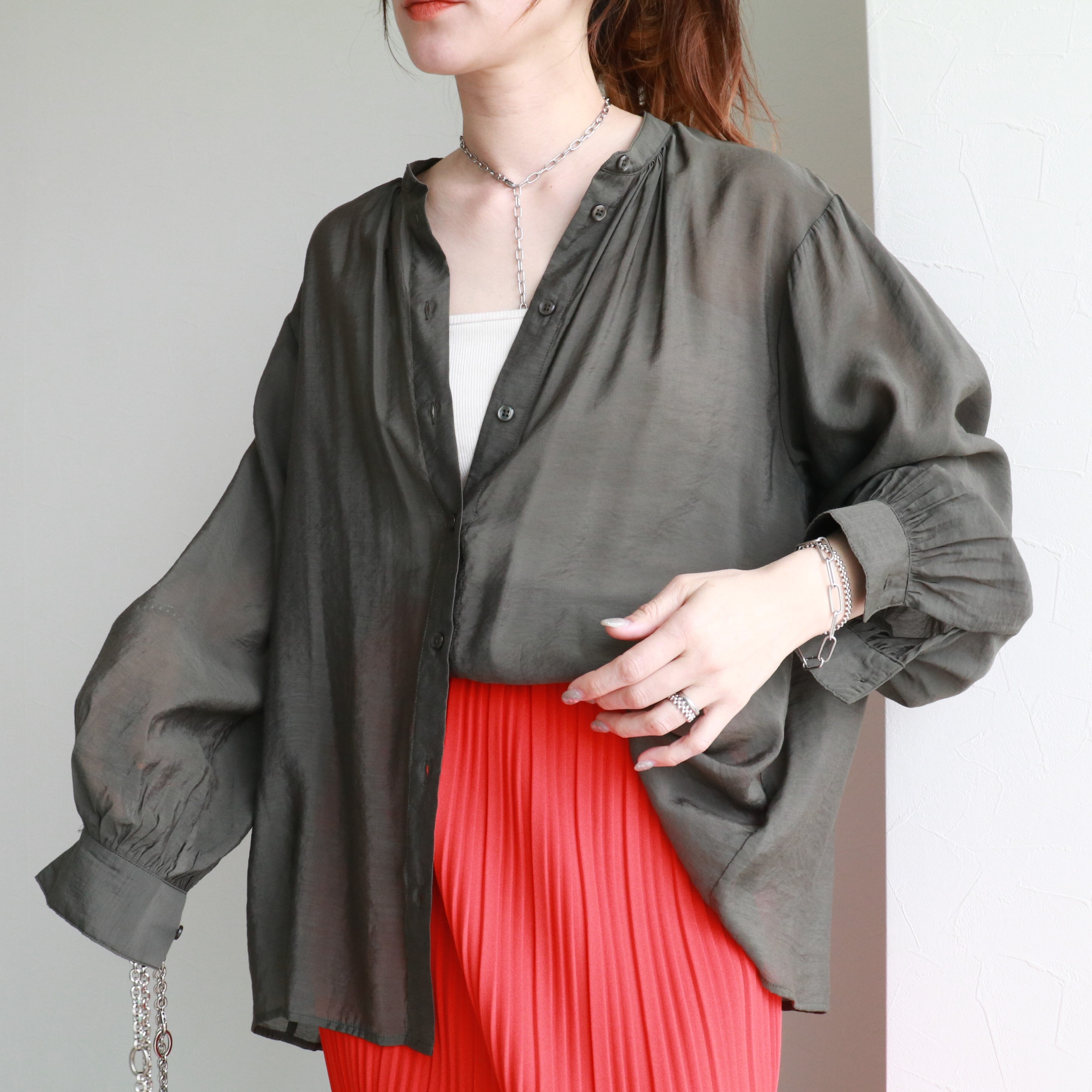 清潔感のある衿デザインなので、スラックスやローファーできれいめなスタイリングもおすすめ。程よいシアー生地がカジュアルな抜け感を演出します。