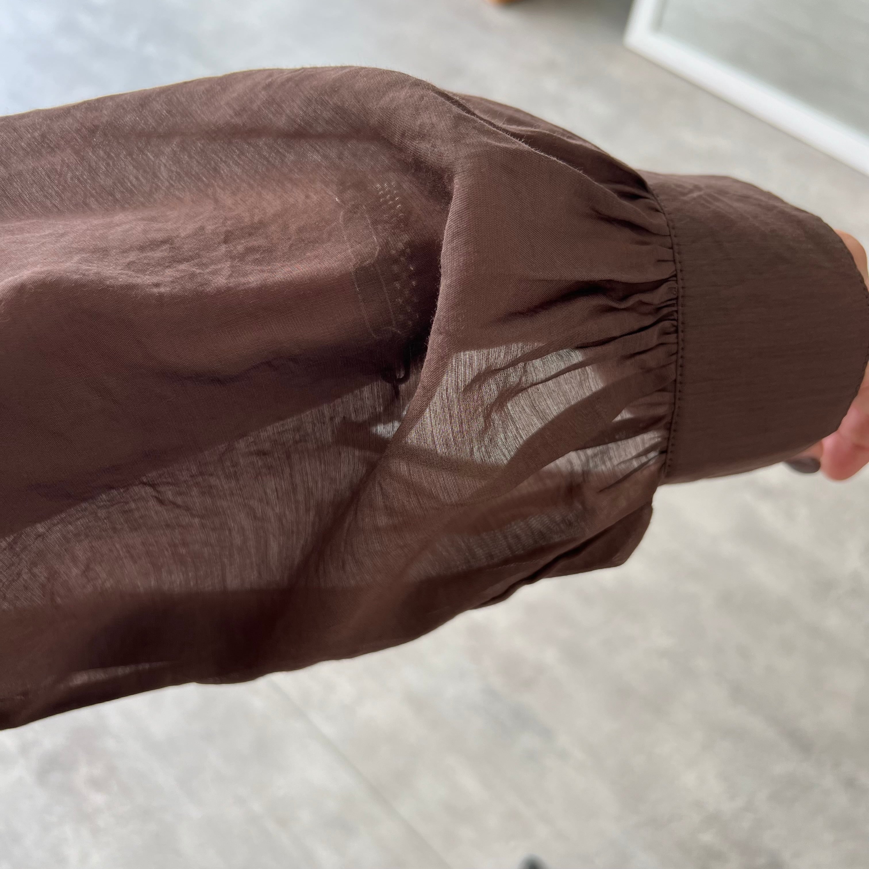 シースルー素材を使用したたっぷりのボリューム感と程よいシアー感で、シーズンムードの高い着こなしが楽しめる1枚。