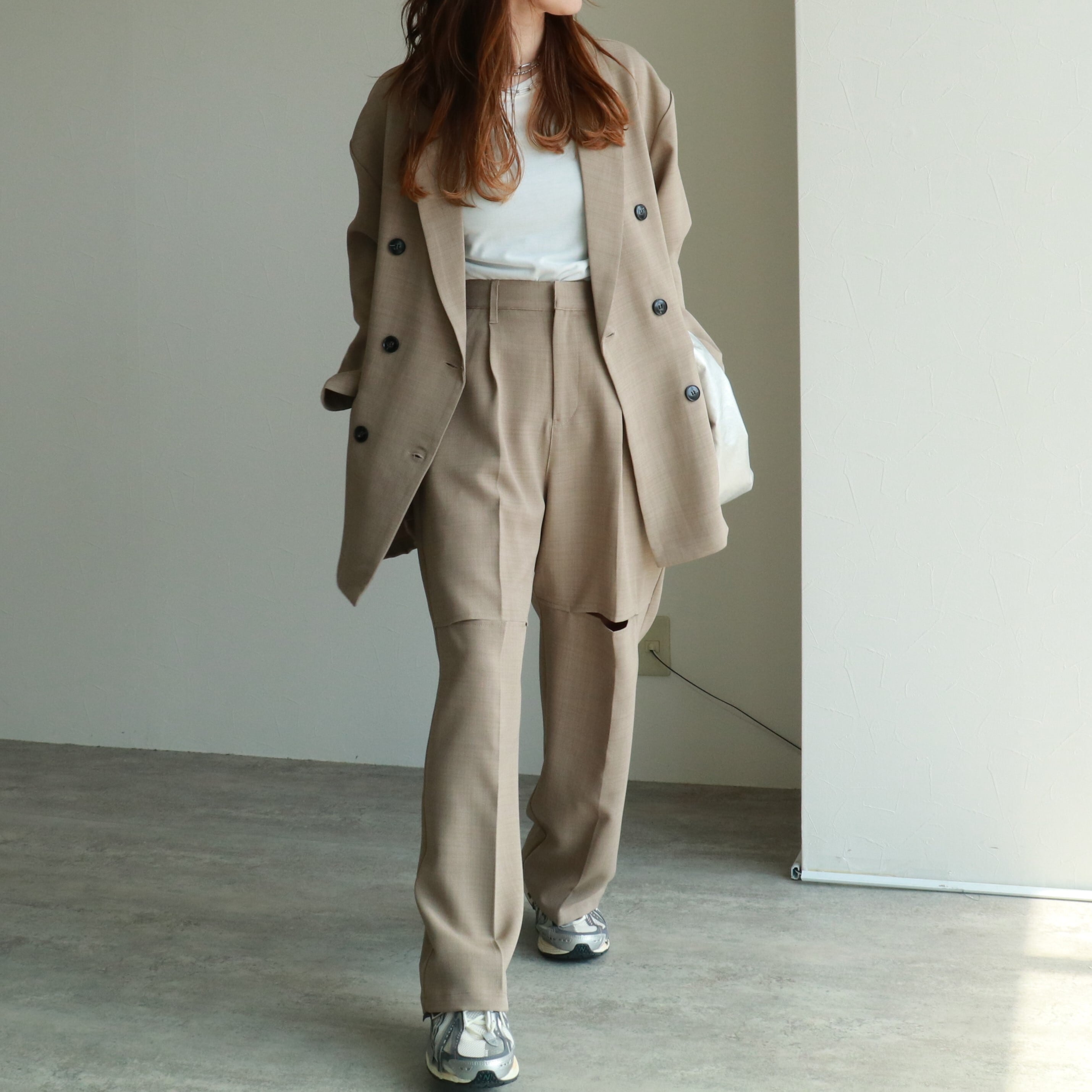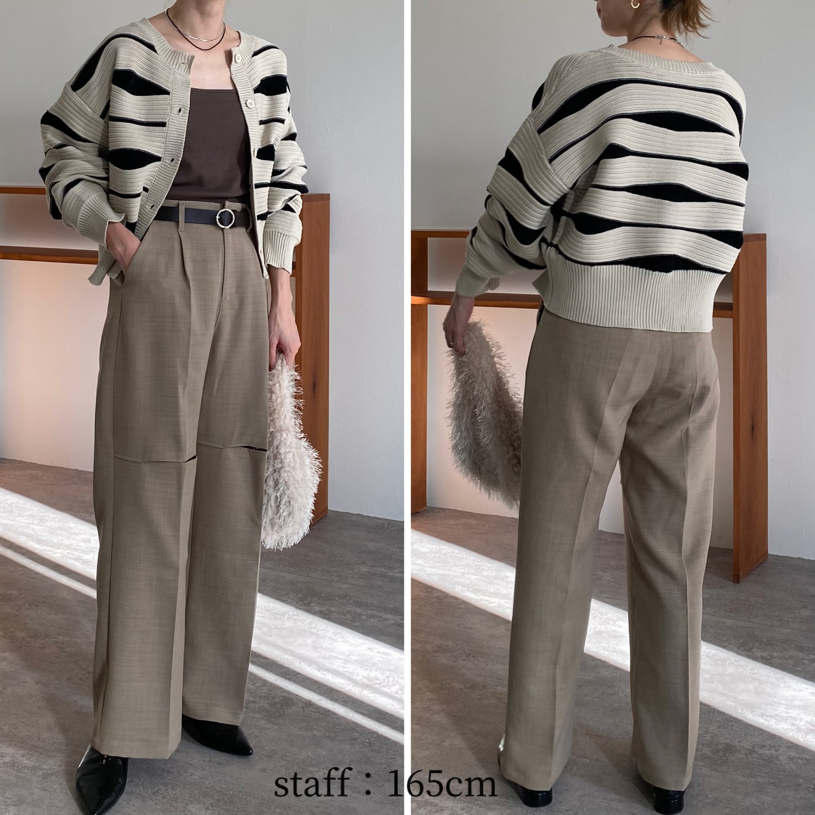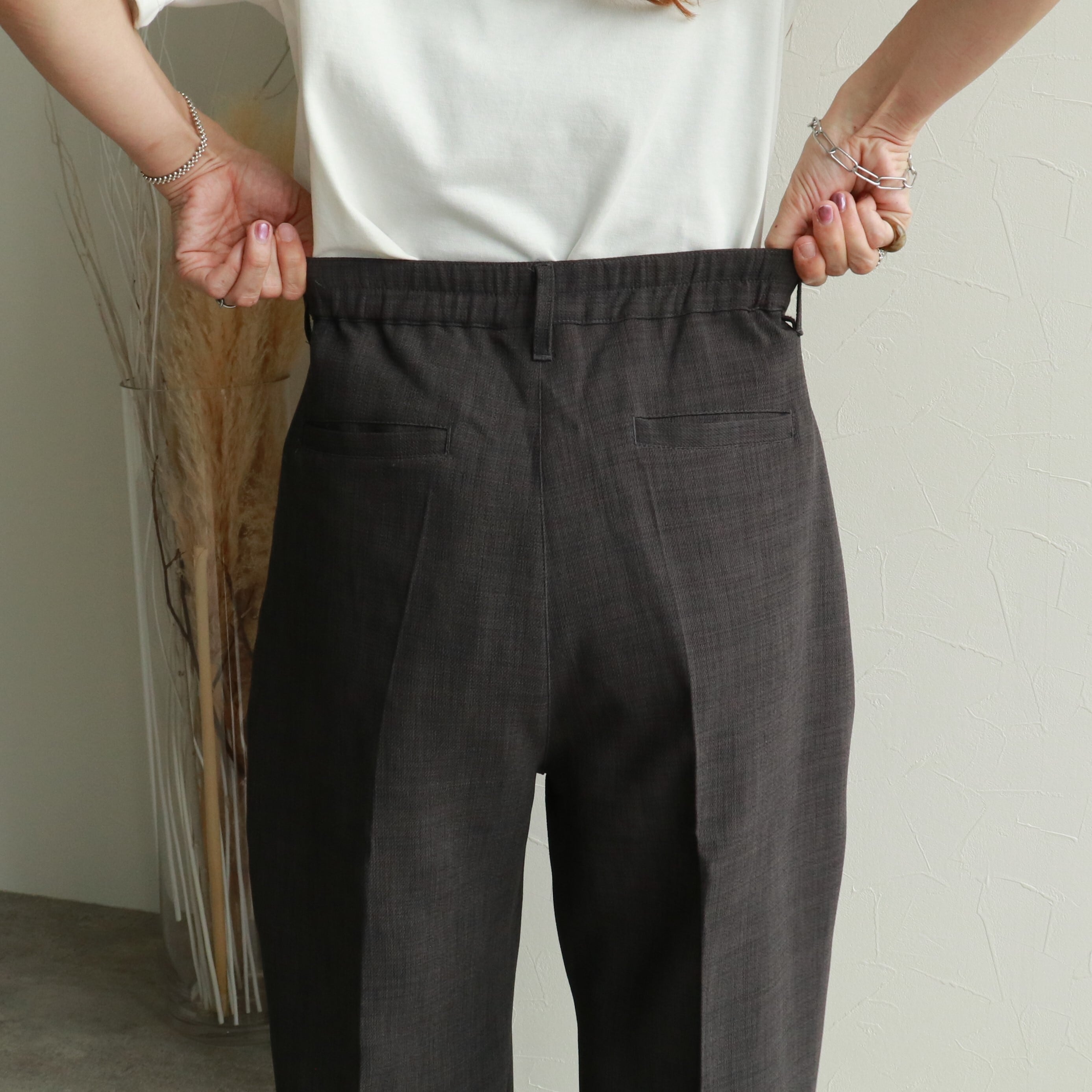 センタープレスとタック入りできちんと感があり、杢調の生地が上品でこなれた一本です。