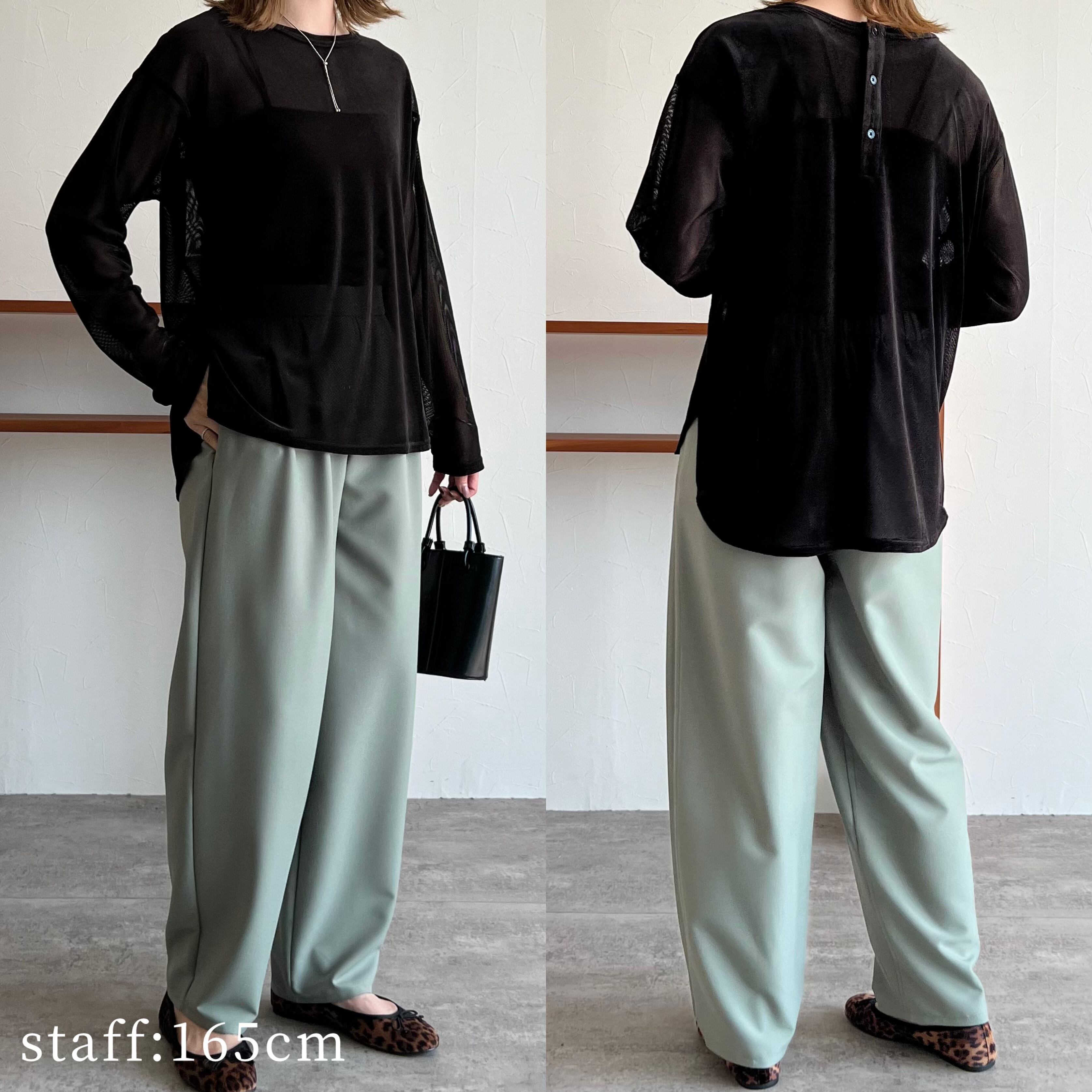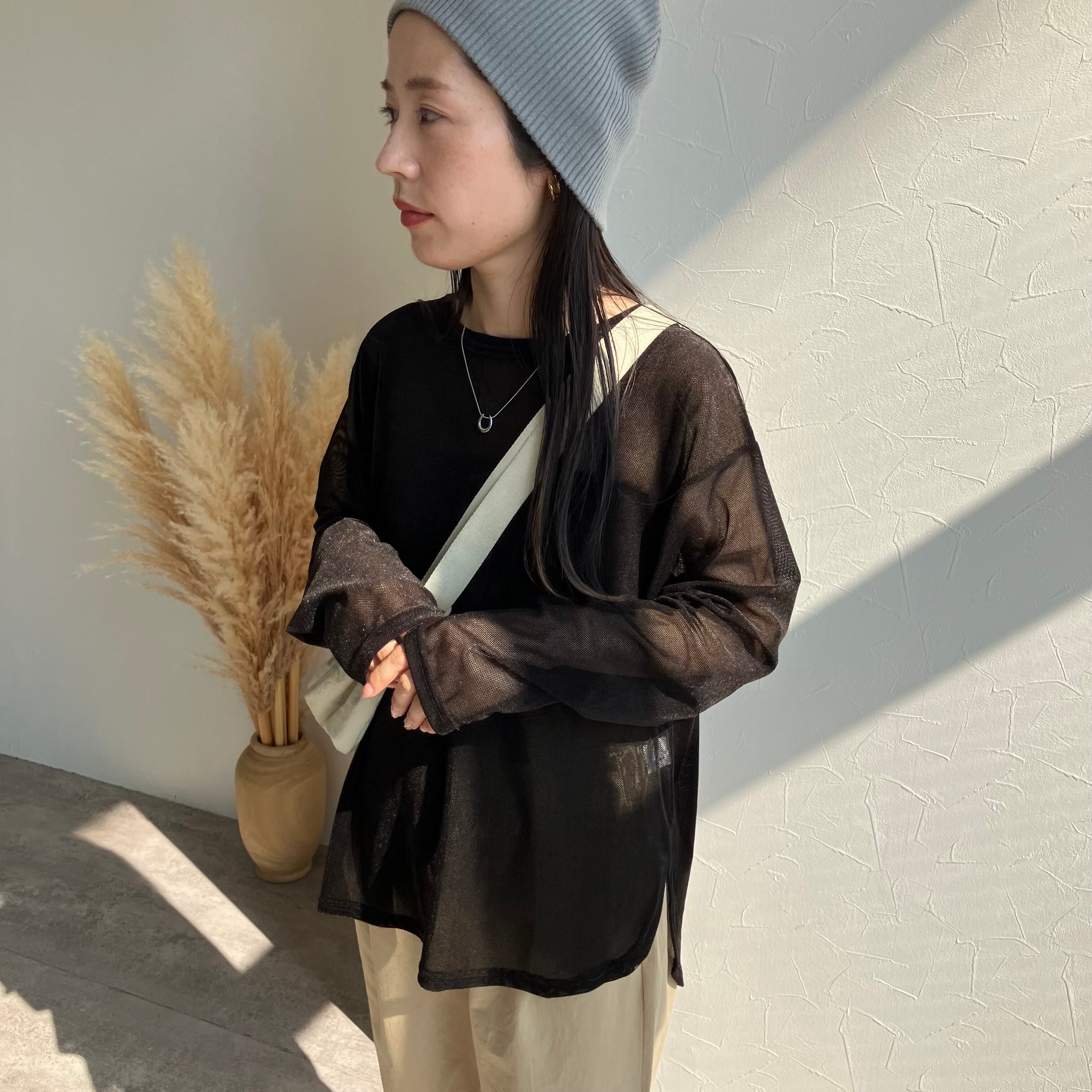 インナーとしてはもちろん、トップス1枚でも着られるので今季らしいスタイリングが楽しめます。