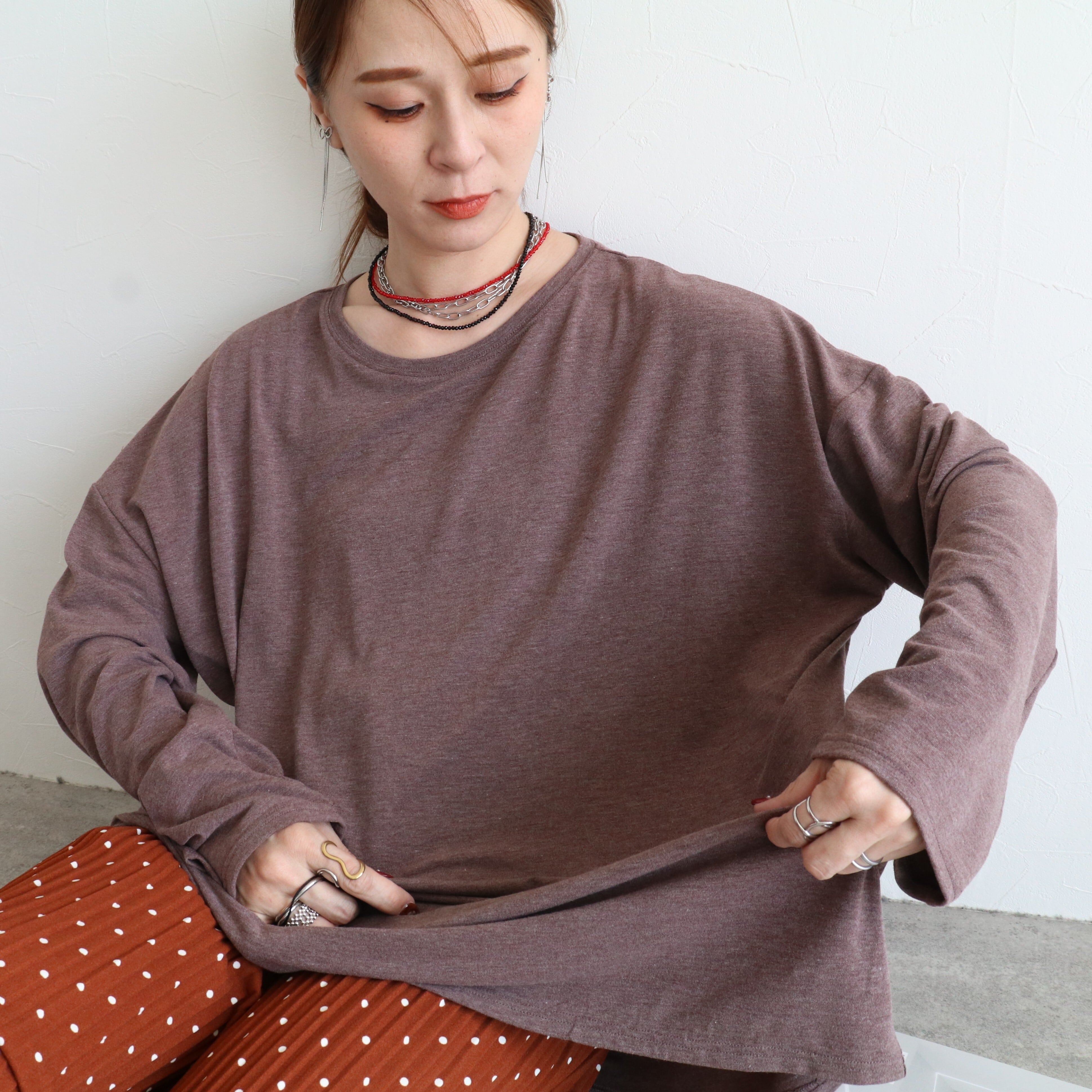 BIGシルエットのとろみTシャツ。