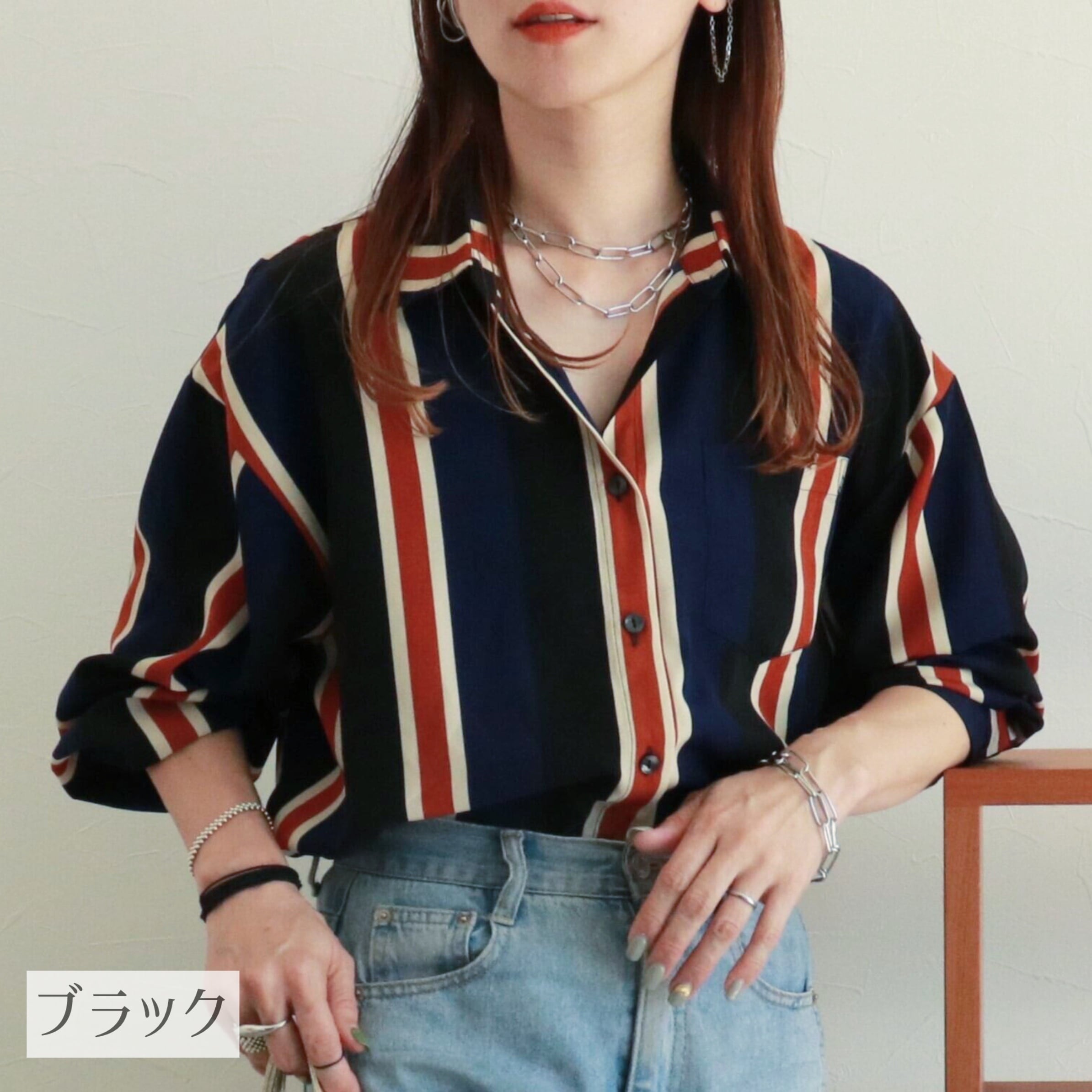 特徴的なストライプ柄なのでベーシックなアイテムと相性が良く、ボトムスとのワンツーコーデでこなれ感のあるコーデが完成します★