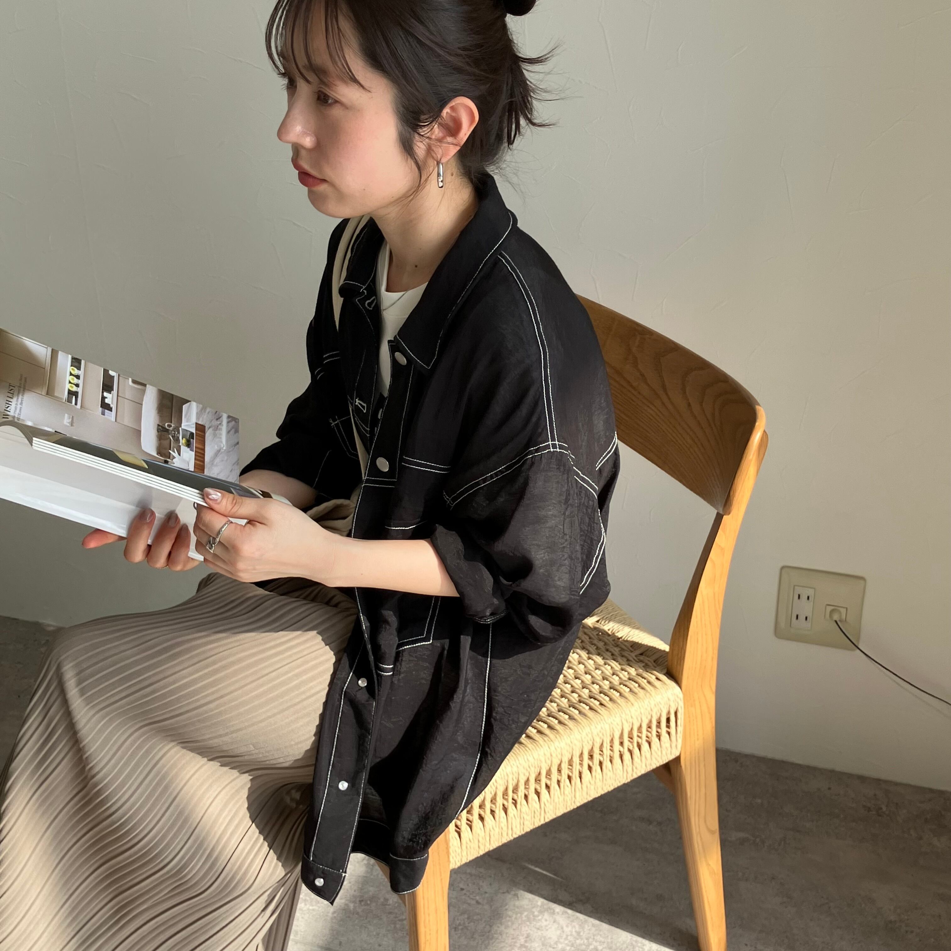 ふわっと軽い着心地で、動くたびに揺れるニュアンスがナチュラルで抜け感のある1枚です。