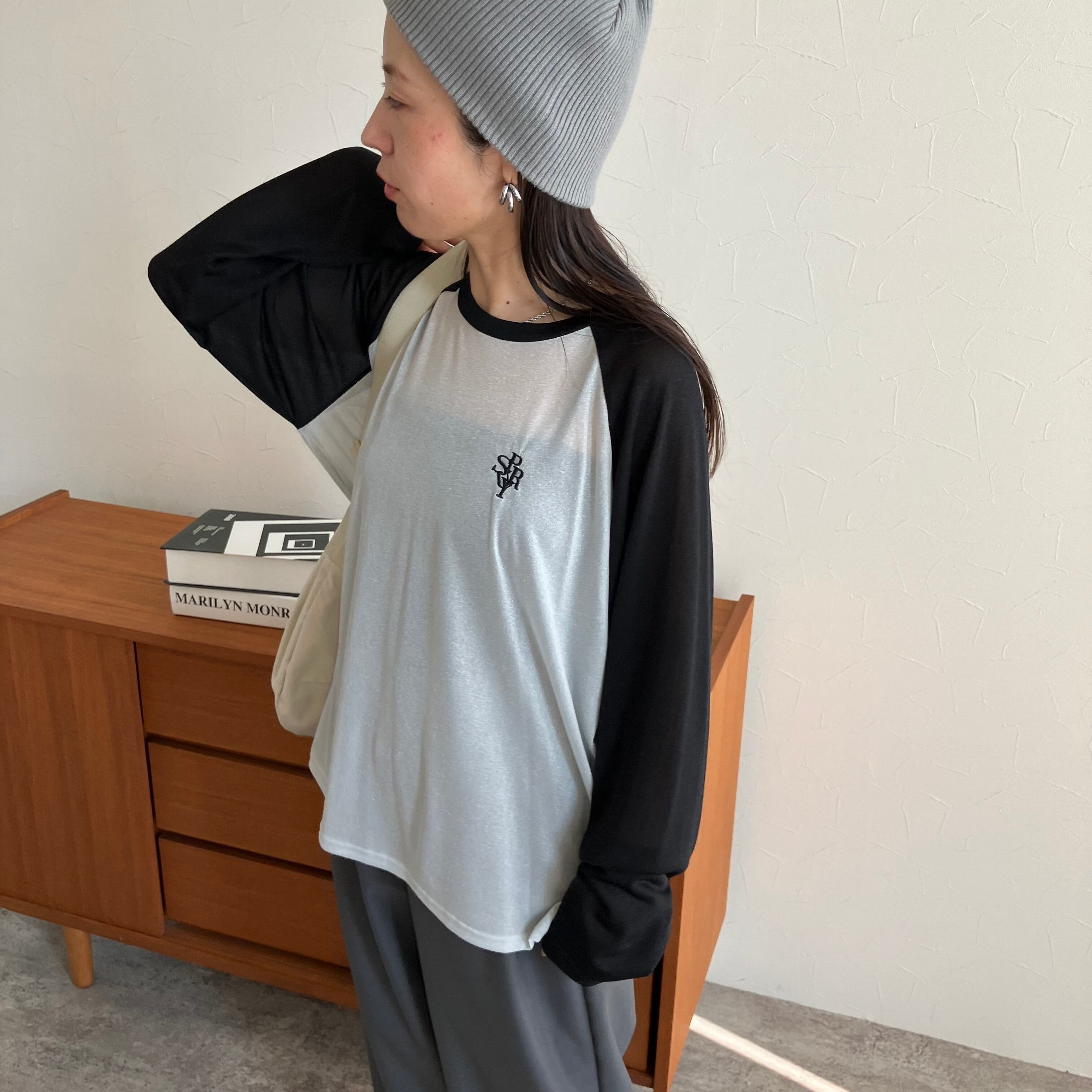 季節の変わり目に活躍するシアーラグランTシャツ。