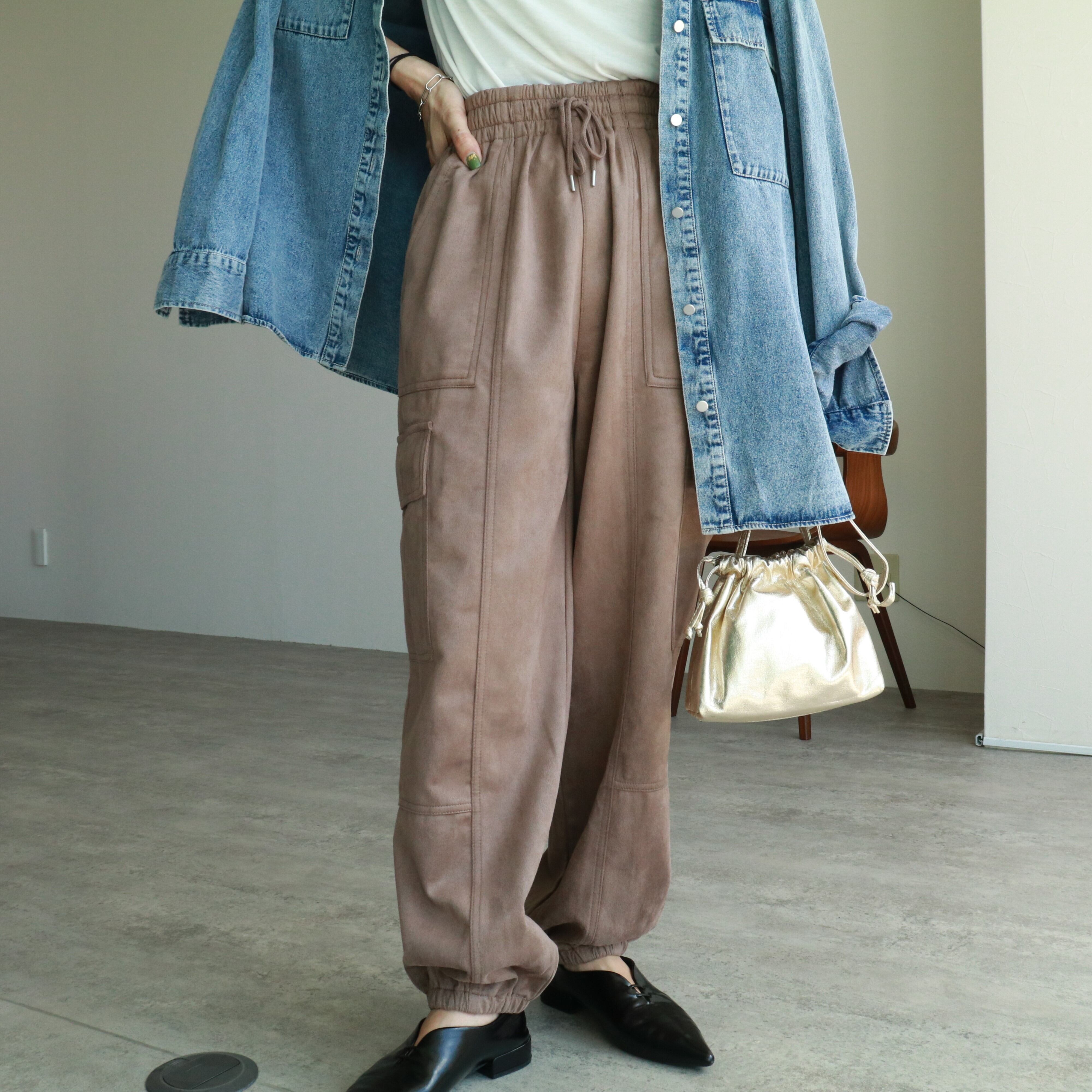 上品見えするフェイクスエードを使用したカーゴパンツが登場★