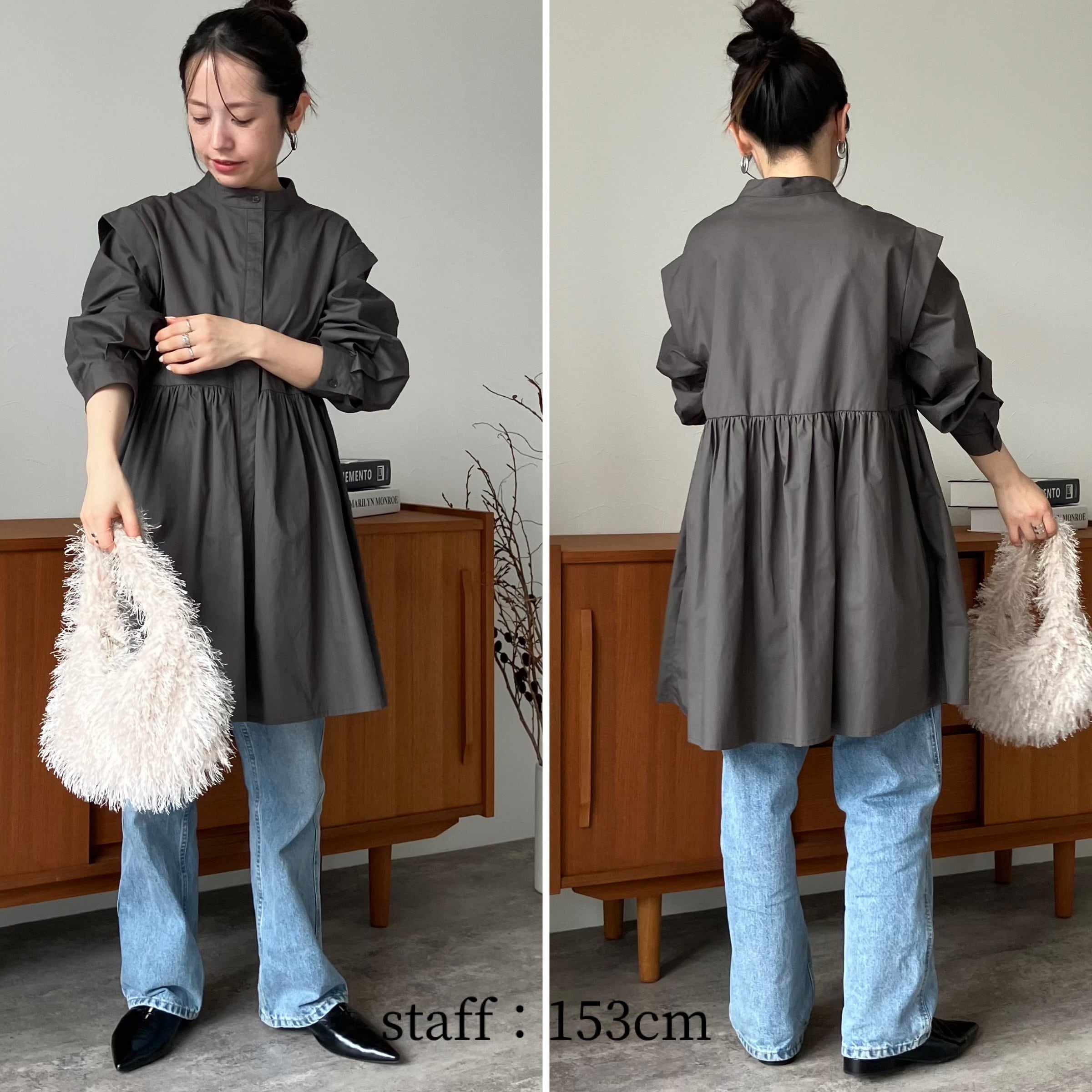 存在感のあるデザインのチュニック丈なので、体型を気にせず着用いただけます。