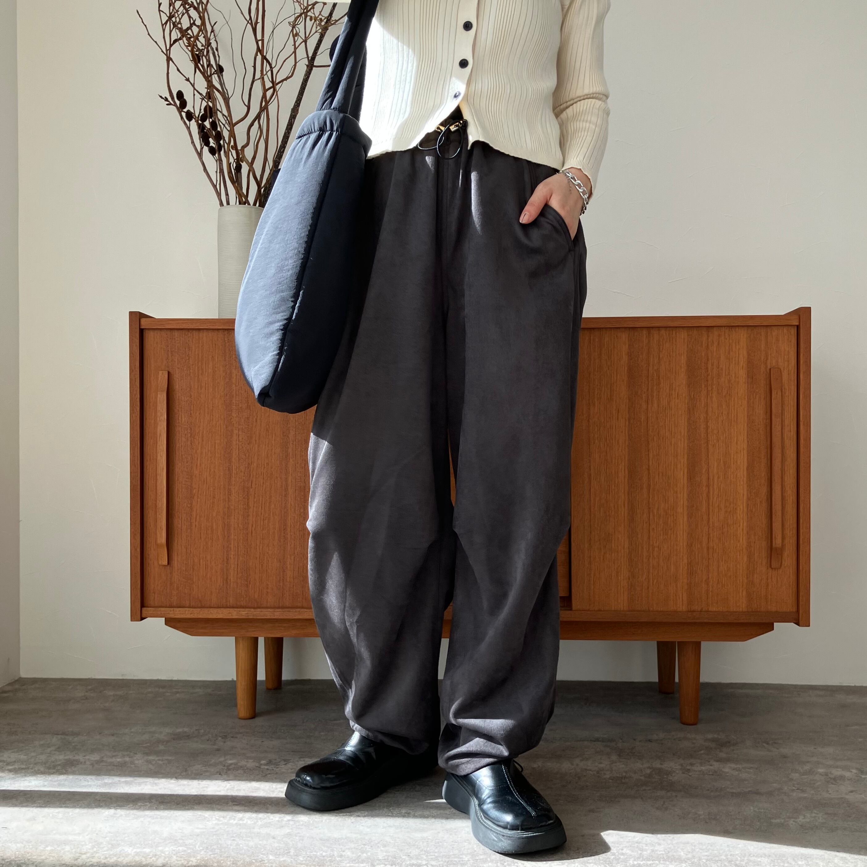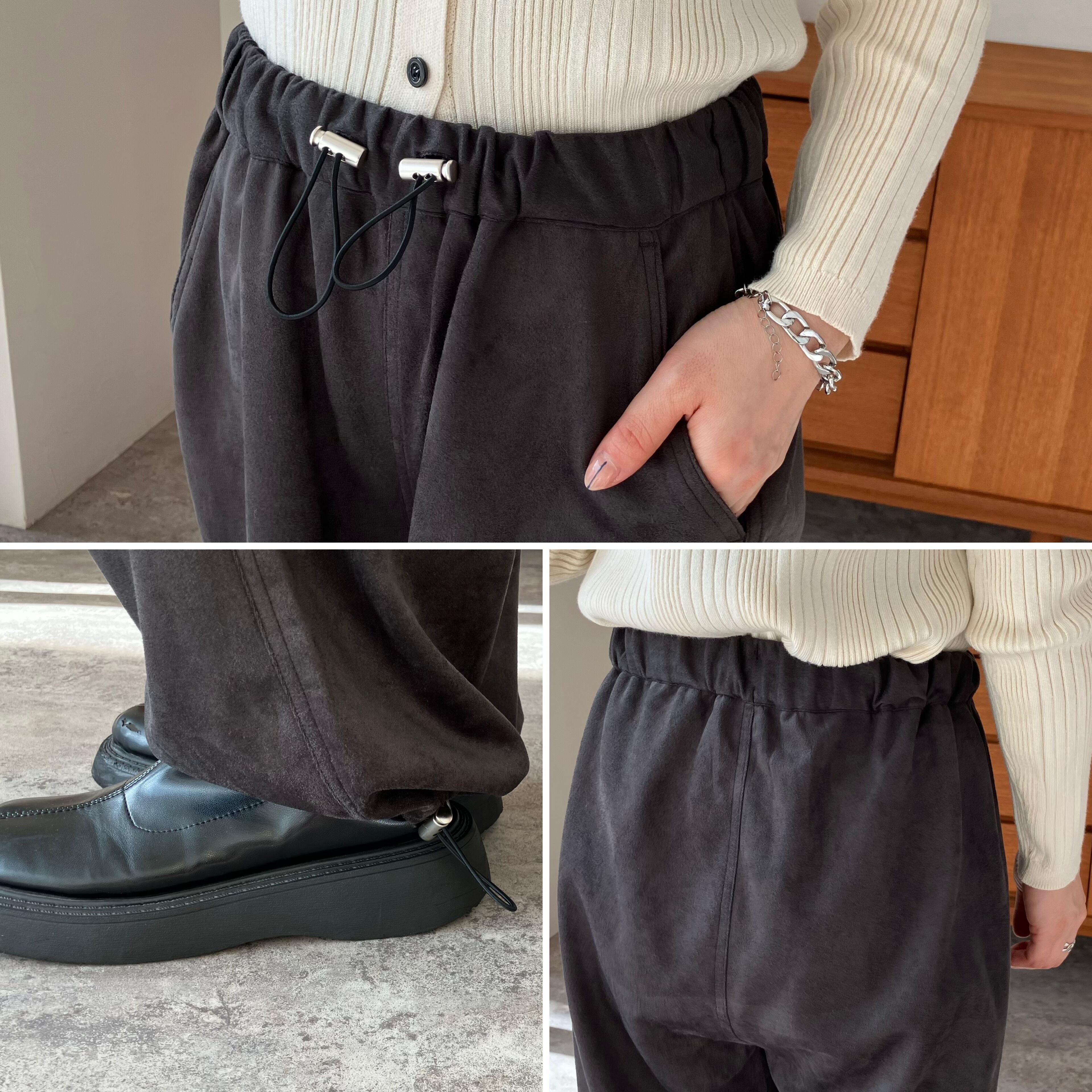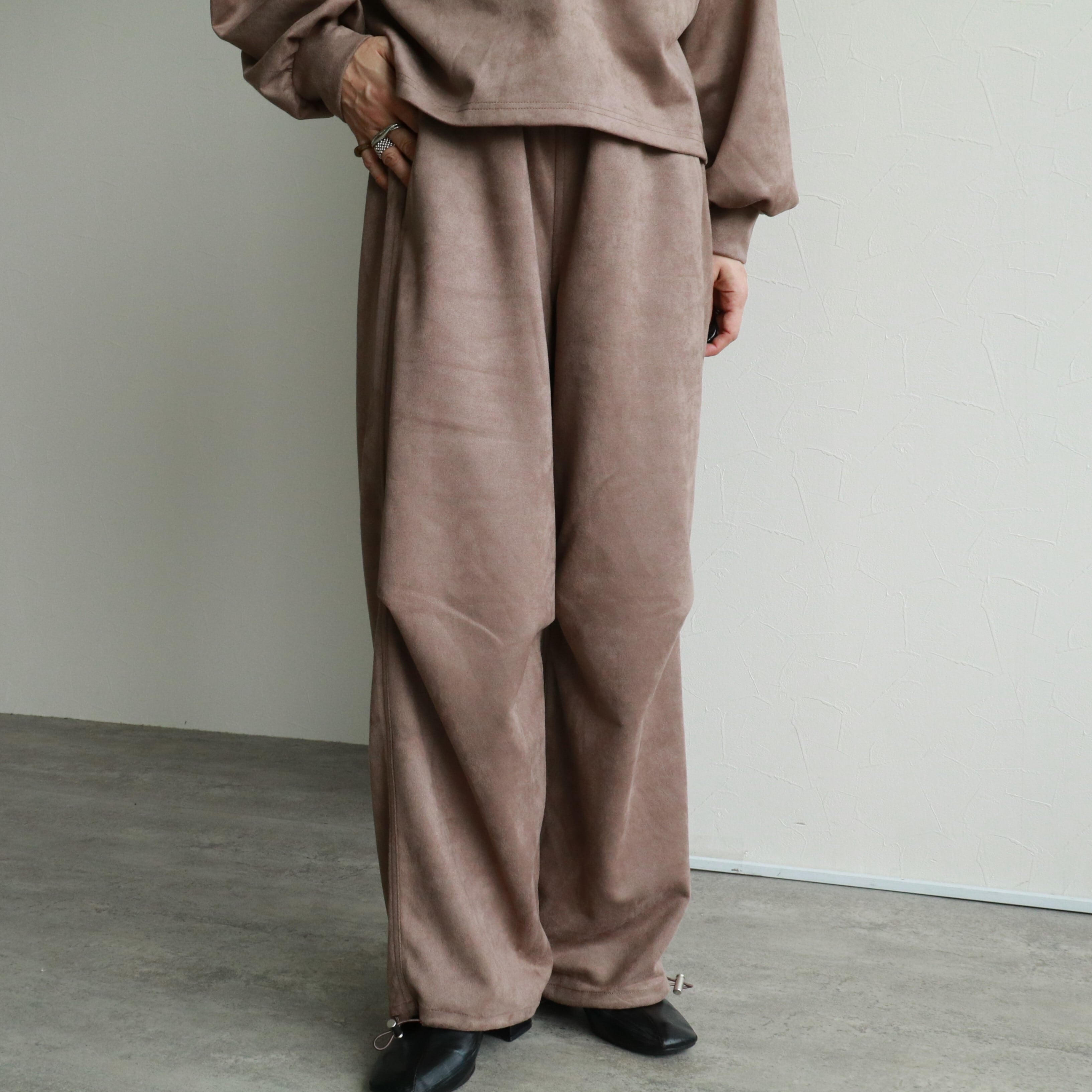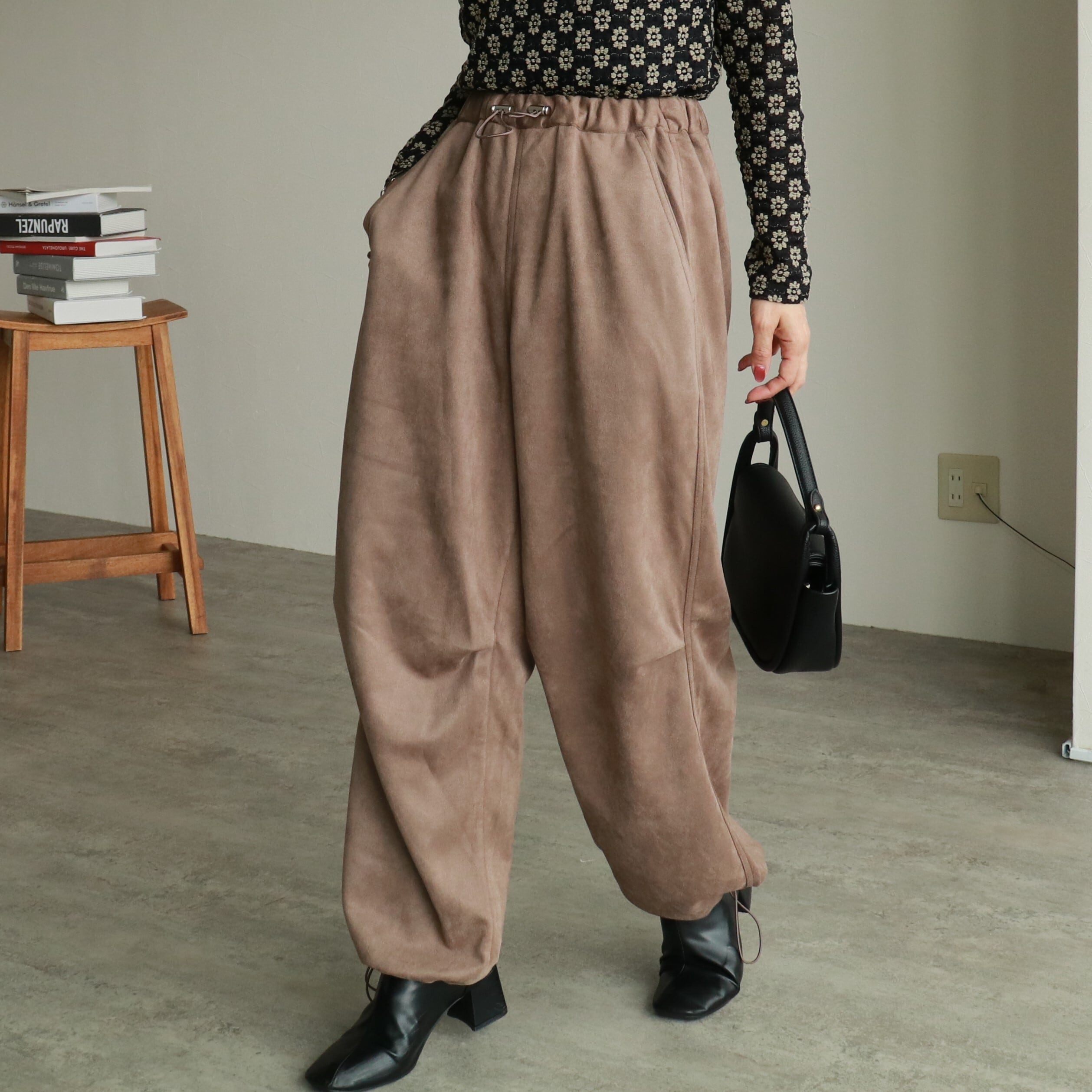 シンプルなデザインで素材感が大人っぽいスェードポンチイージーパンツ。