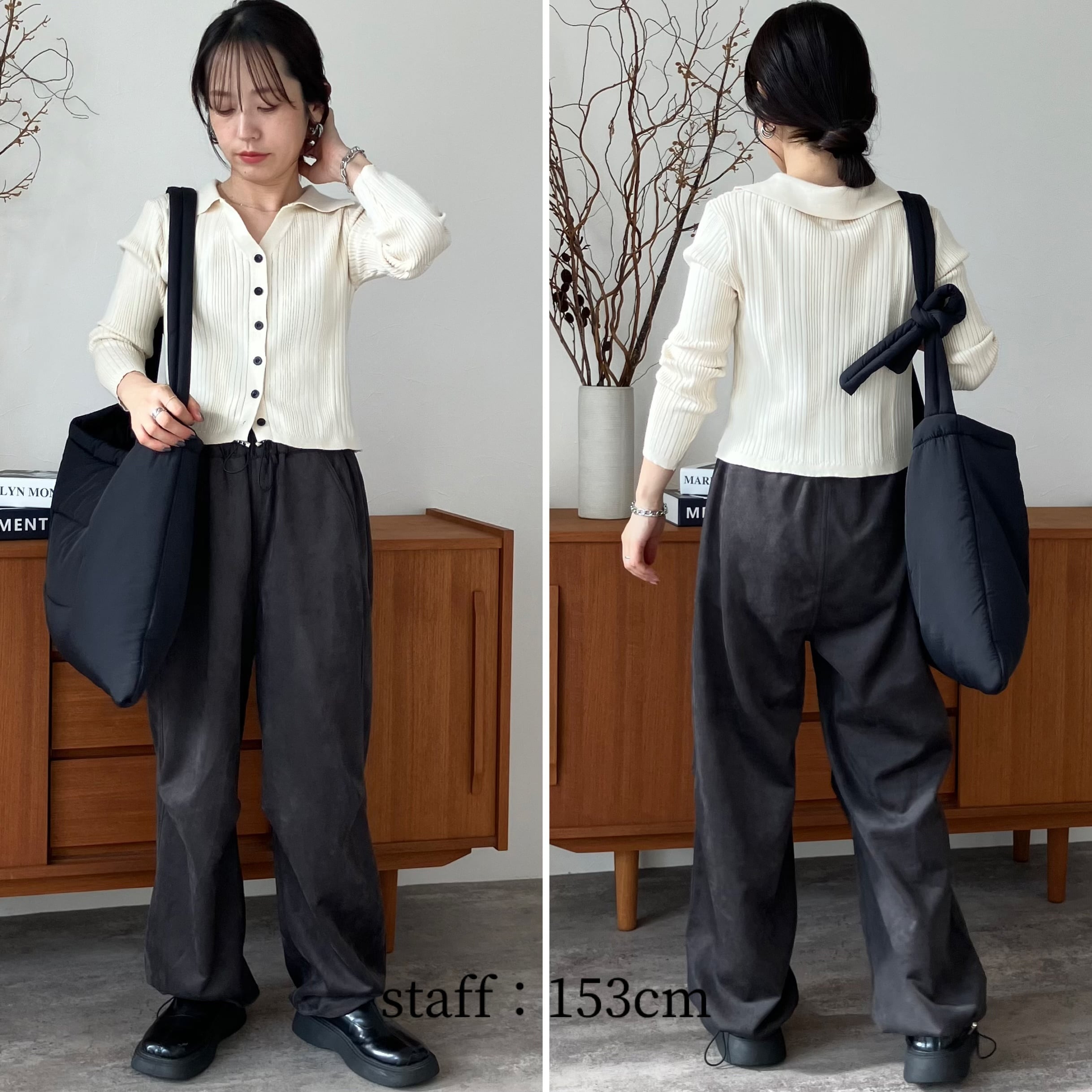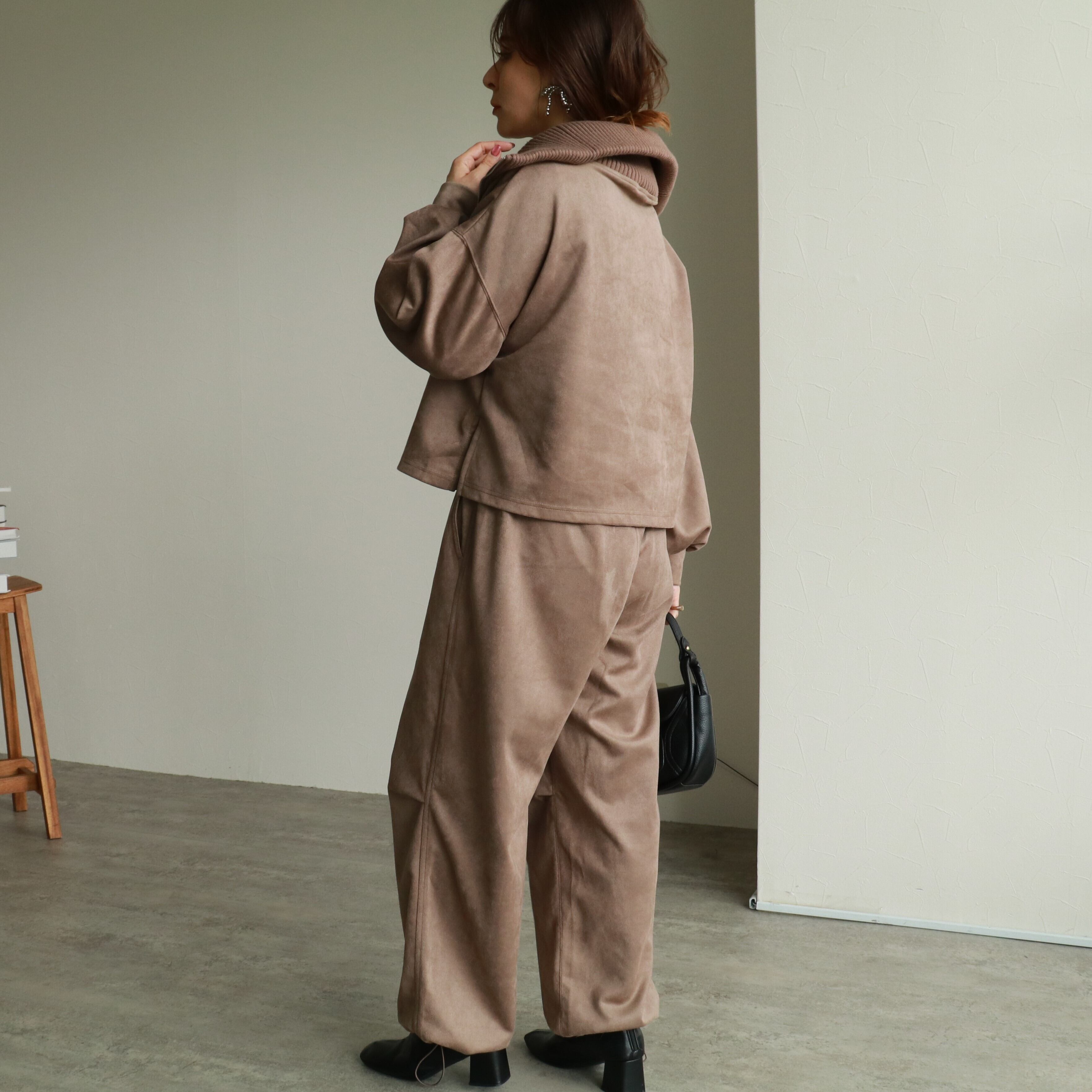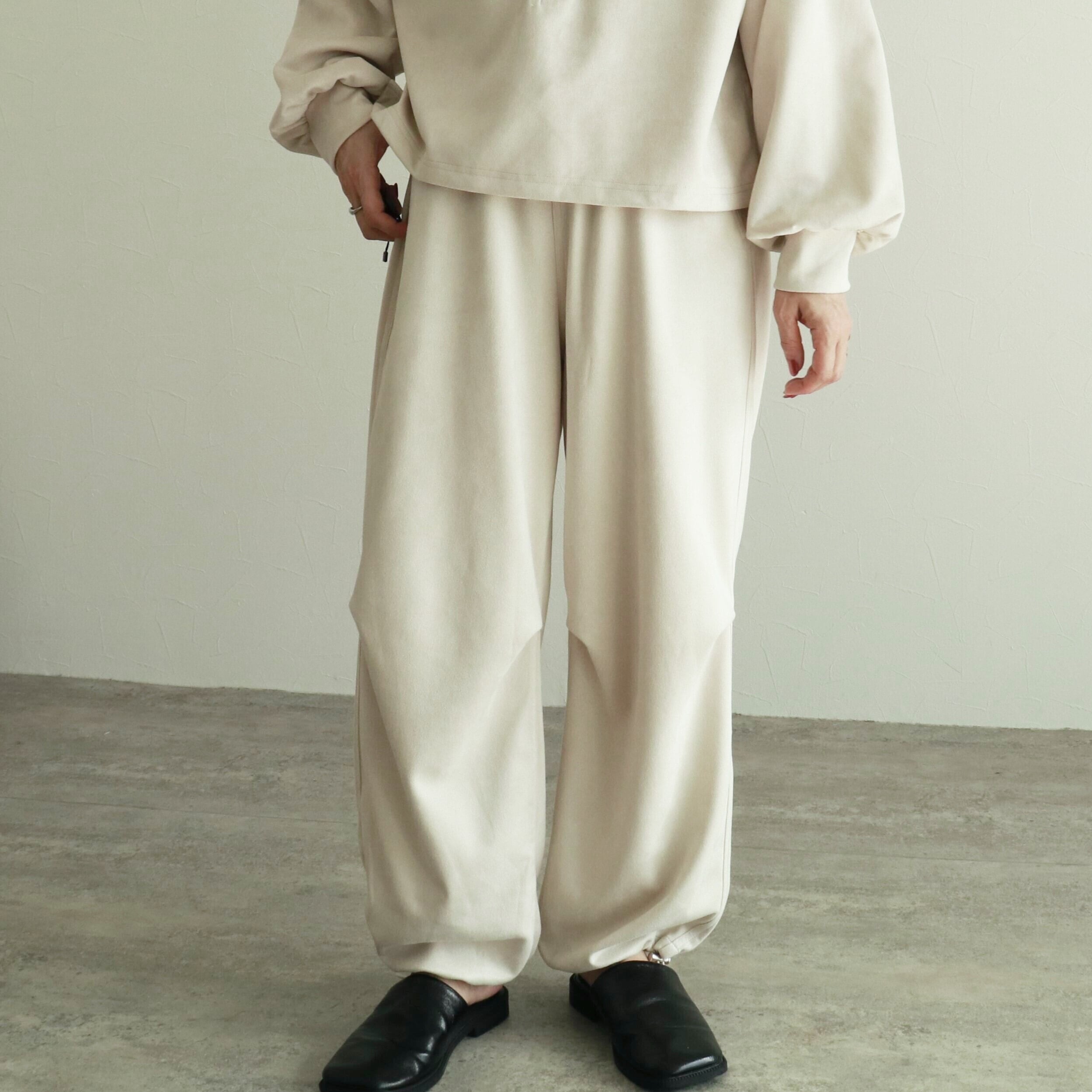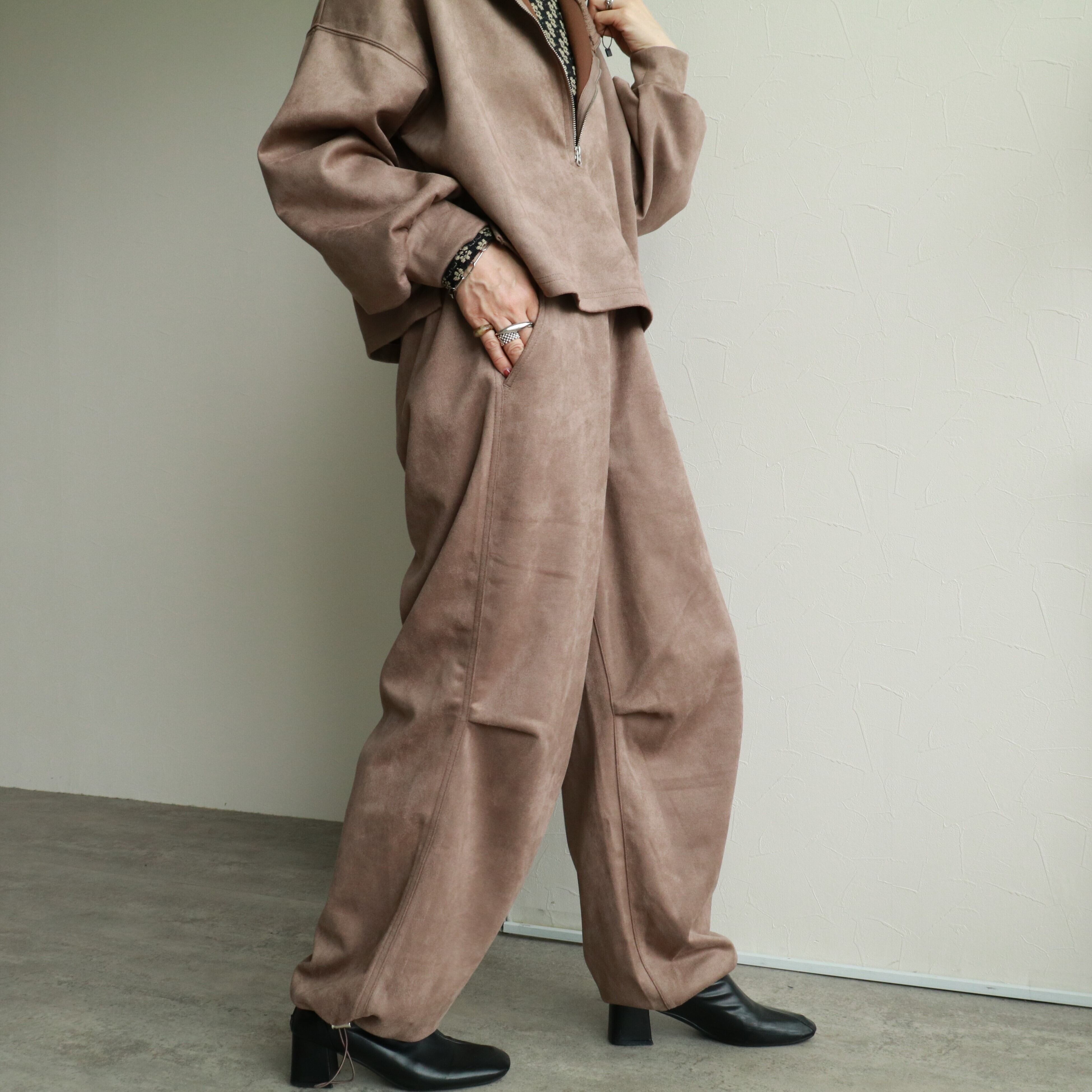 シンプルなデザインで素材感が大人っぽいスェードポンチイージーパンツ。
