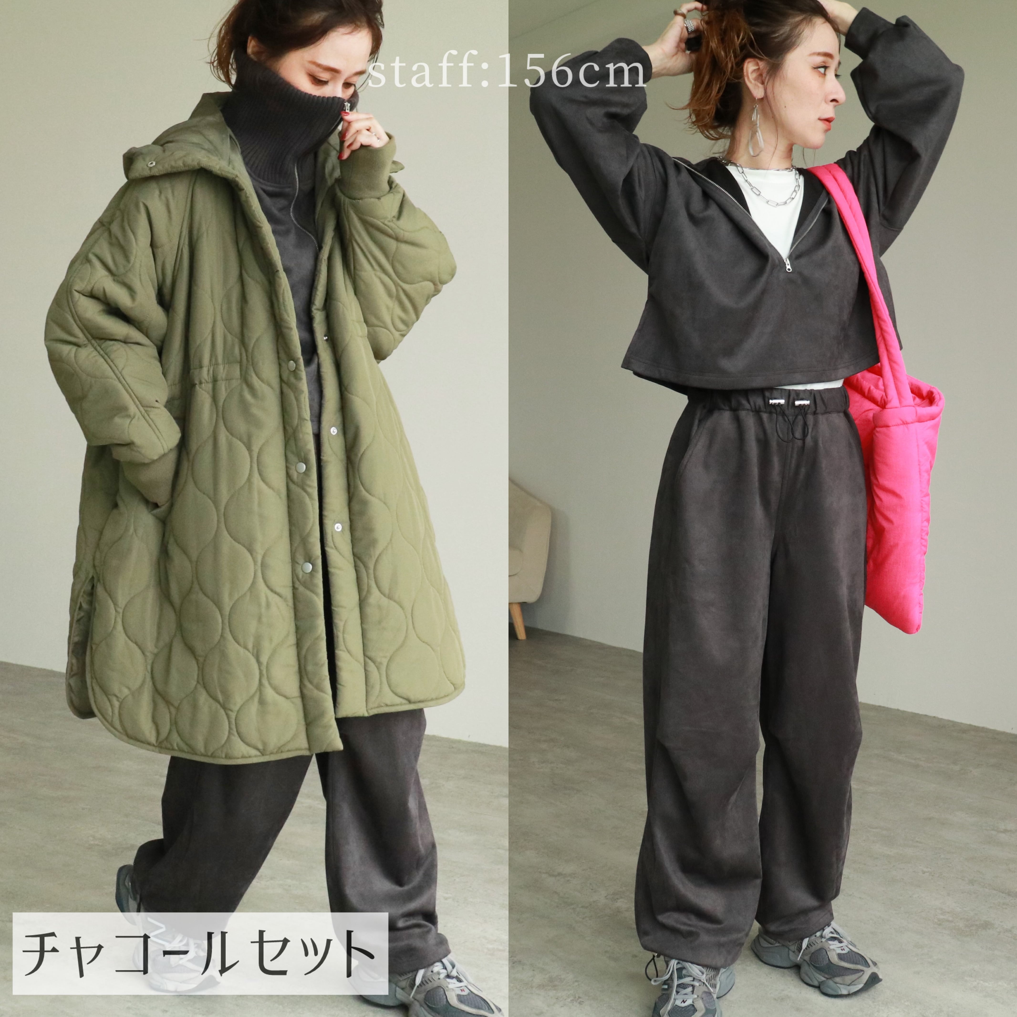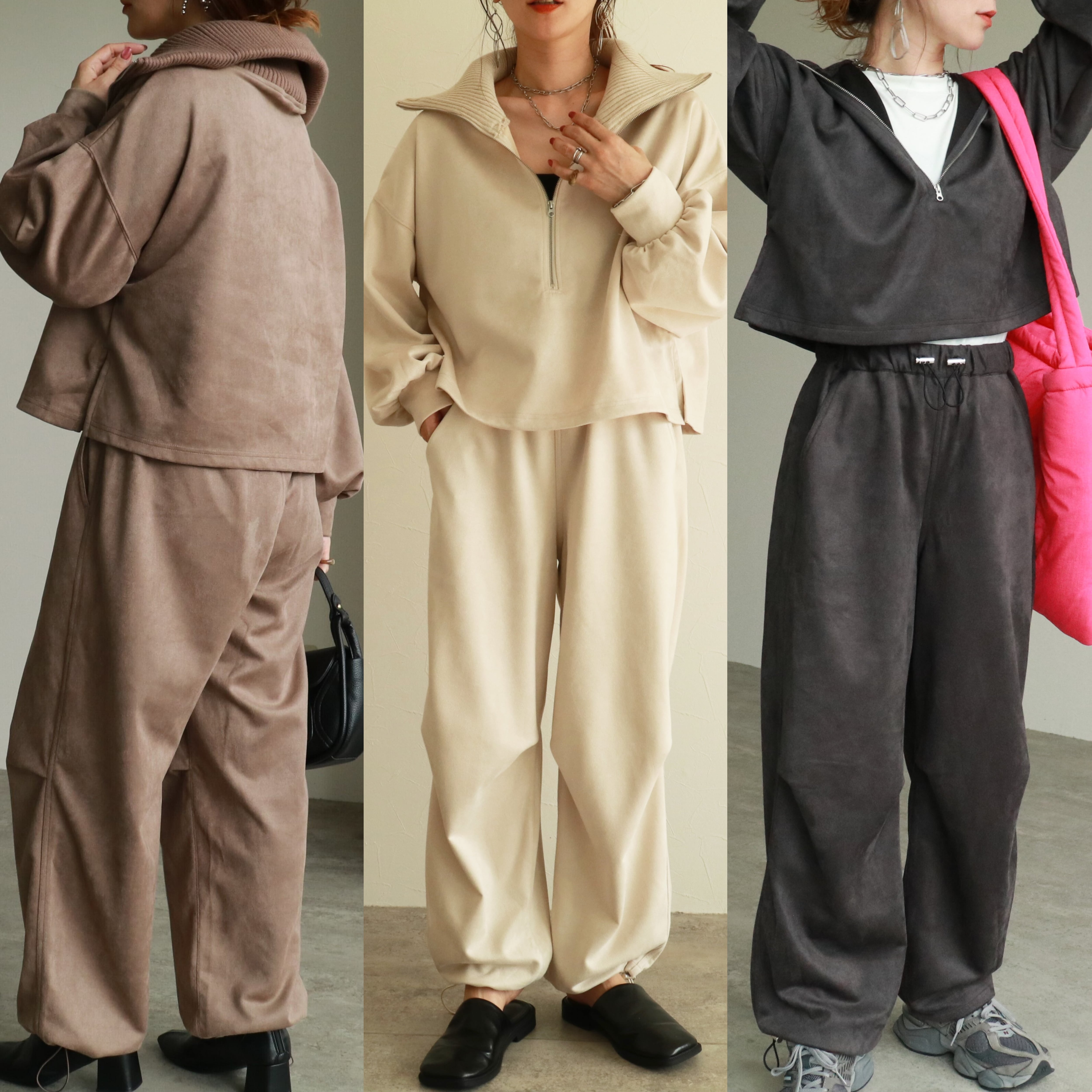 シーズンムード漂うフェイクスエードのお洒落なセットアップが登場。