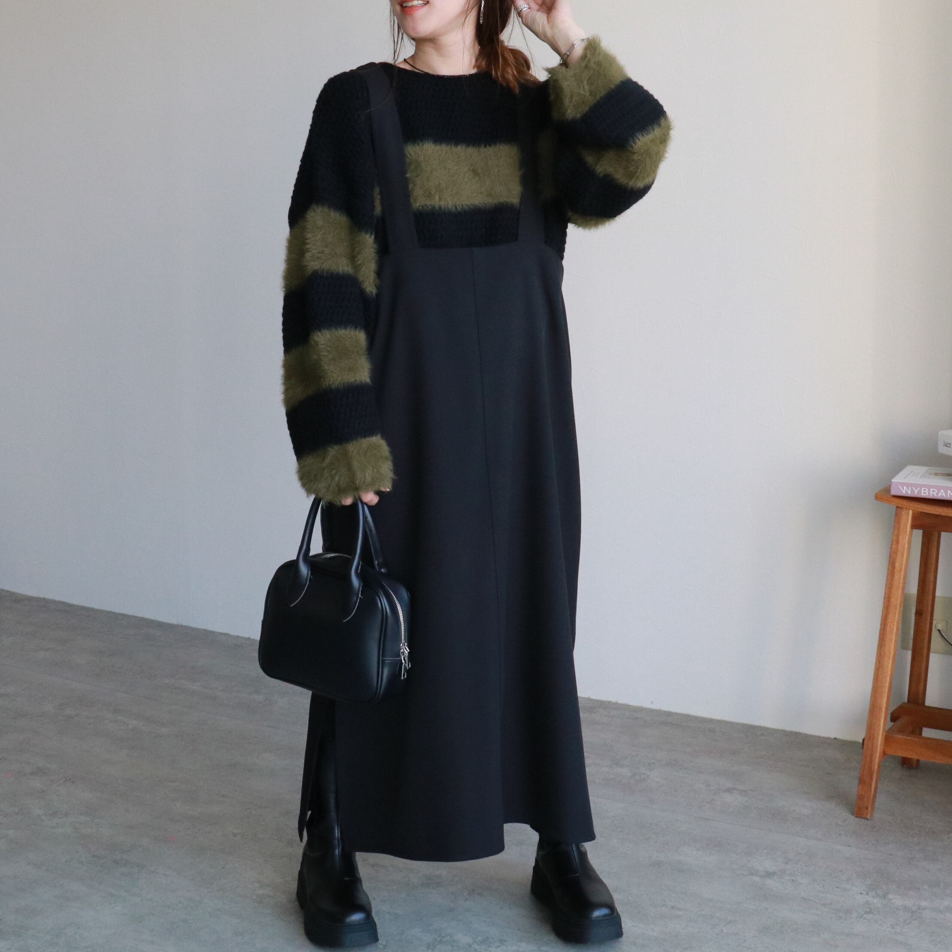 □カーキ×ブラック