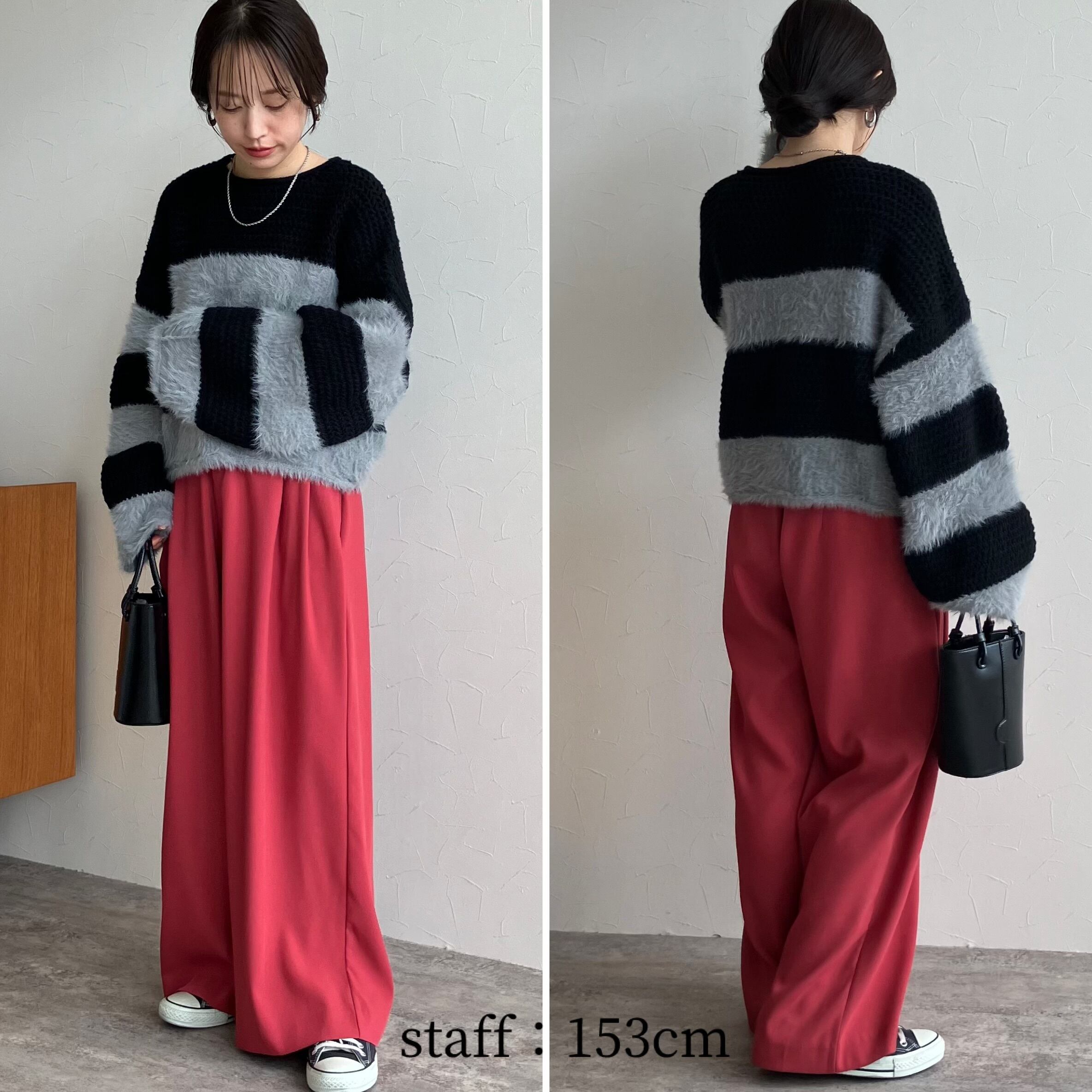 着丈が短く、ゆったりしたシルエットで太目のボーダー柄がトレンドライクなアイテム!
