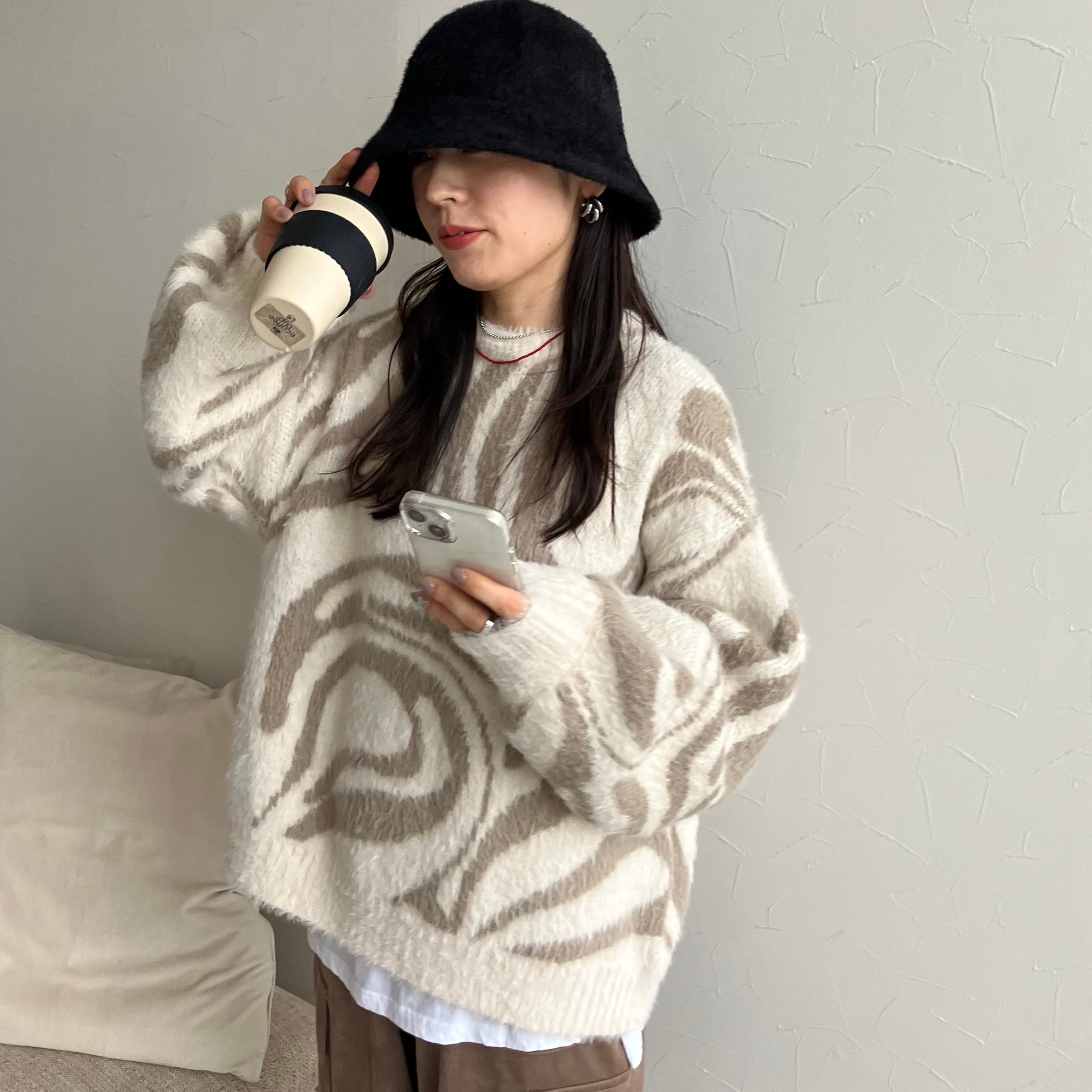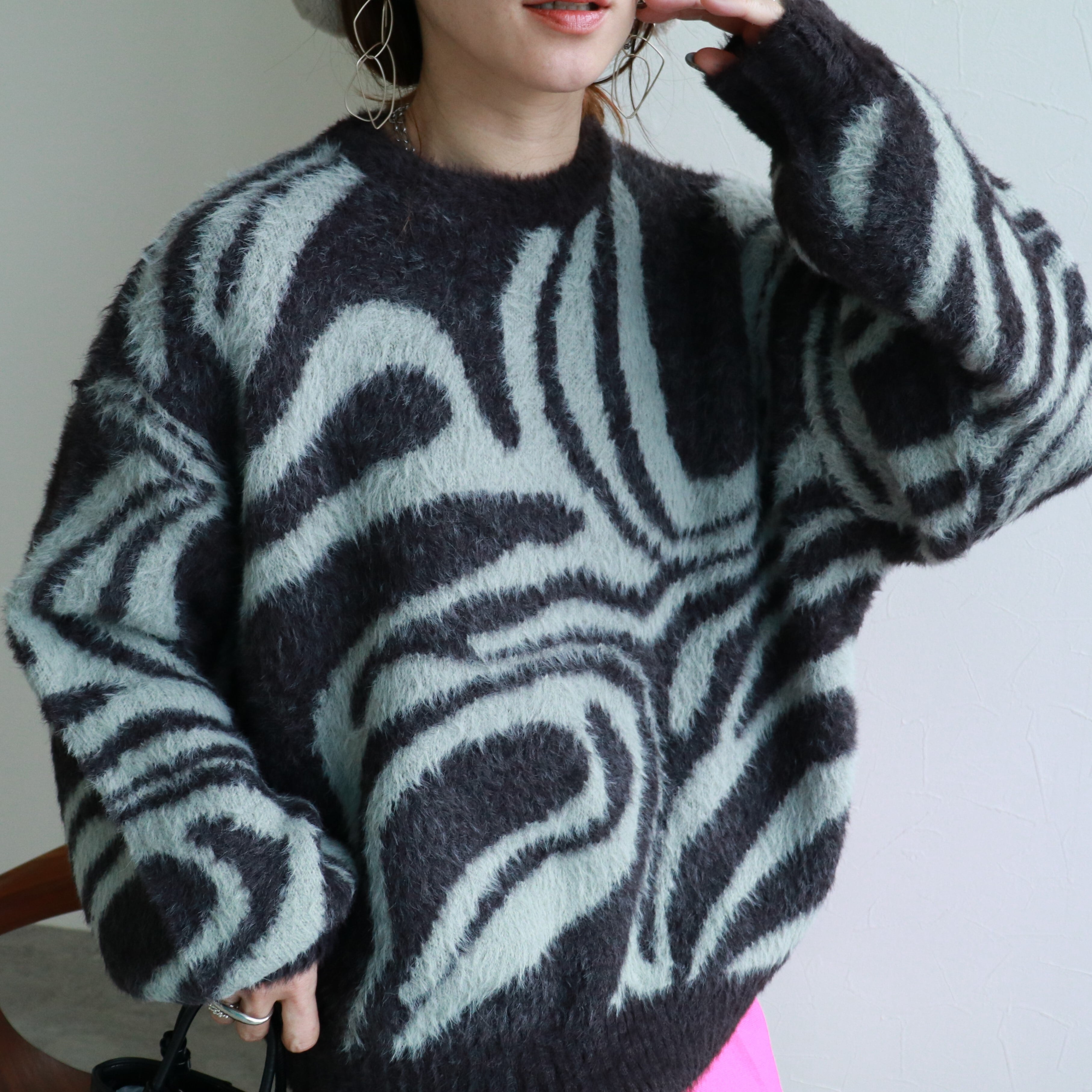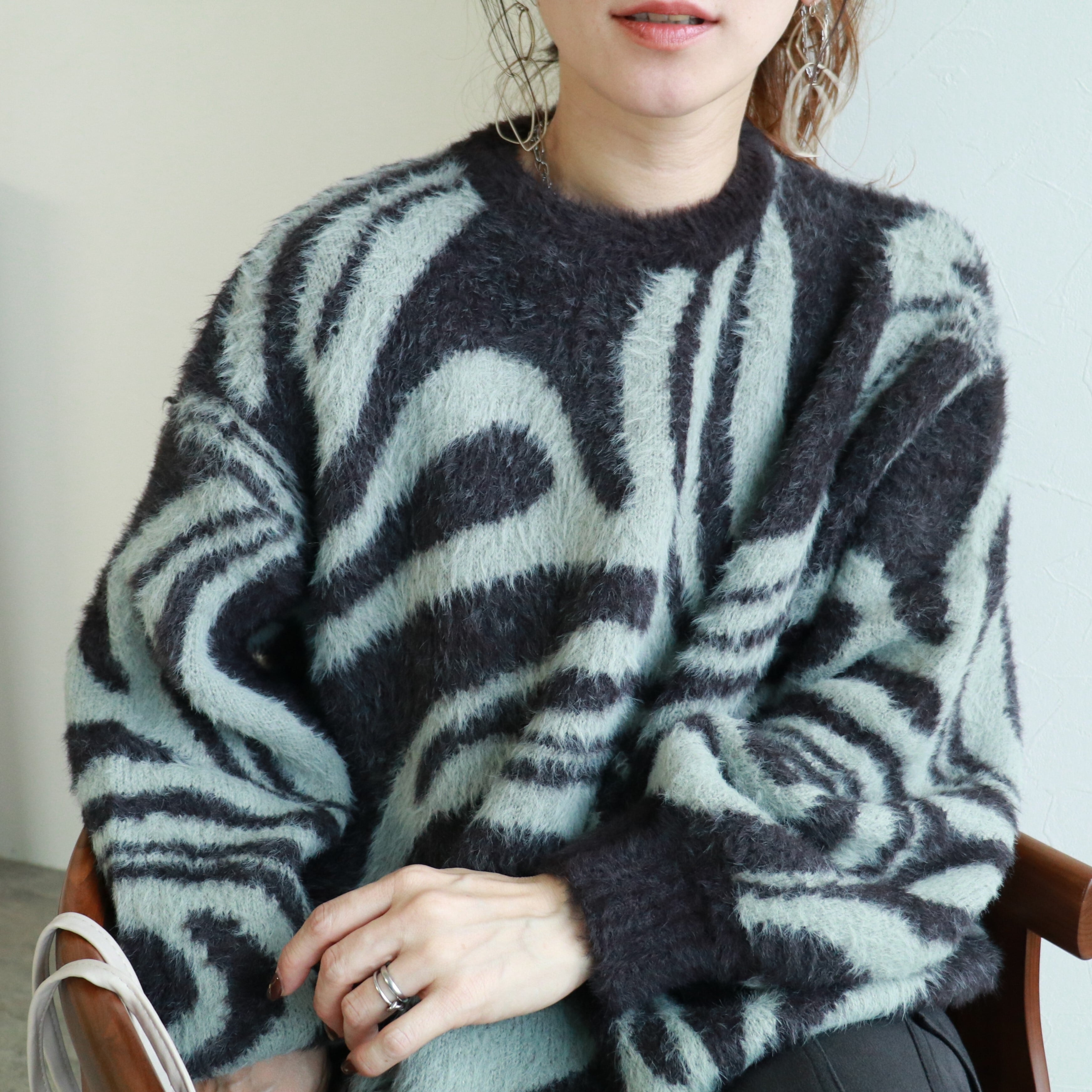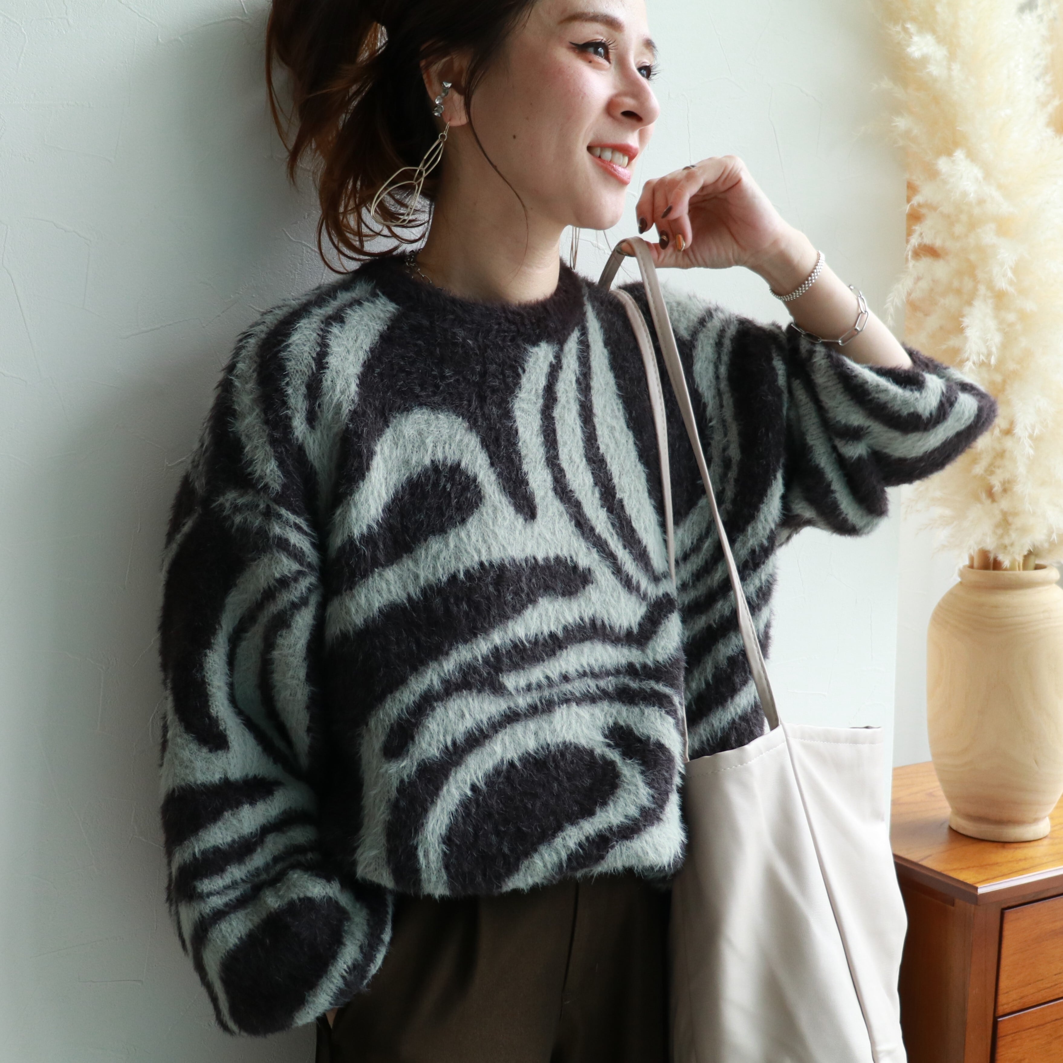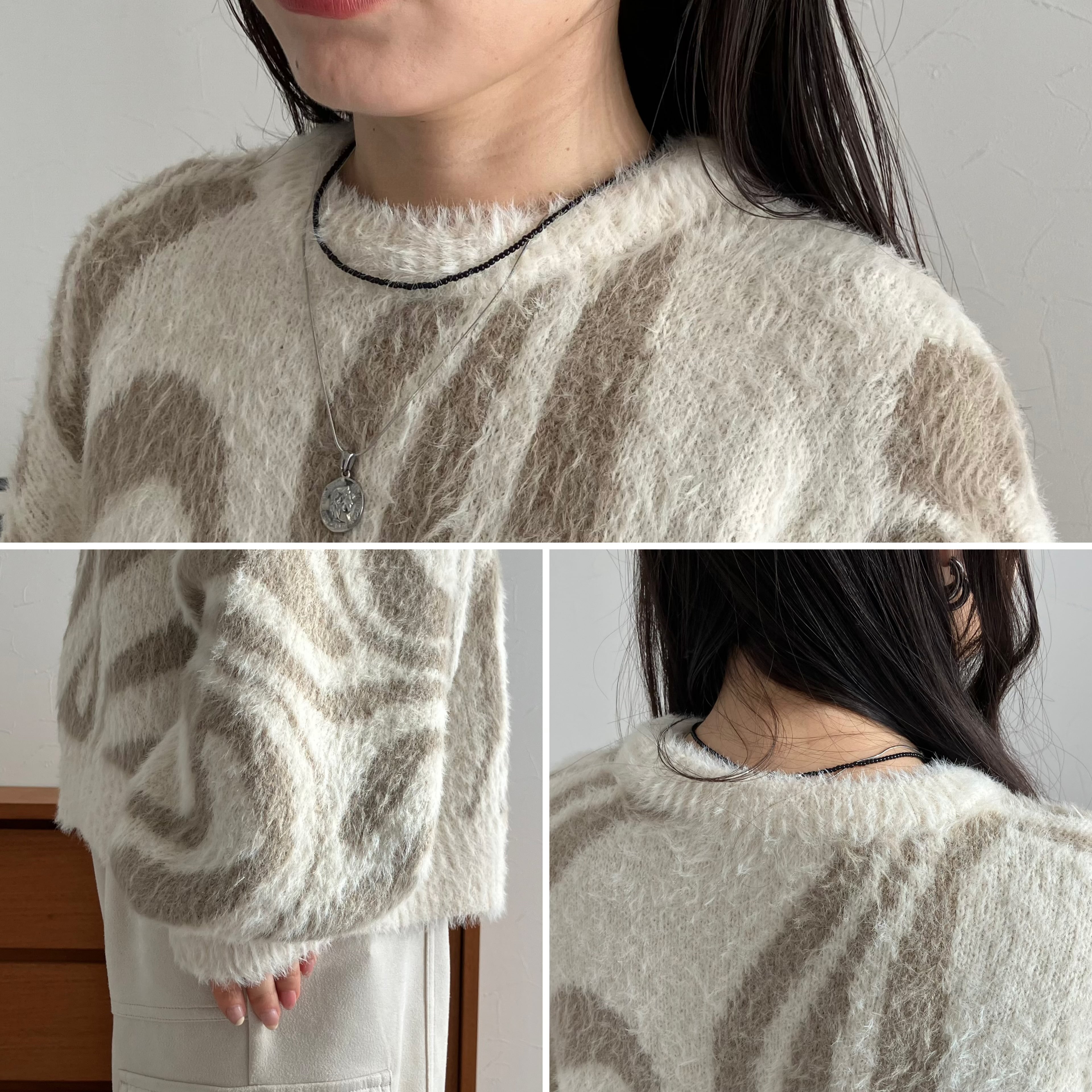 短毛フェザーマーブルジャガードニット【day165809-z】宅配便送料無料/宅配便発送