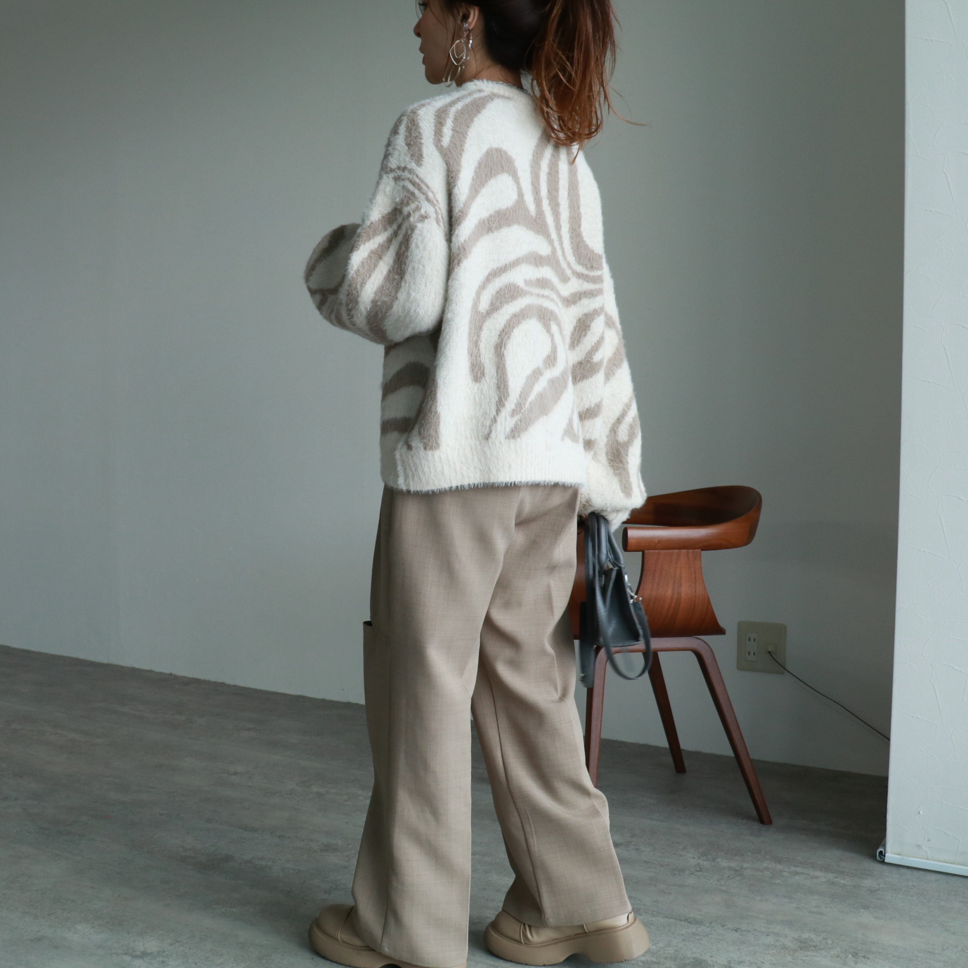 ふんわりしたボリュームのあるニットはワイドスラックスやボリューム感のあるボトムスでバランスを取るのがおすすめ!