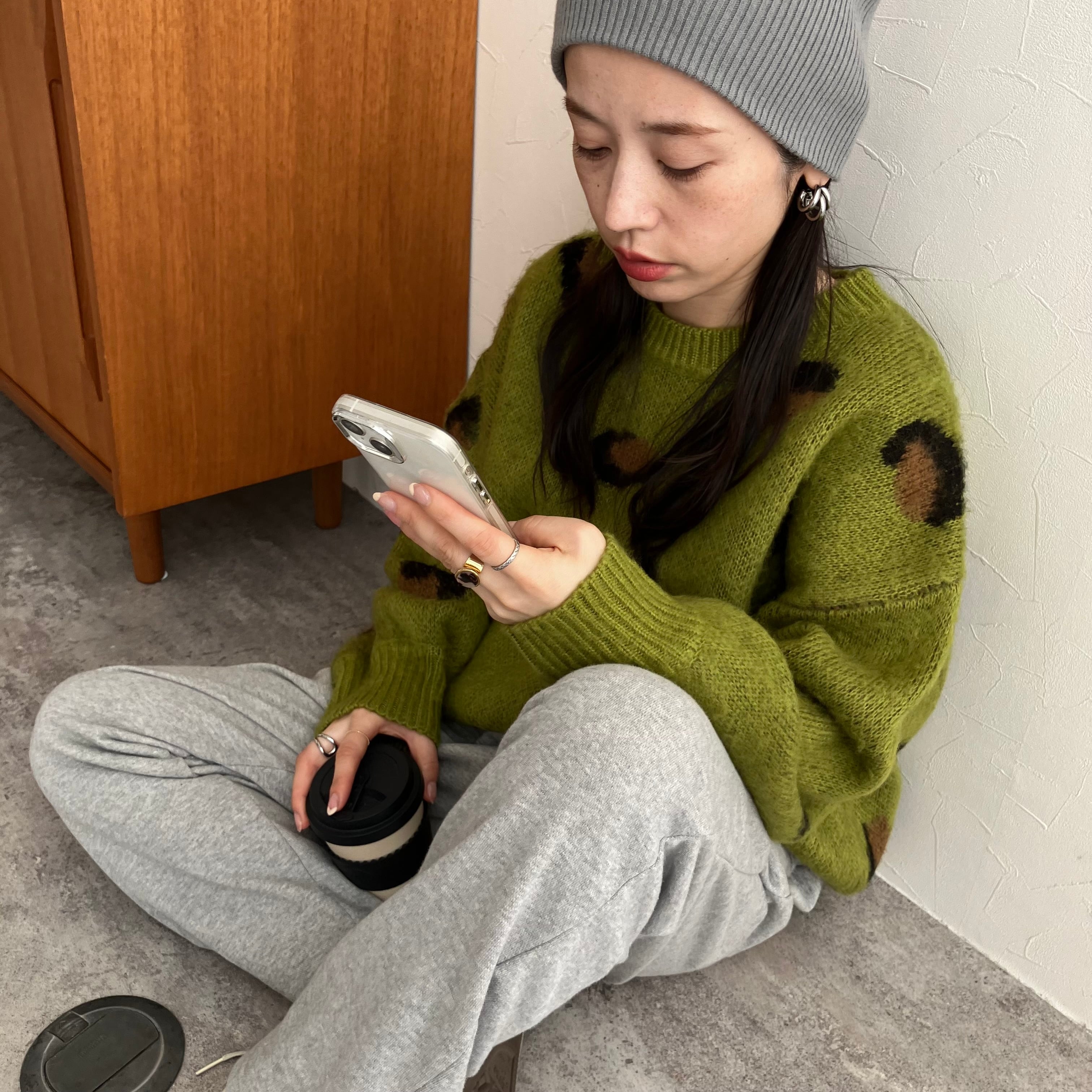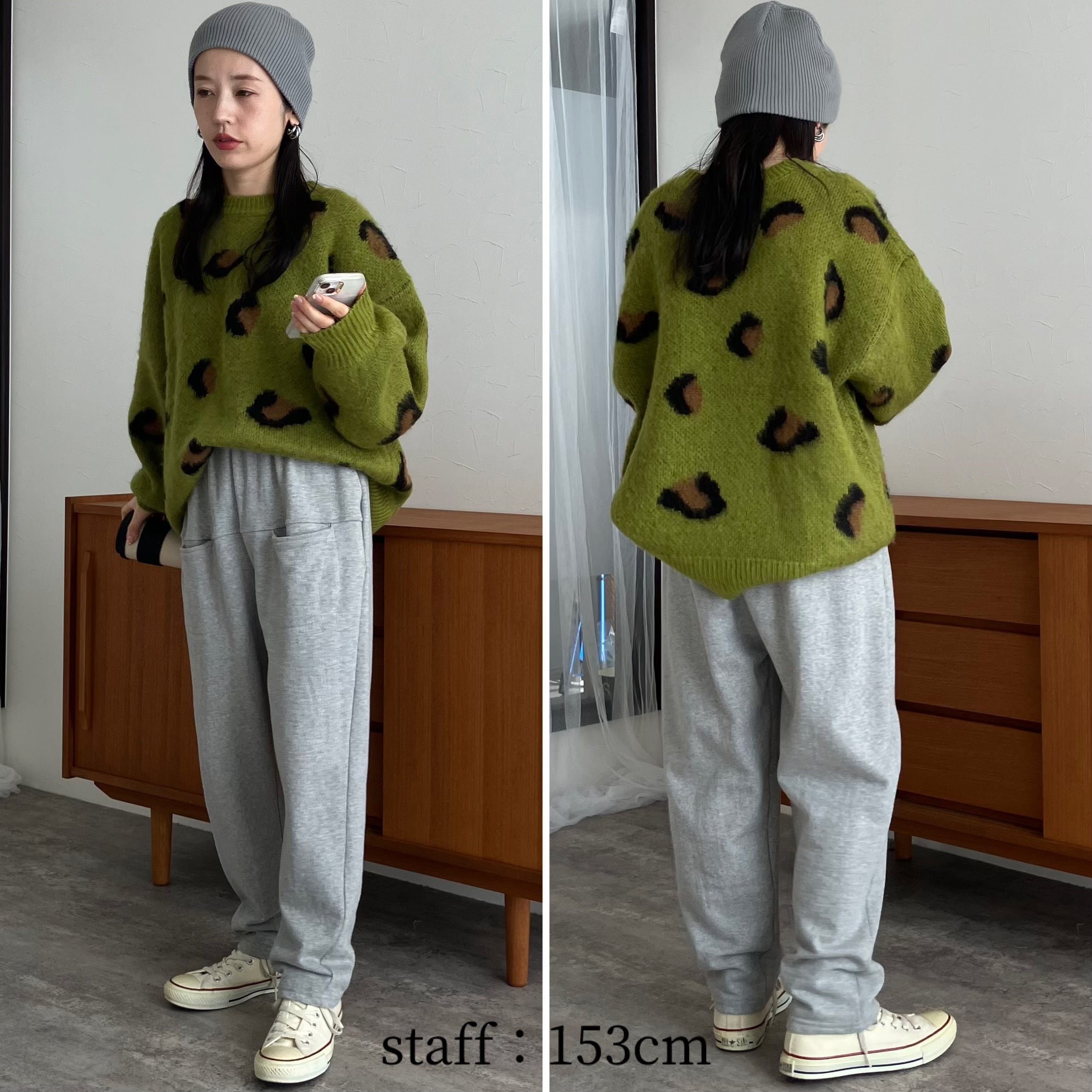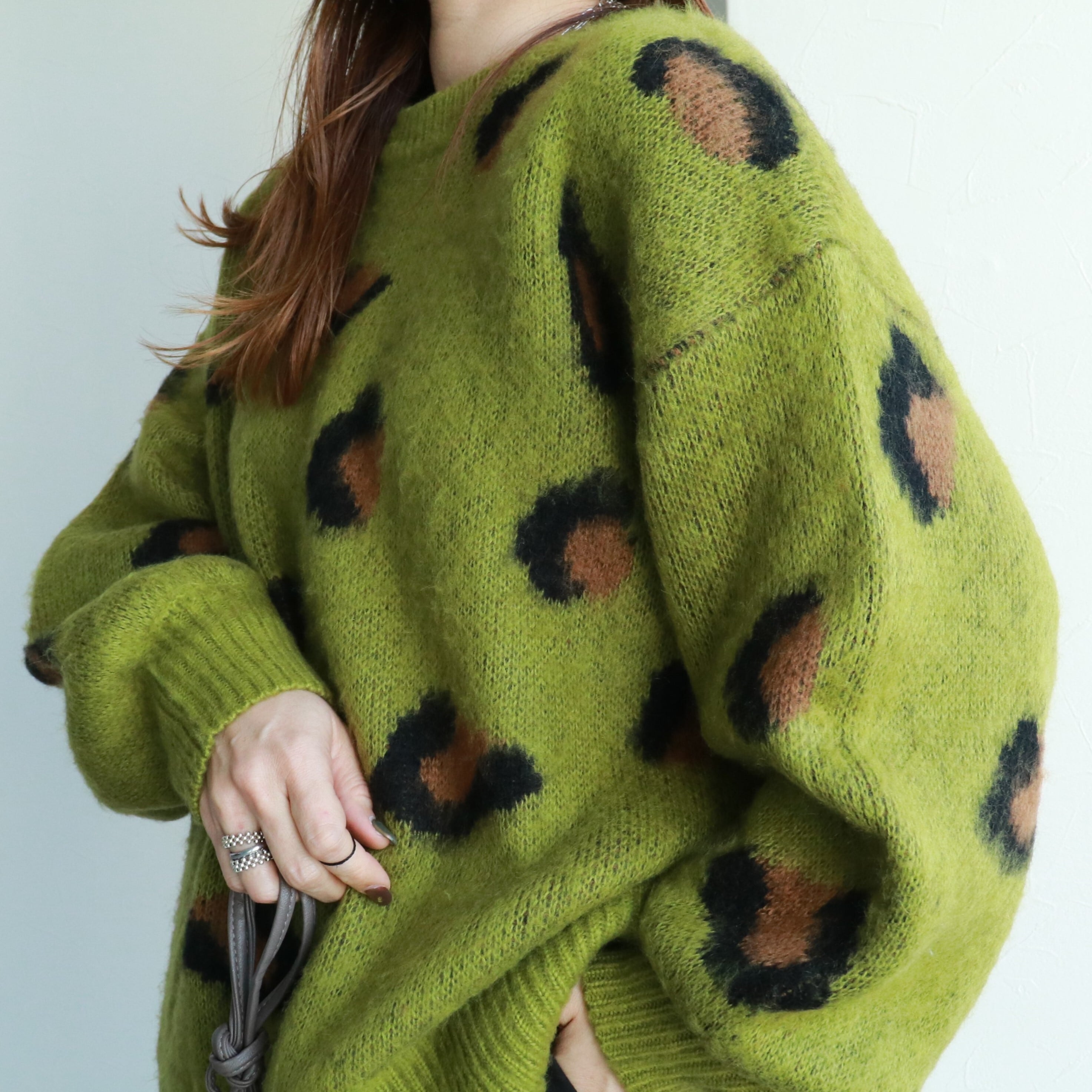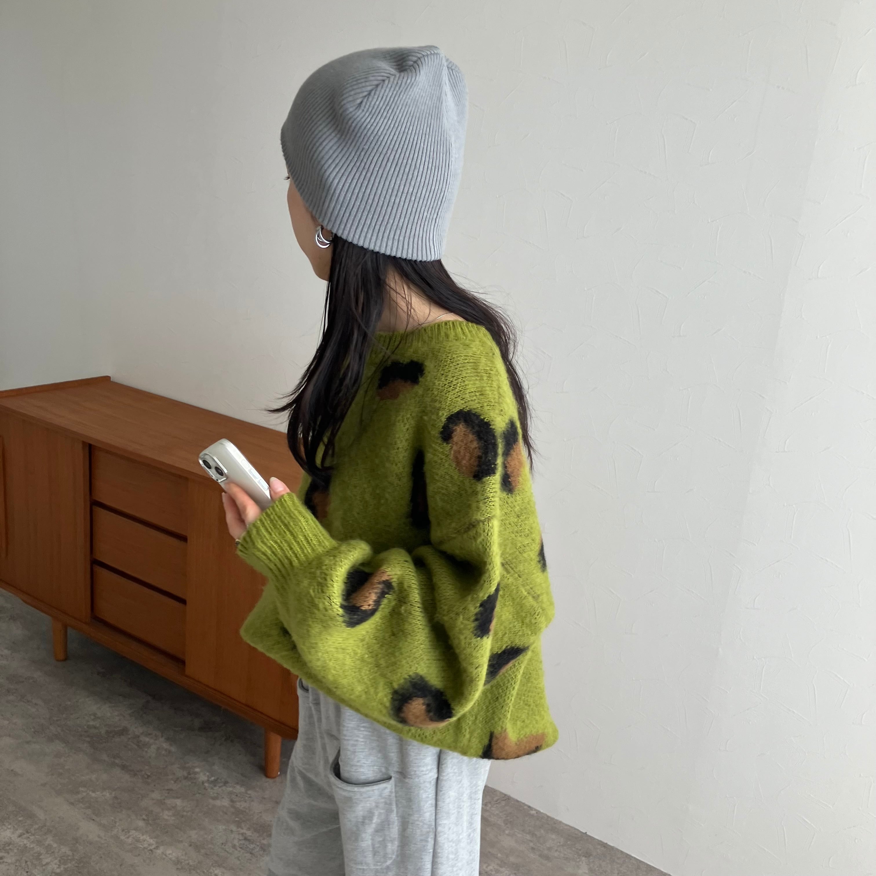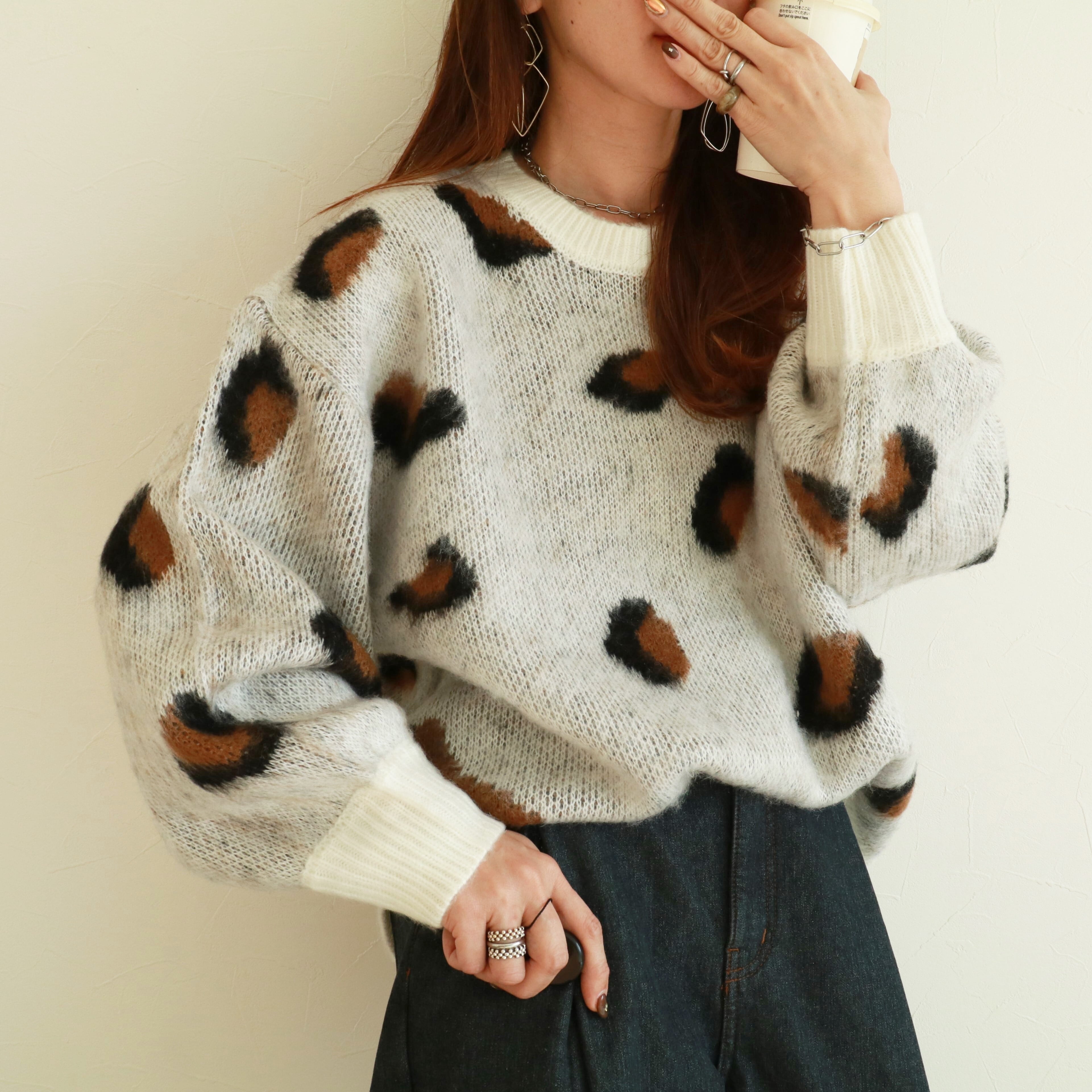 インパクトのあるレオパード柄の大人カジュアルニット。