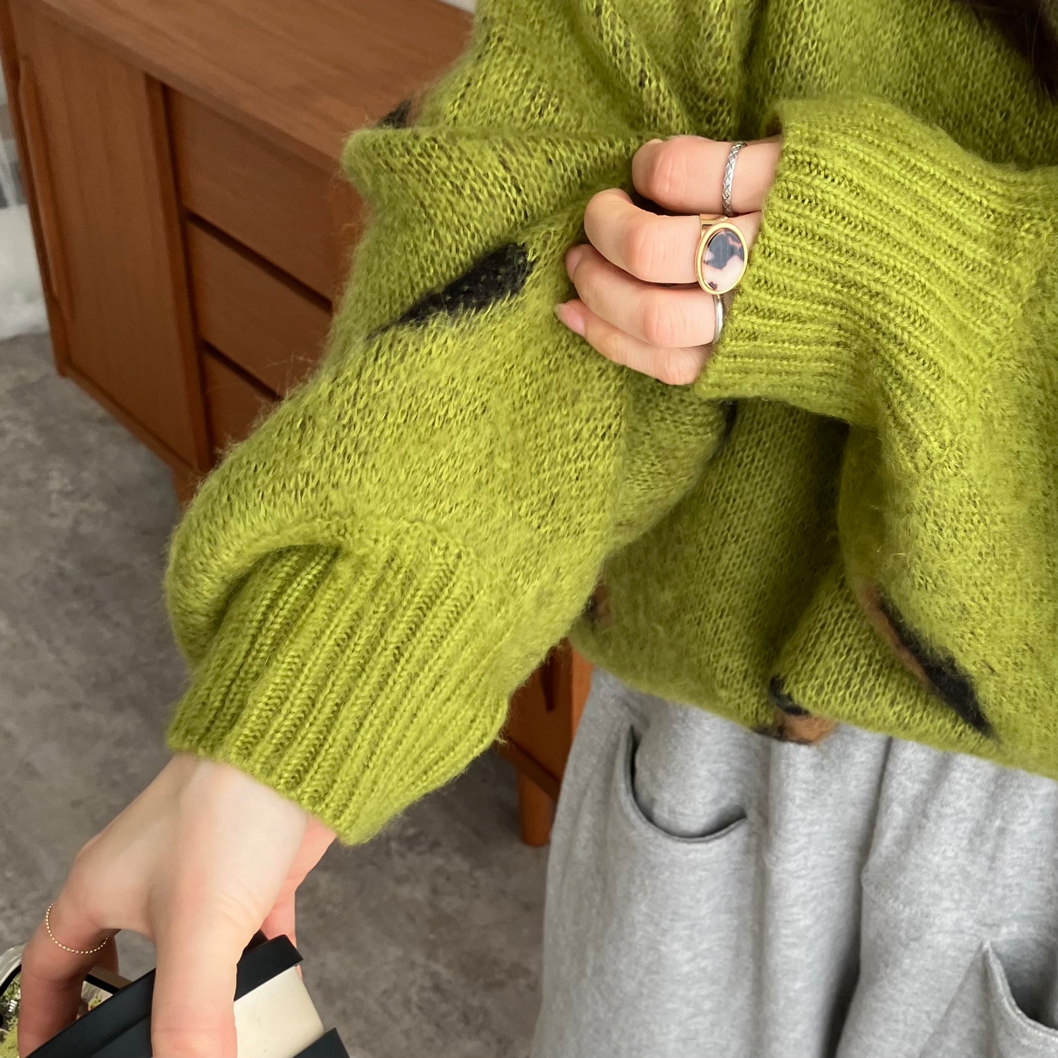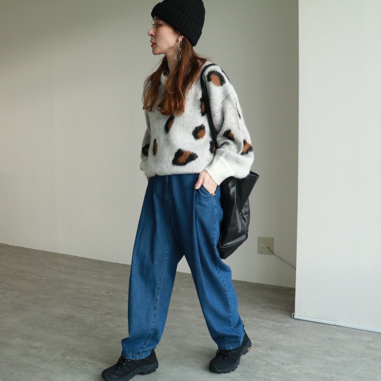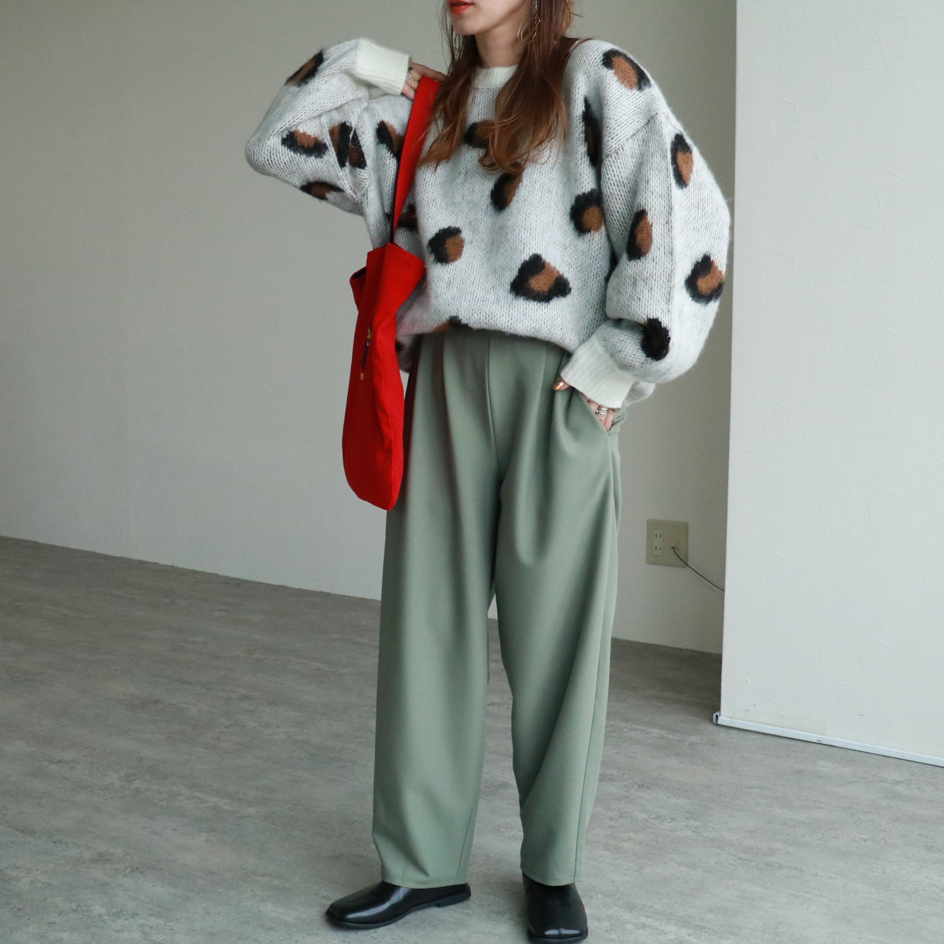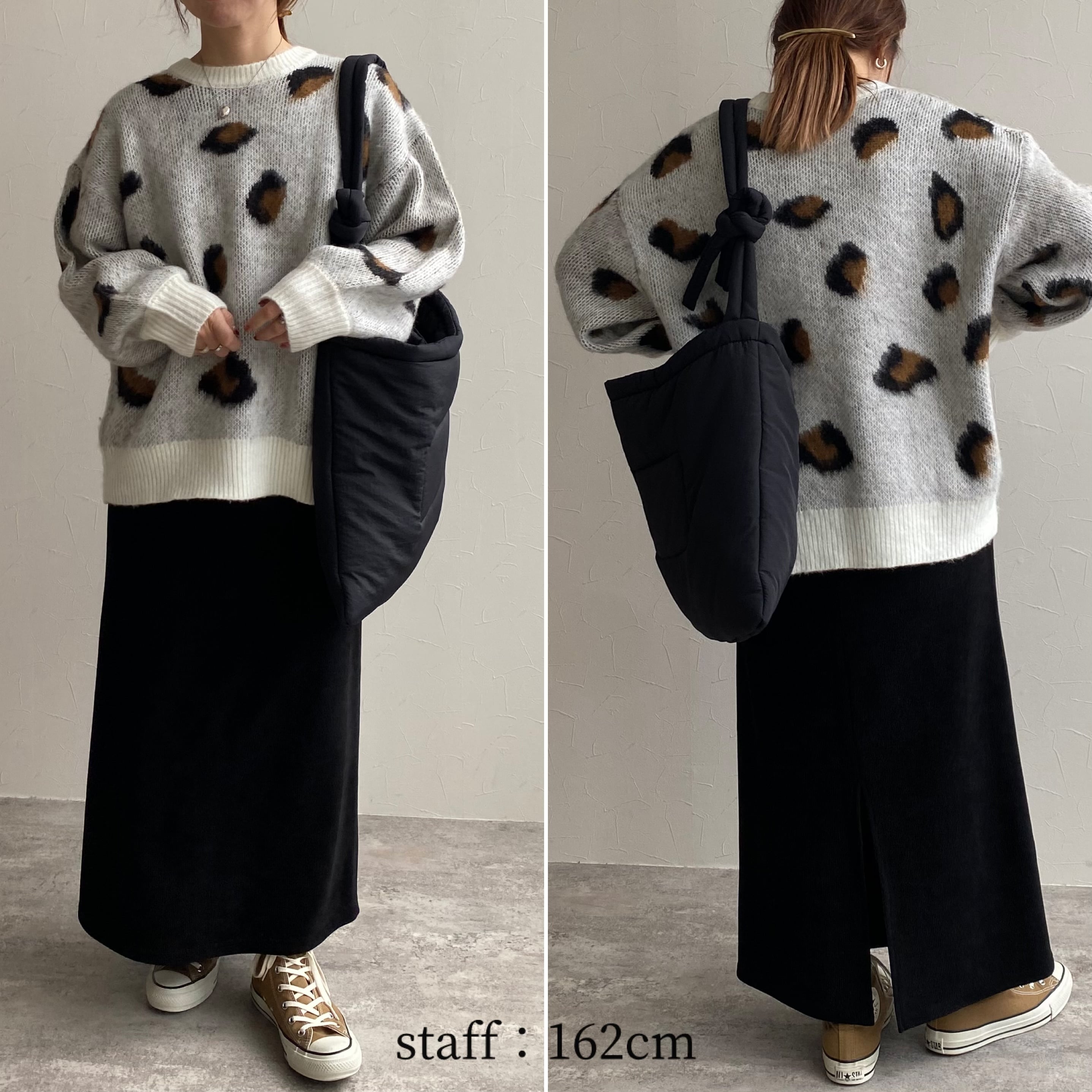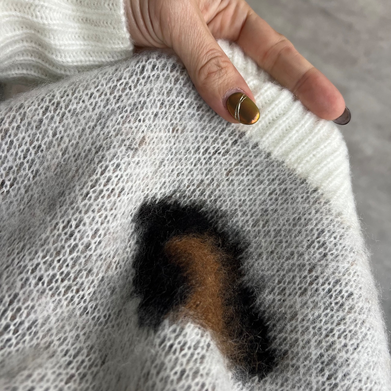 インパクトのあるレオパード柄の大人カジュアルニット。