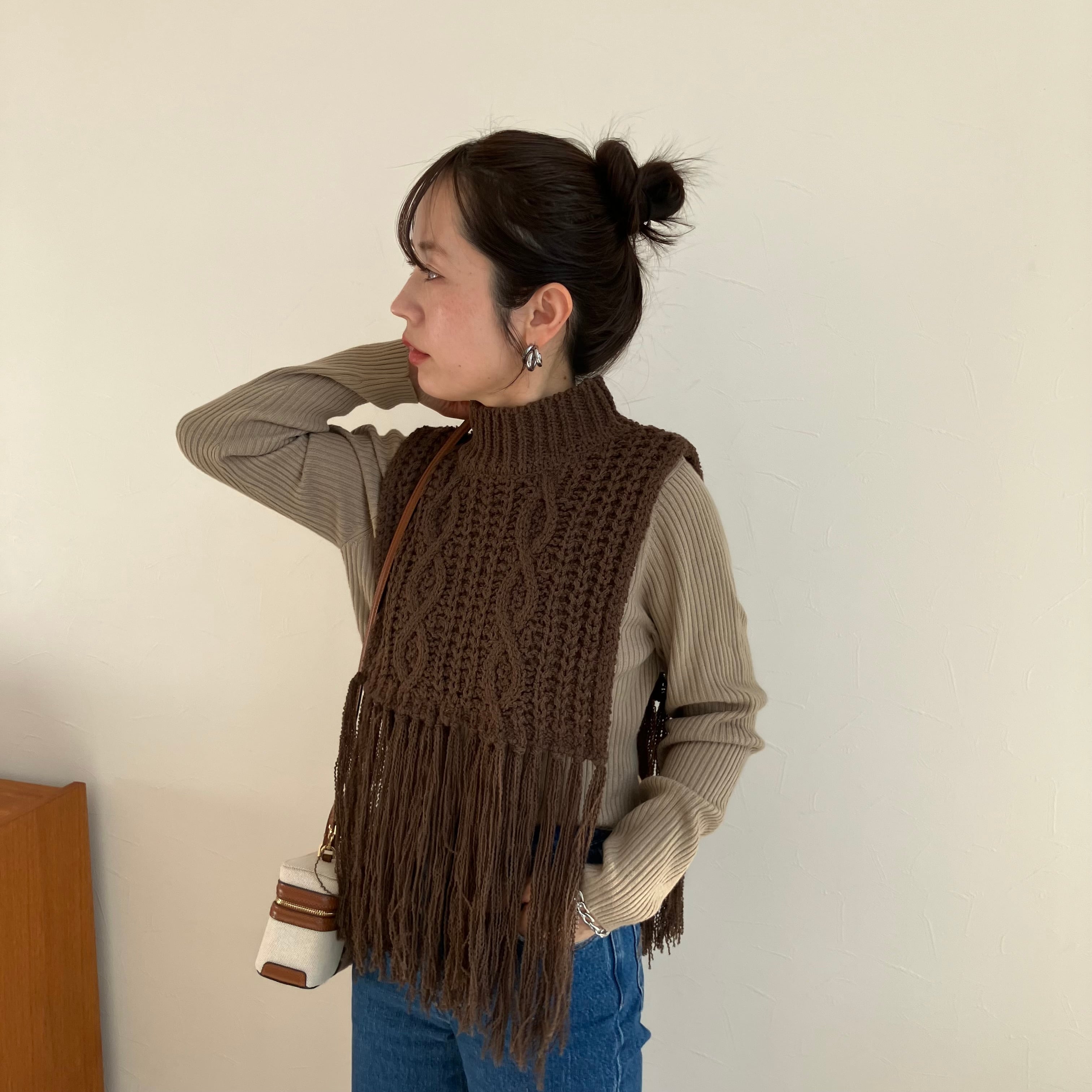 着丈25.5cm +フリンジ24〜27cm/肩幅35cm/襟高7cm