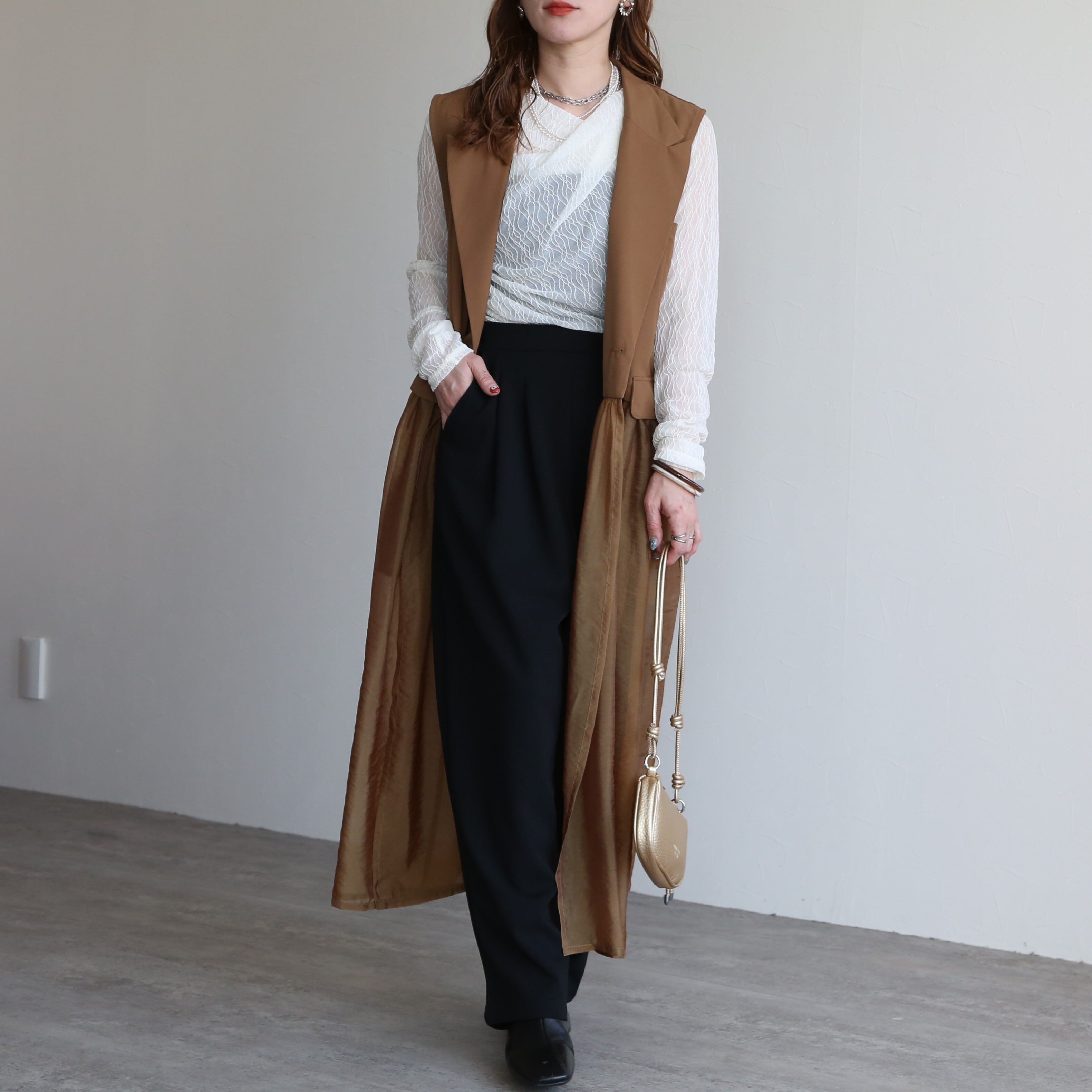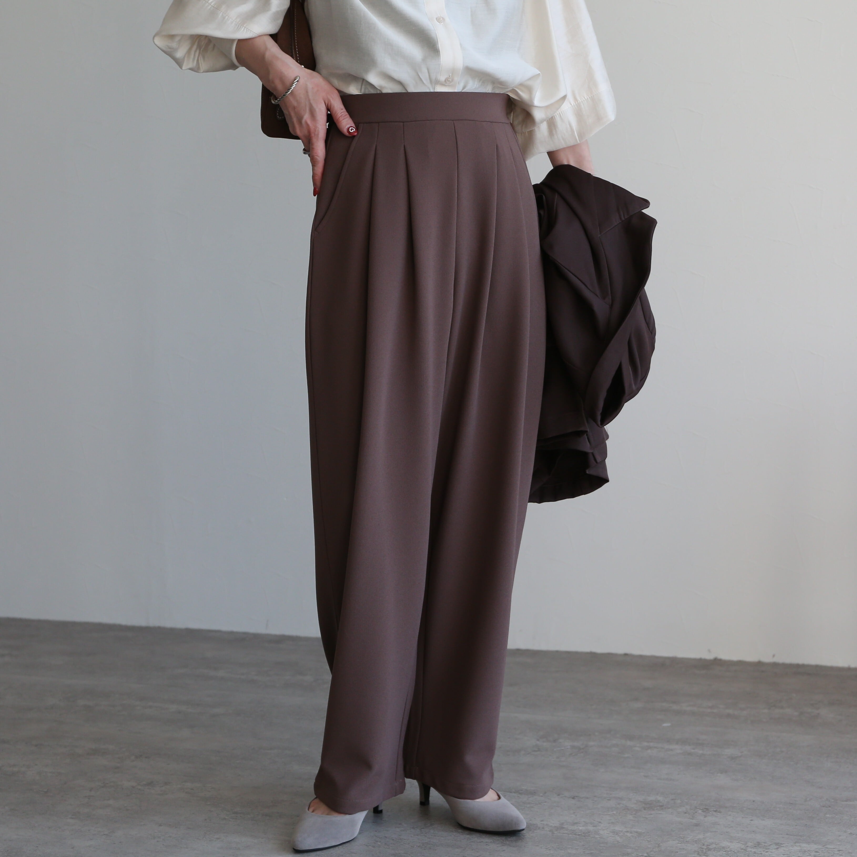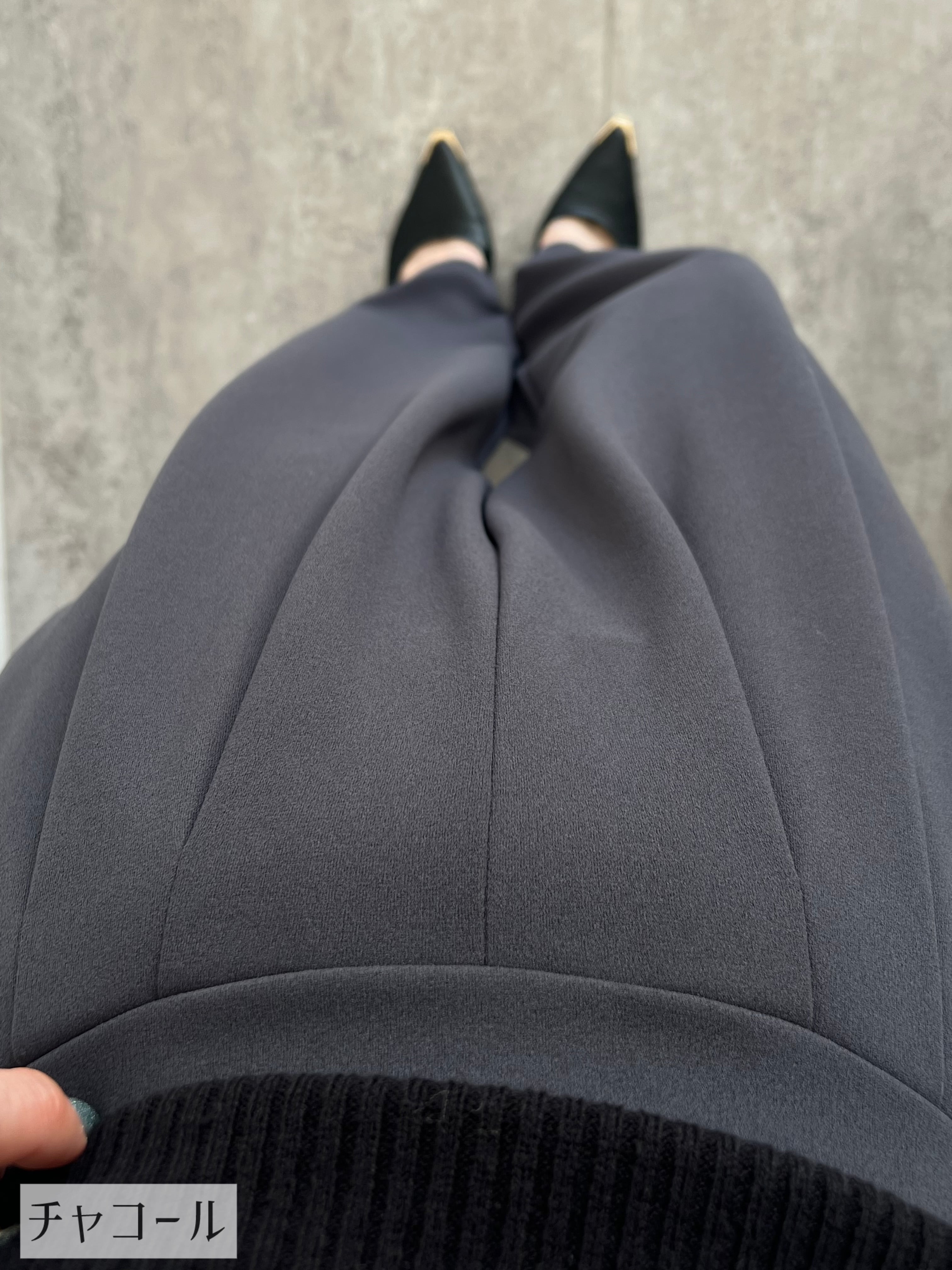 裾に向かって入った長めのタックは美脚効果もあり、スラっとした印象に♩